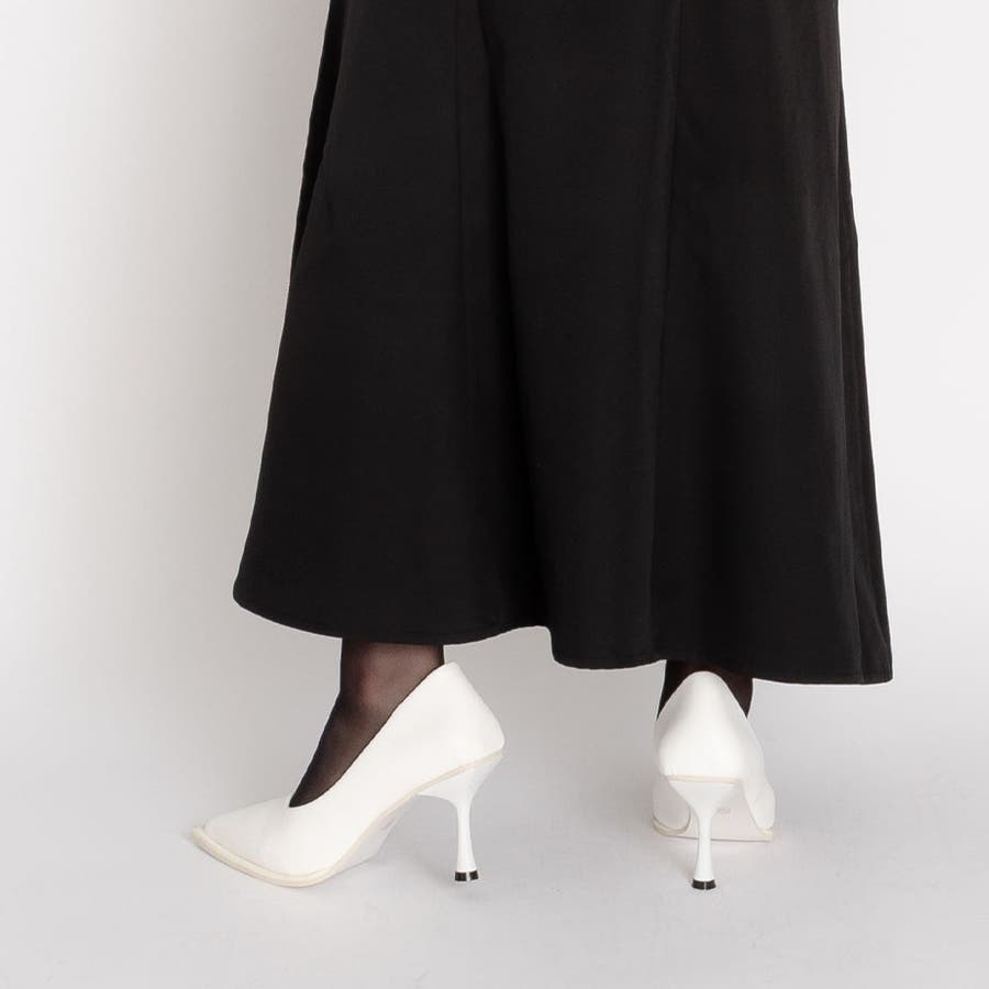 定番のモノトーンでシンプルながらも存在感溢れる、オンオフ兼用パンプスです。