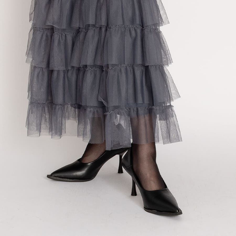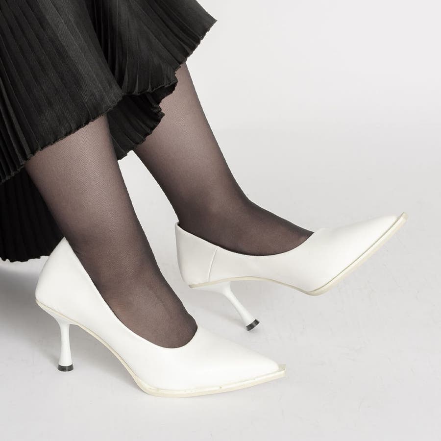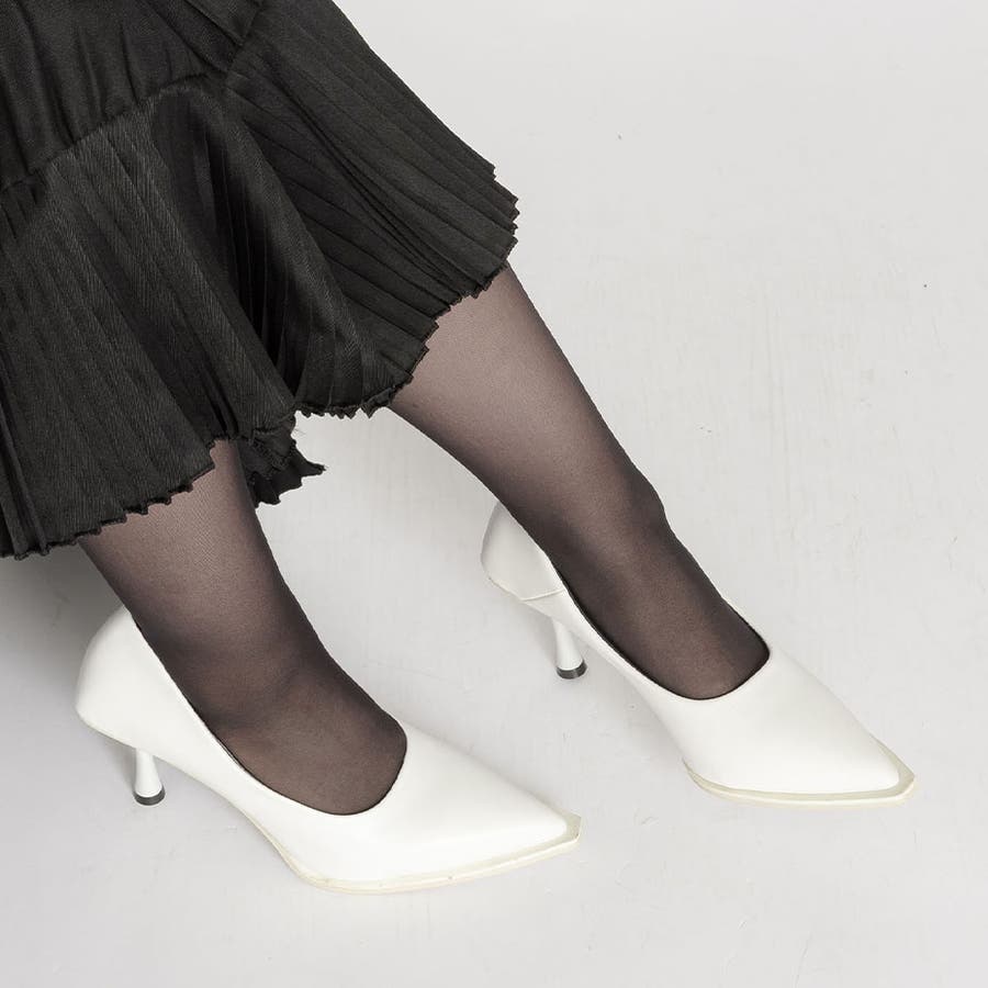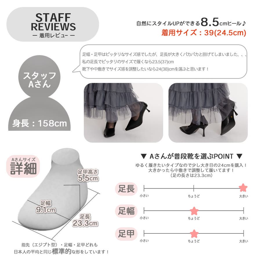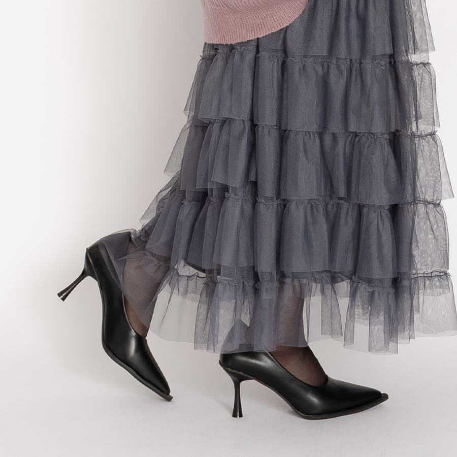 ポインテッドトゥのシャープな表情とスマートなシルエット、そこに高いヒールが組み合わさる事ですっきりとしたレッグラインを叶えます。