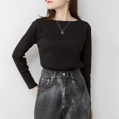 リブ ボートネック カットソー。