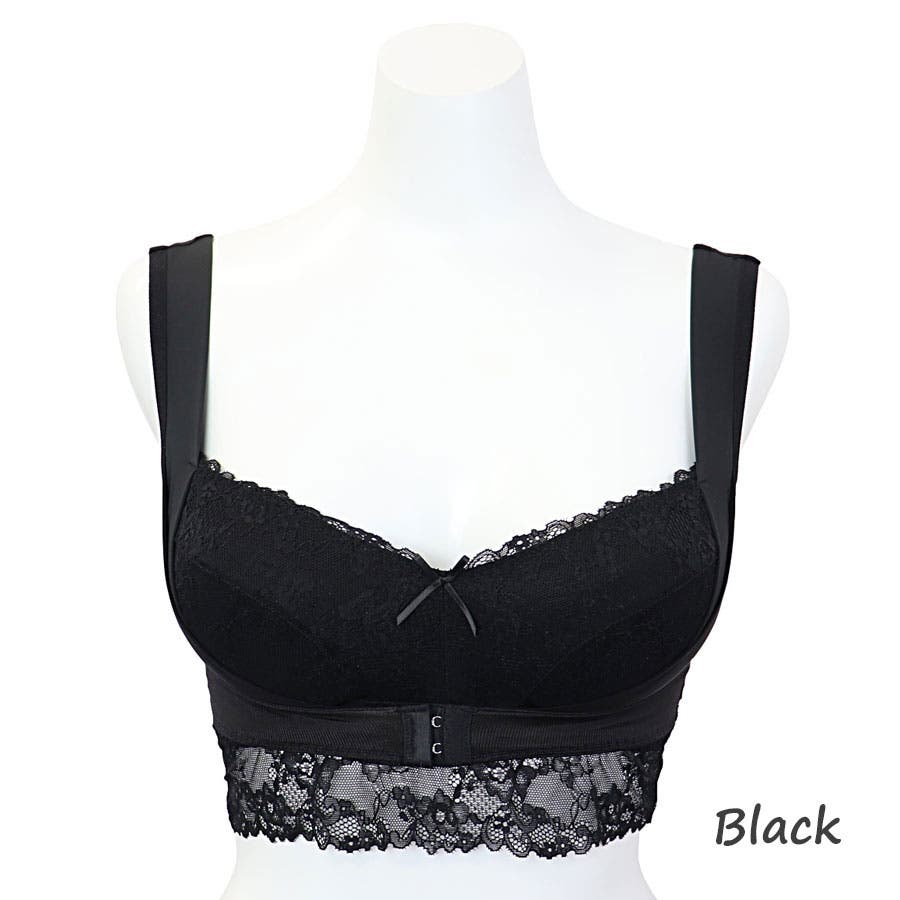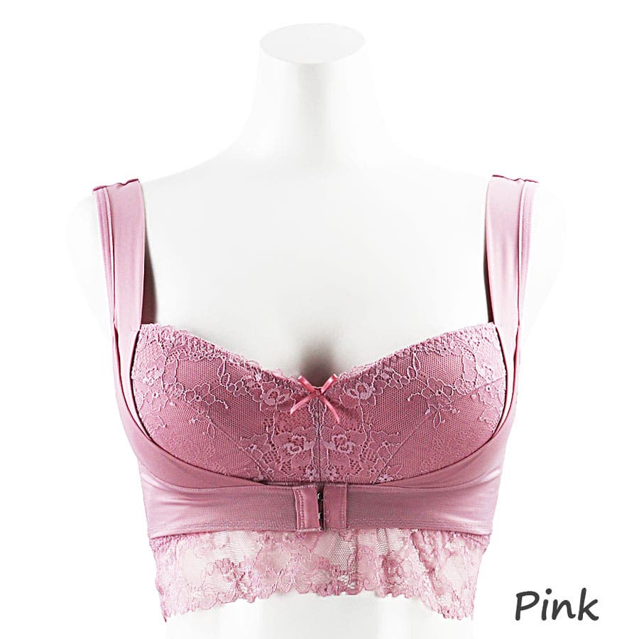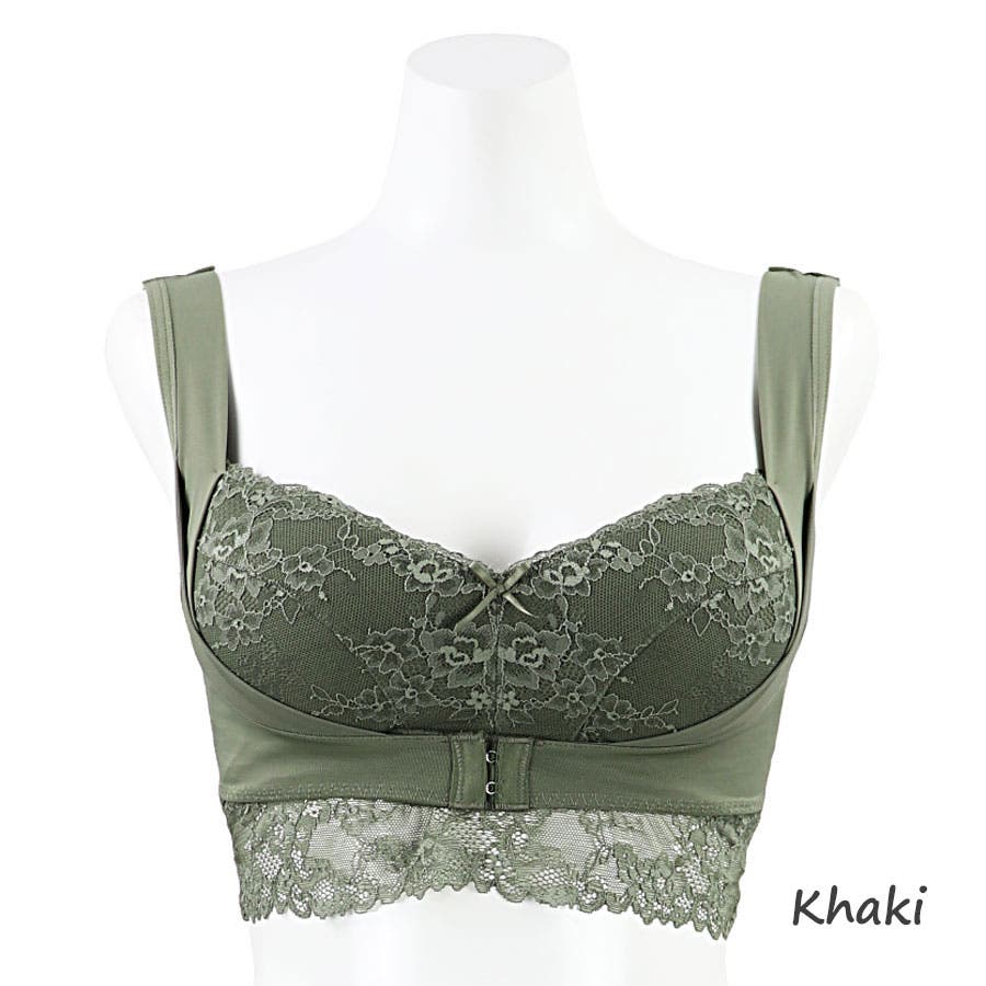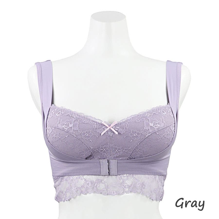 優しく快適な着け心地のノンワイヤーでもバストケアがしっかり出来、脇から伸びた4段階調節のフロントホックでバストを寄せ上げます。