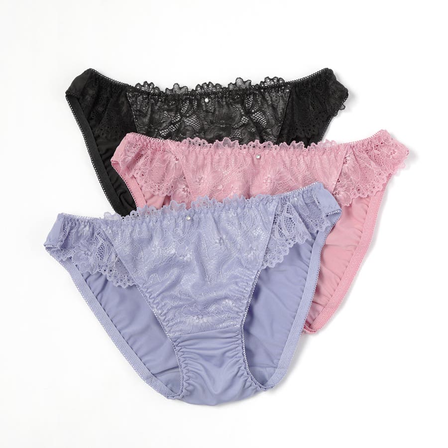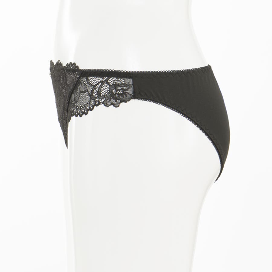 サイドをストレッチレースにし、カジュアルになり過ぎないデザインに仕上げたレギュラーショーツ。