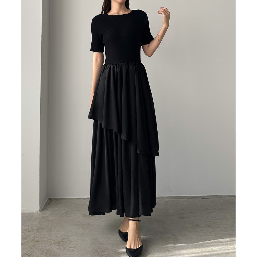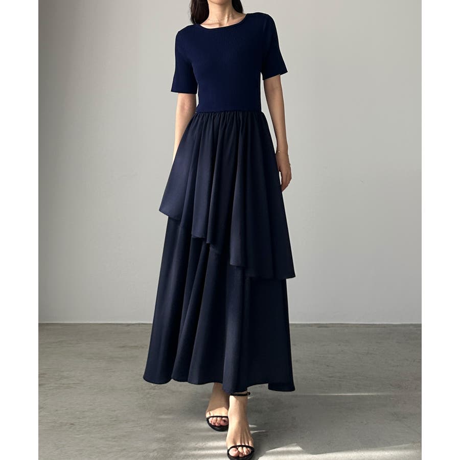 Louere ニットドッキングティアードワンピース