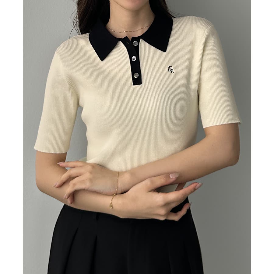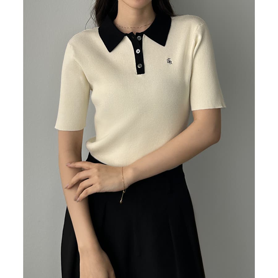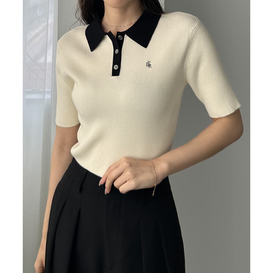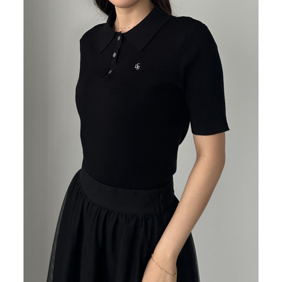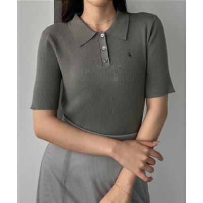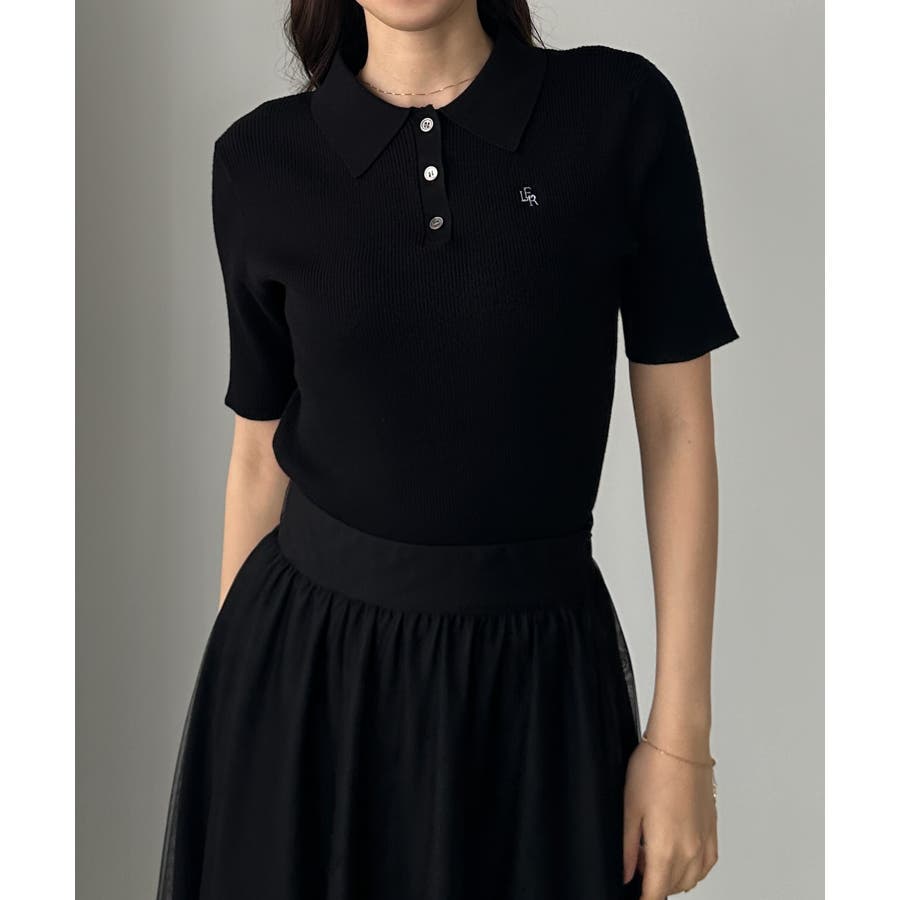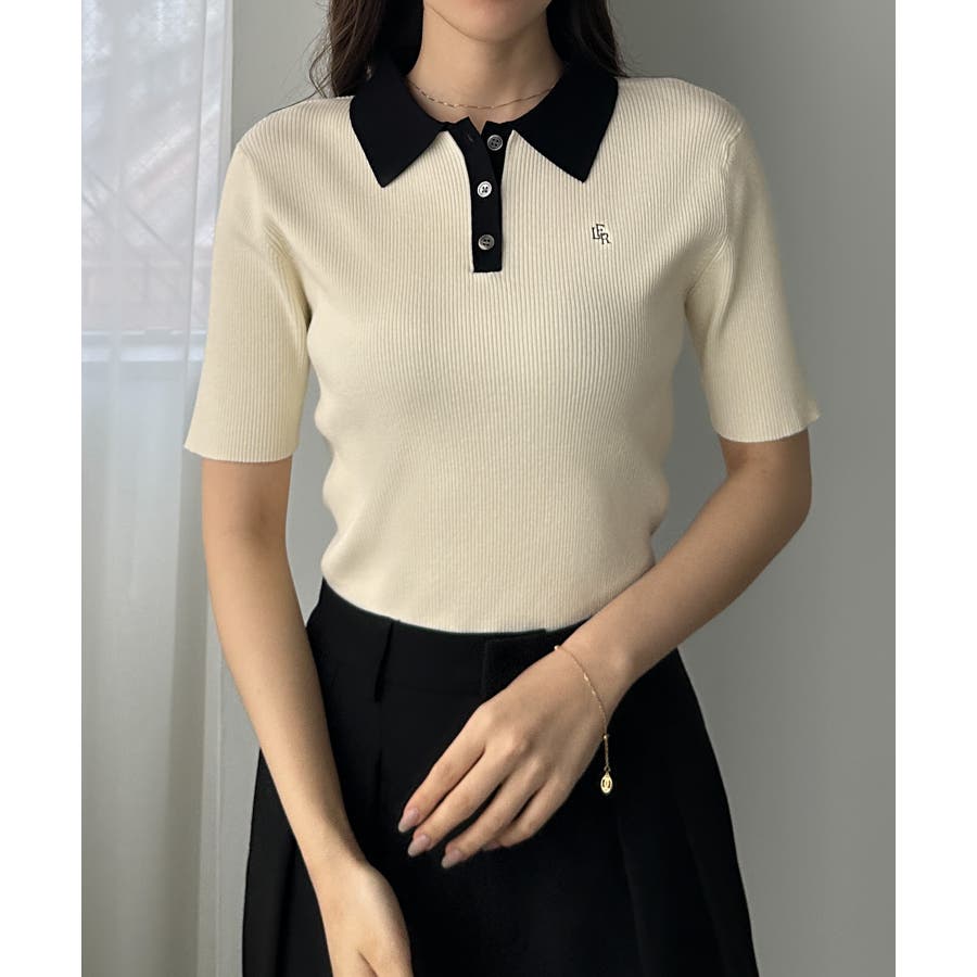 Louere ロゴ刺繍半袖リブニットポロ