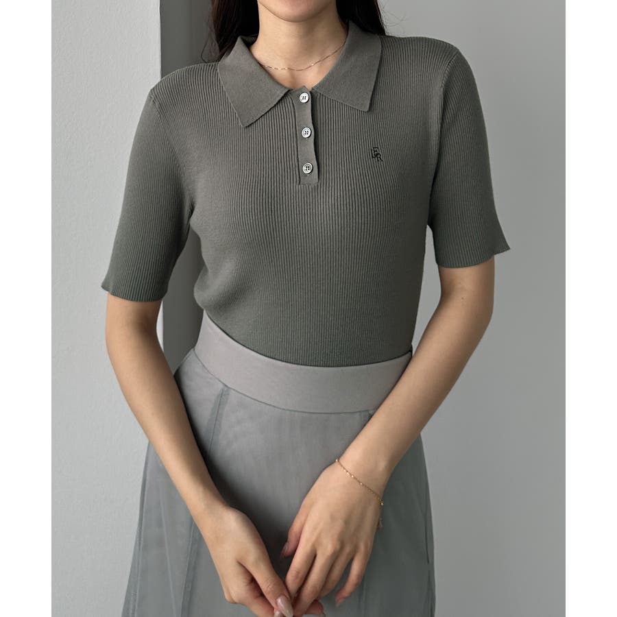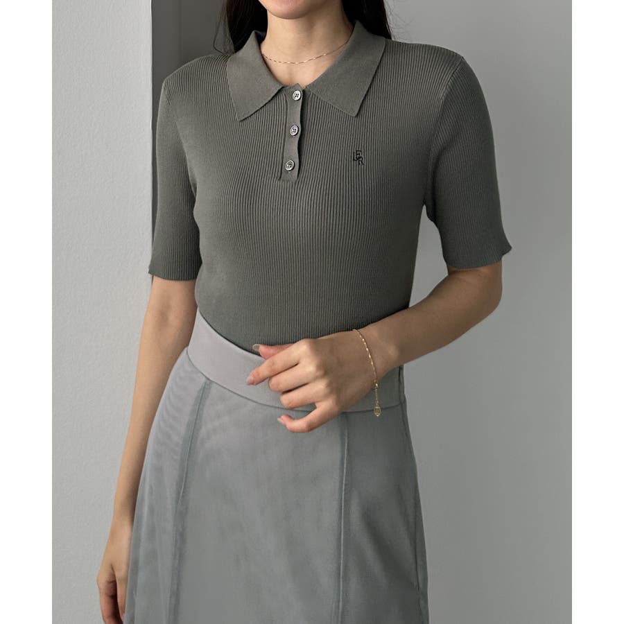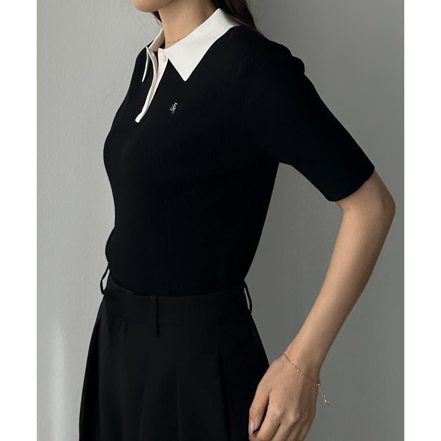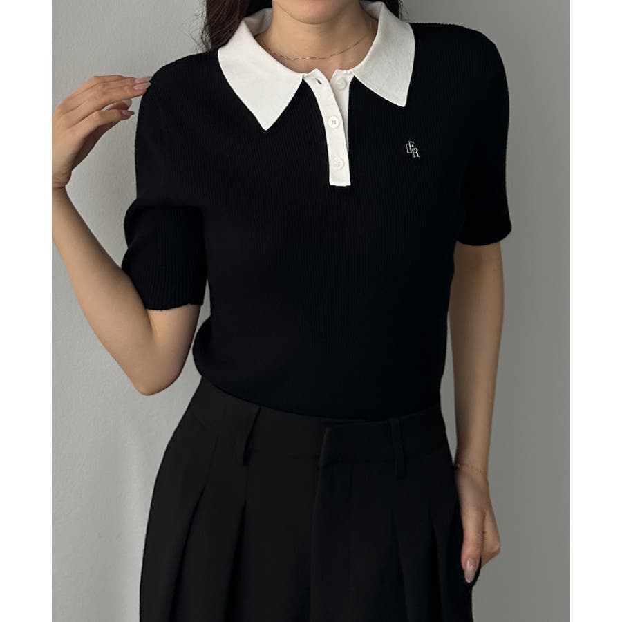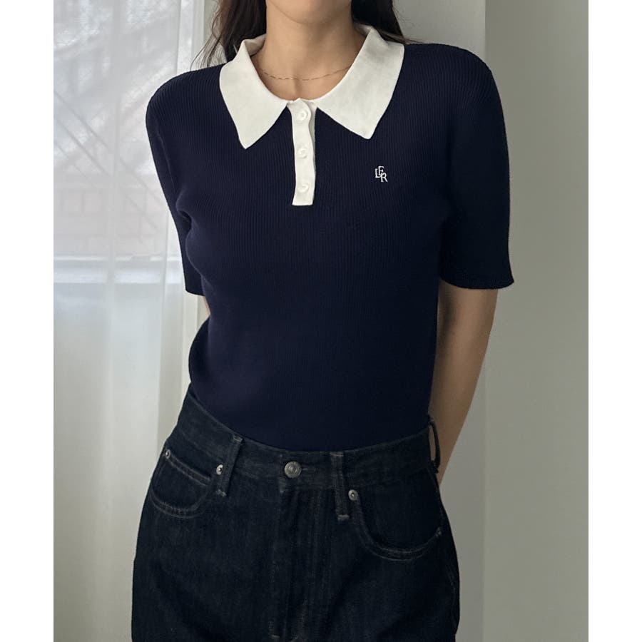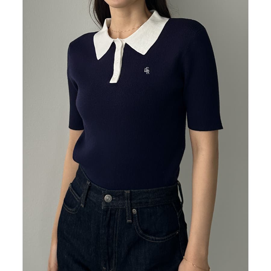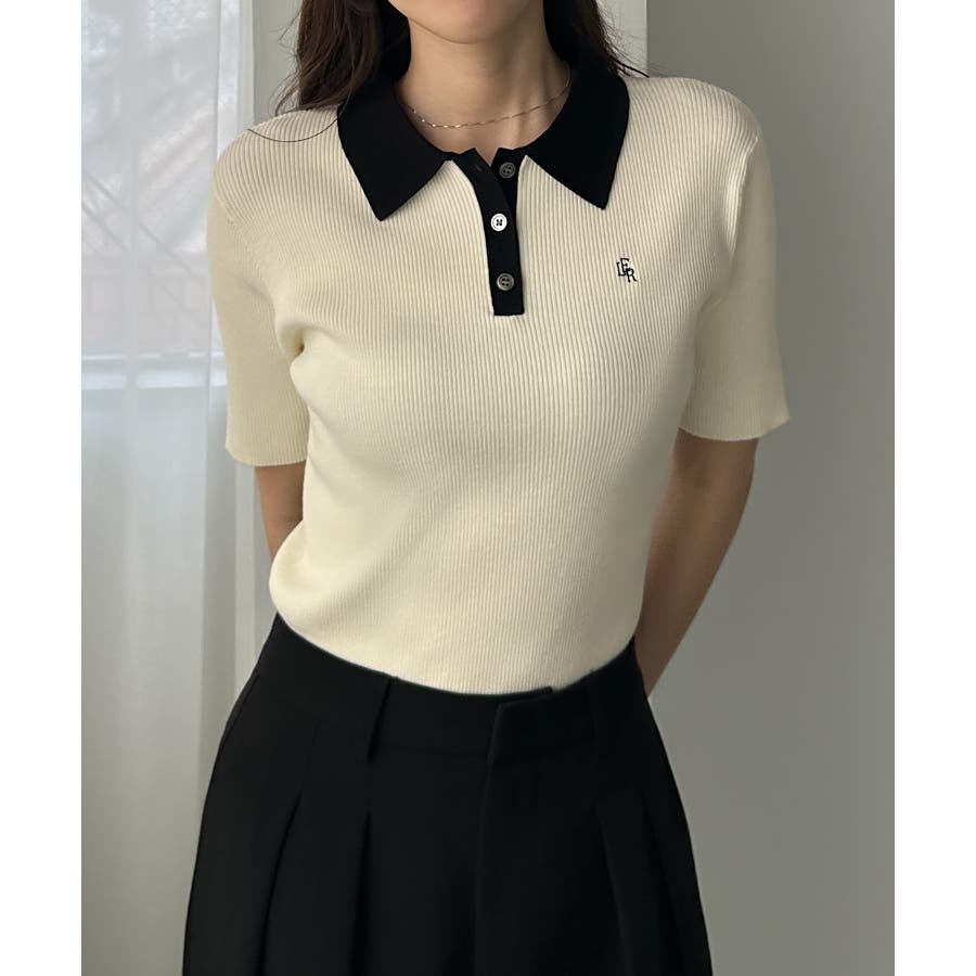 Louere ロゴ刺繍半袖リブニットポロ