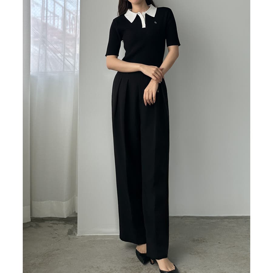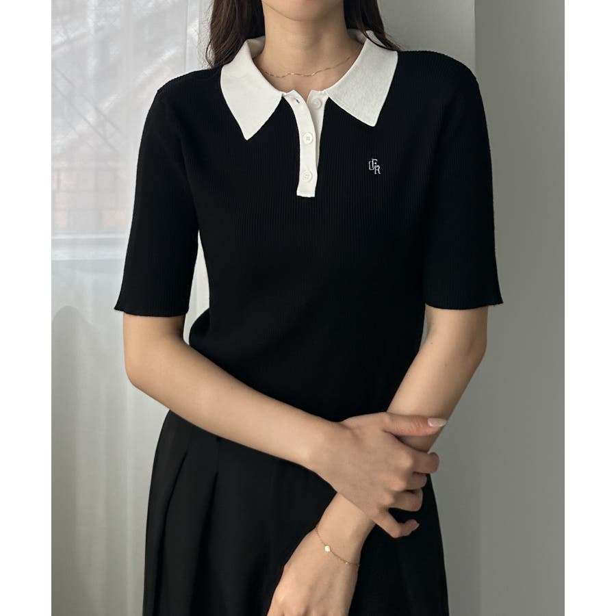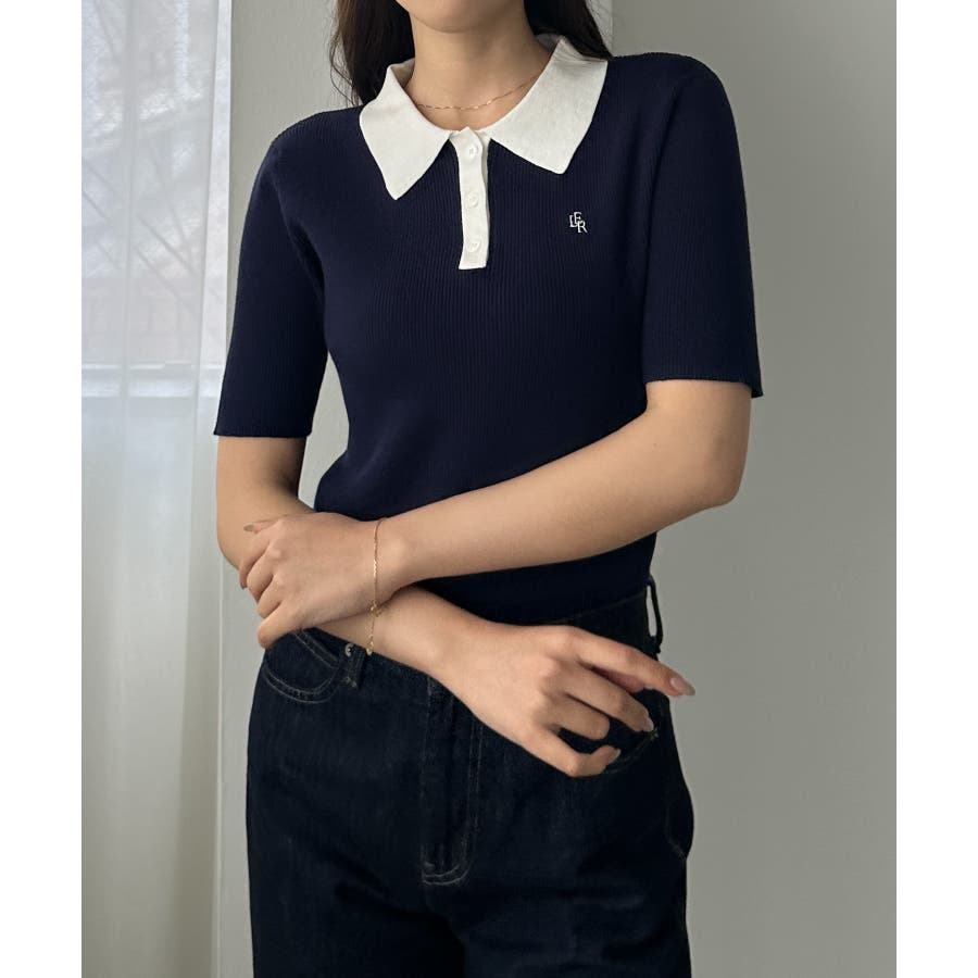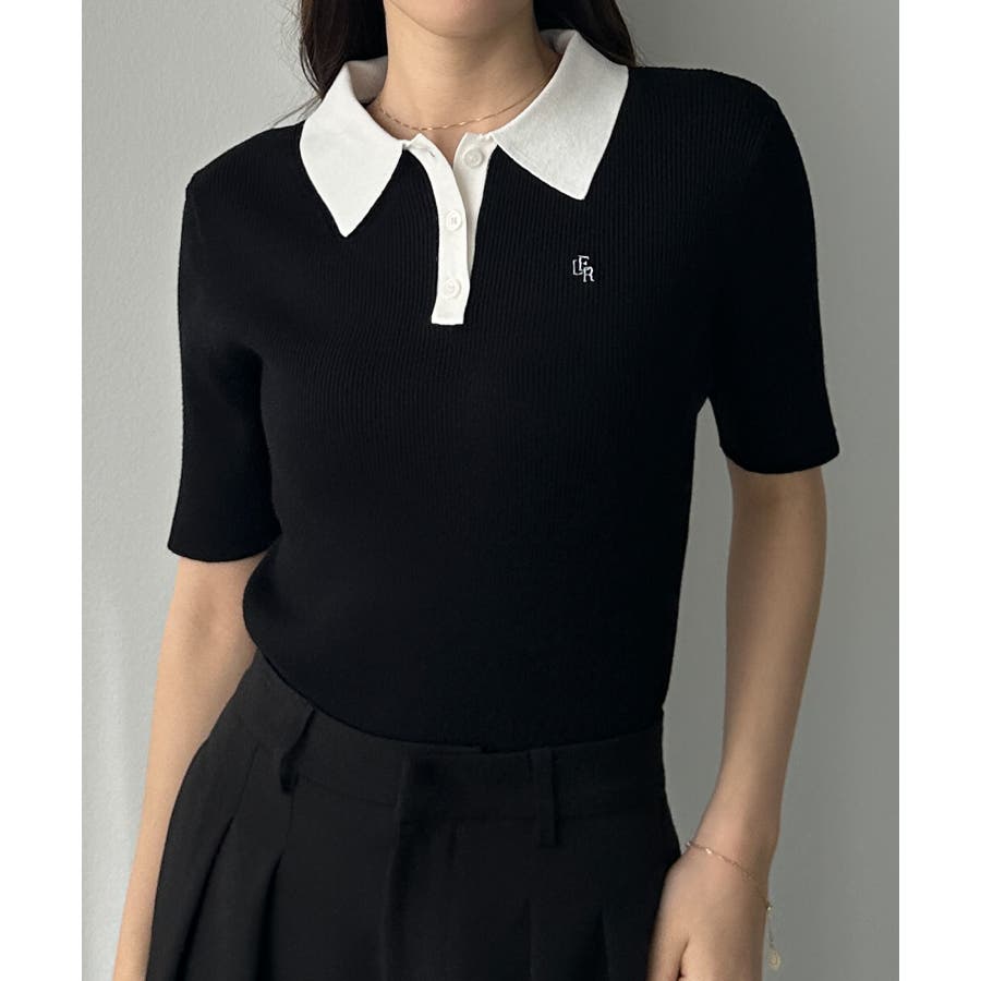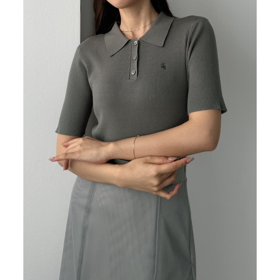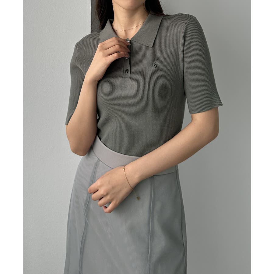 Louere ロゴ刺繍半袖リブニットポロ