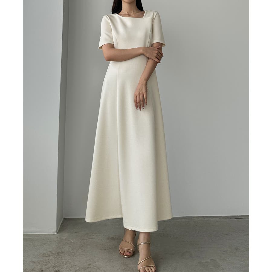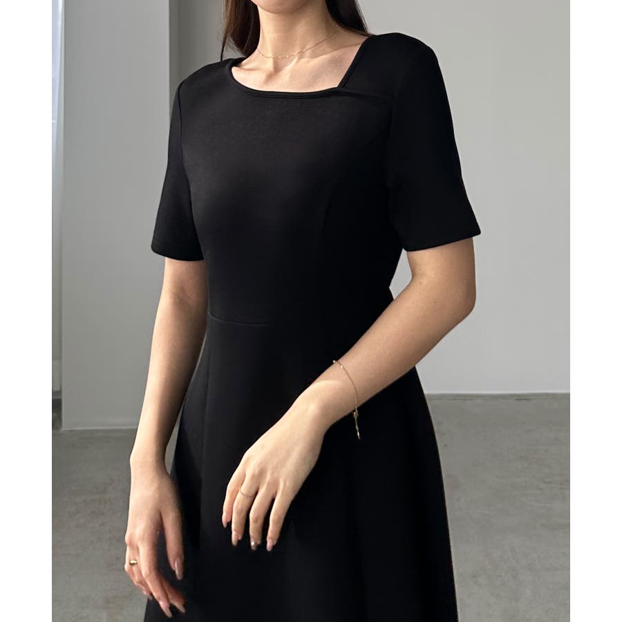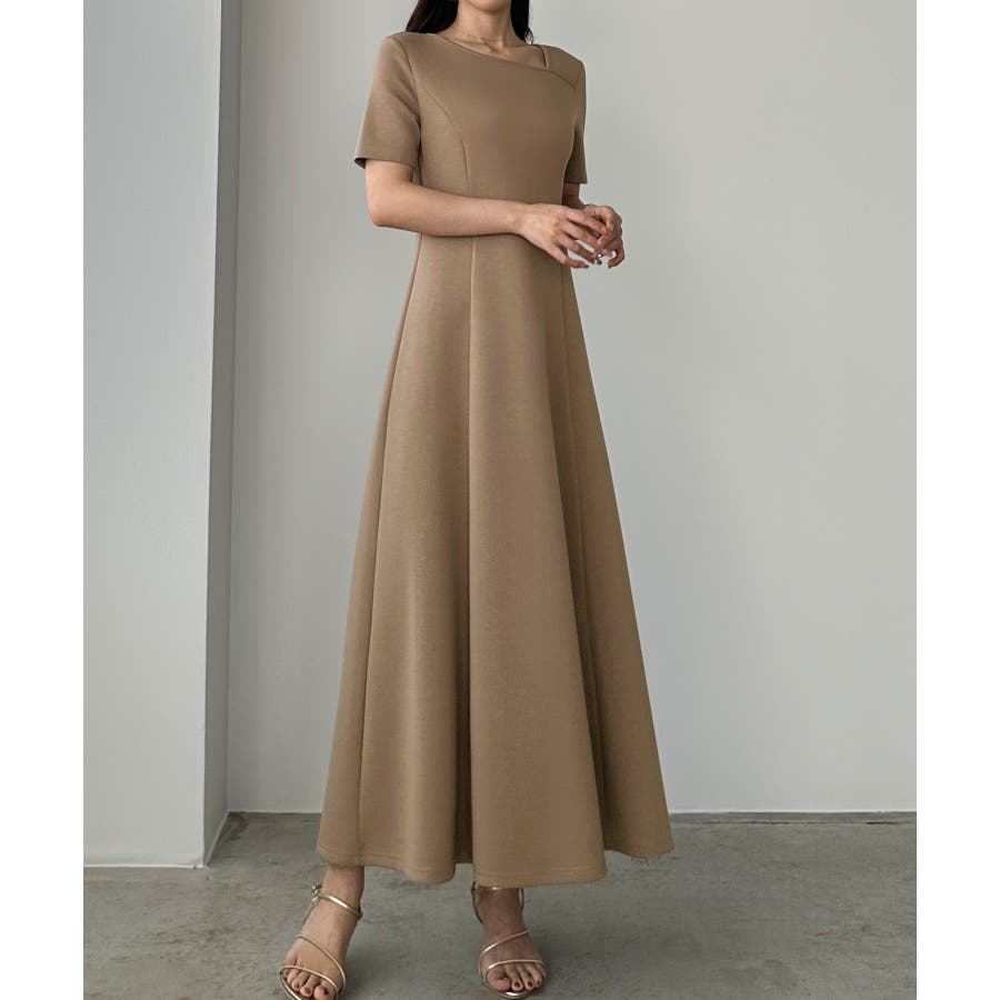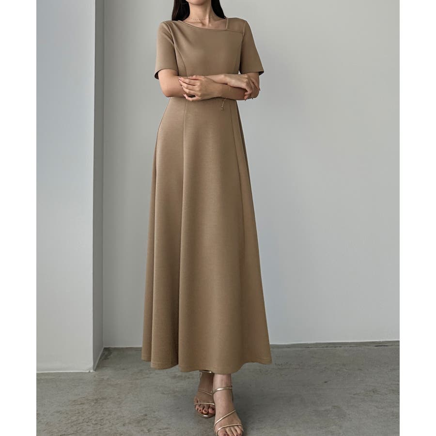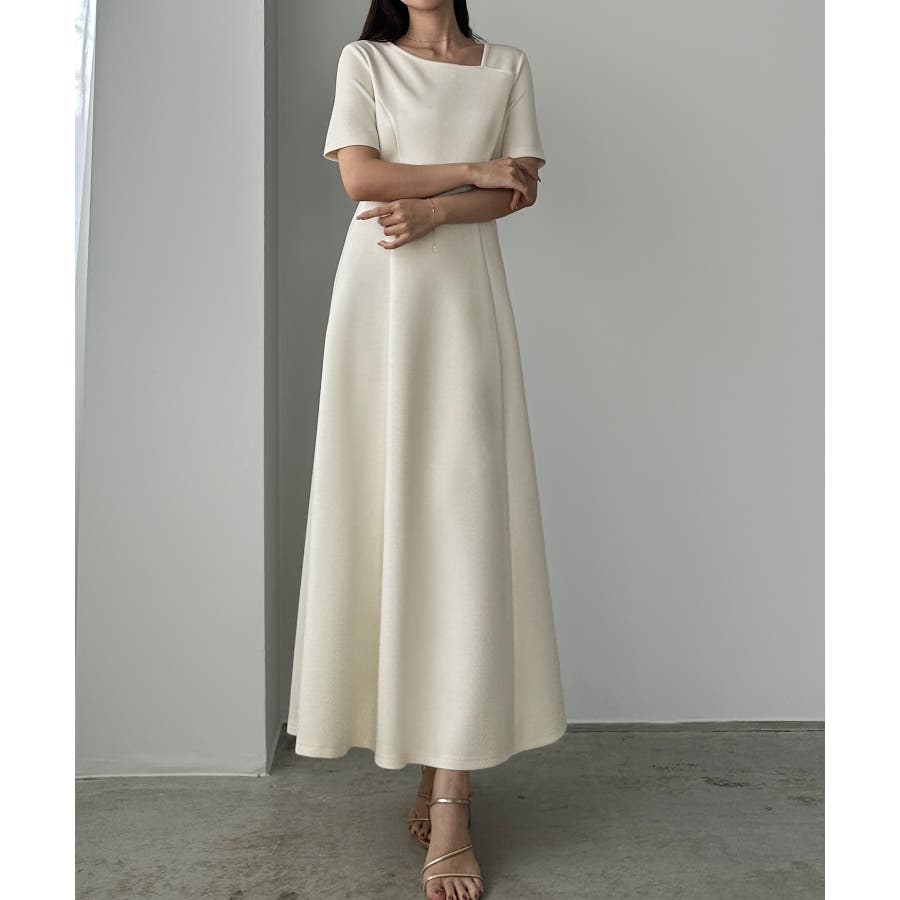 Louere アシメネックカットフレアワンピース【一部ペチスカートSET】