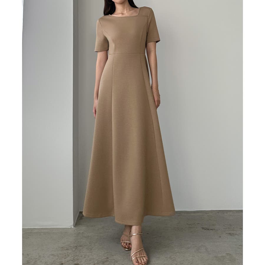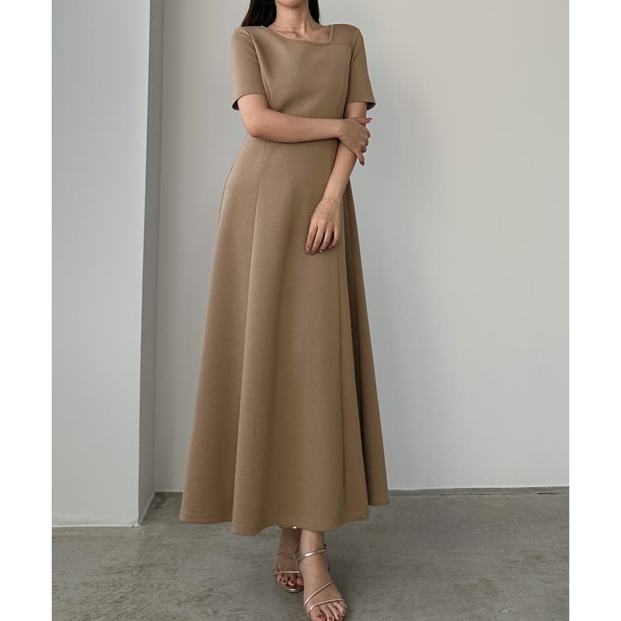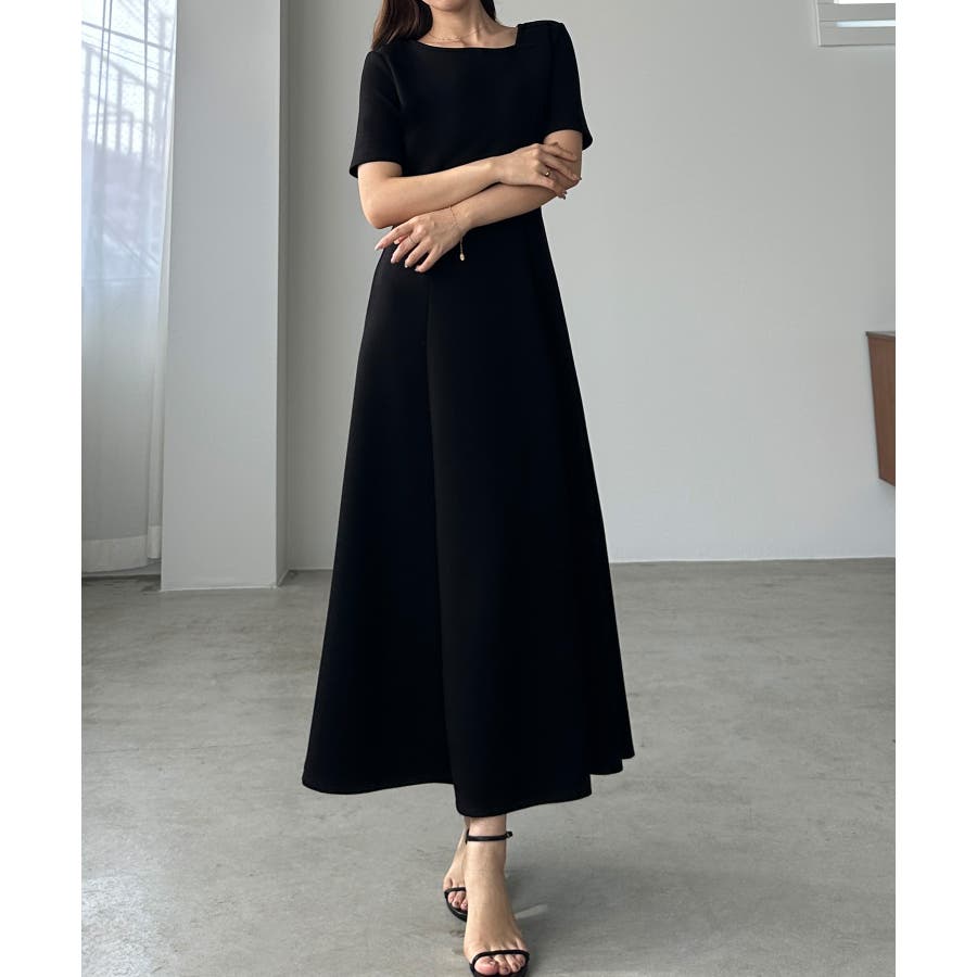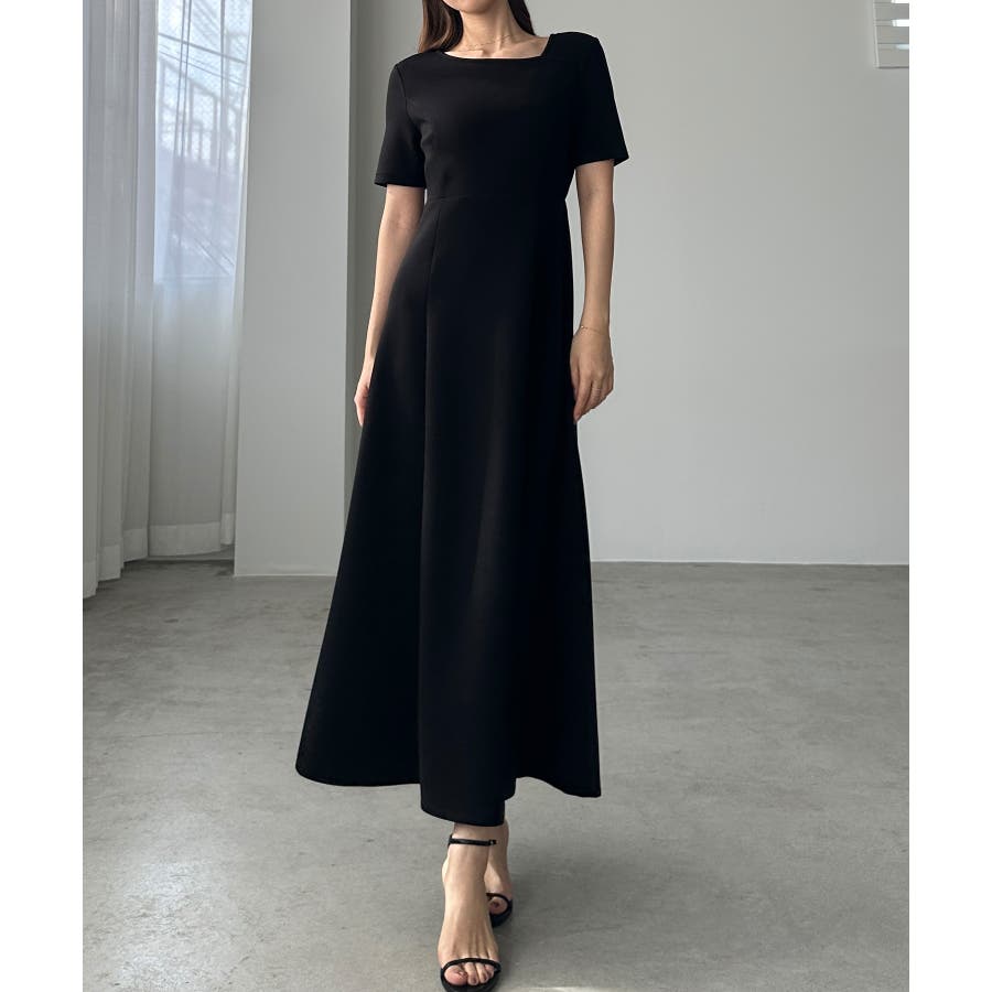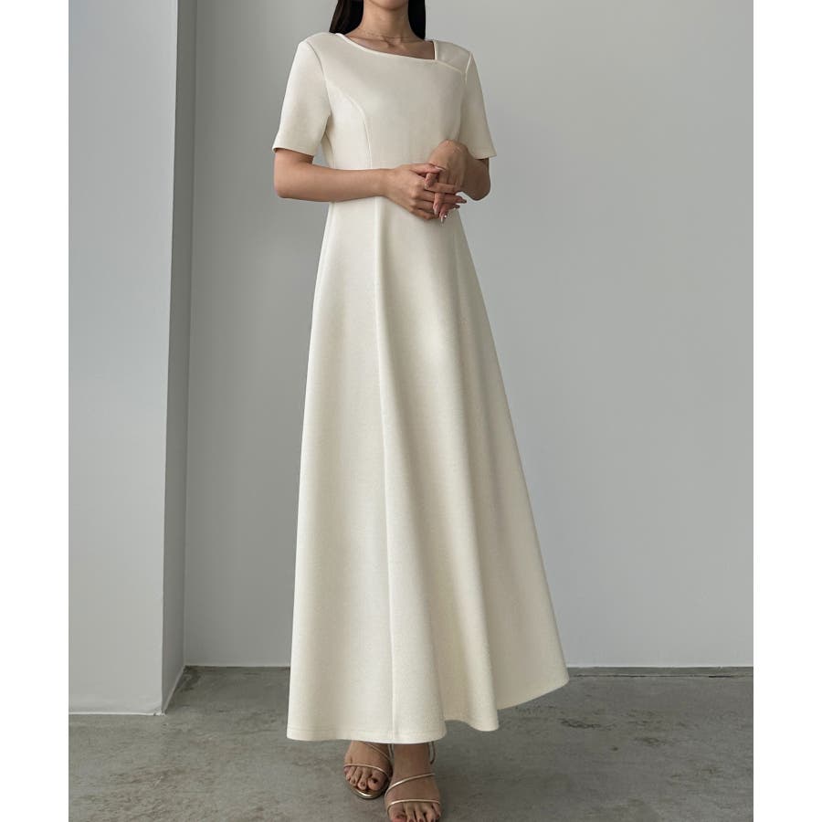 Louere アシメネックカットフレアワンピース【一部ペチスカートSET】