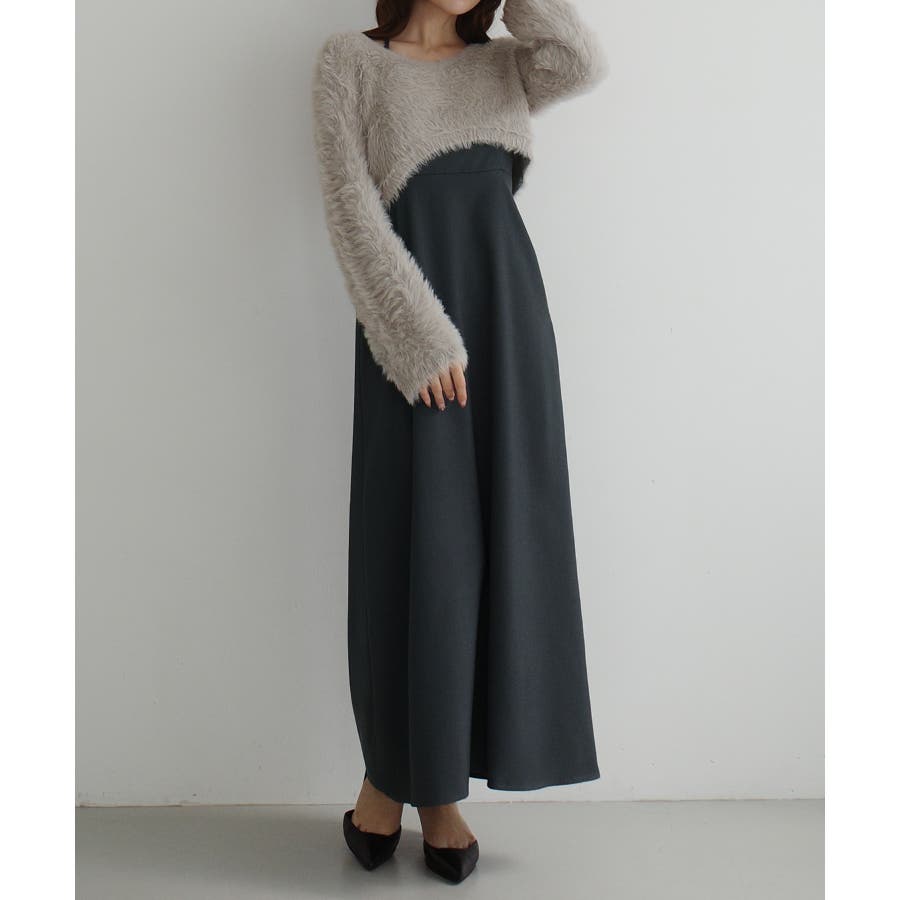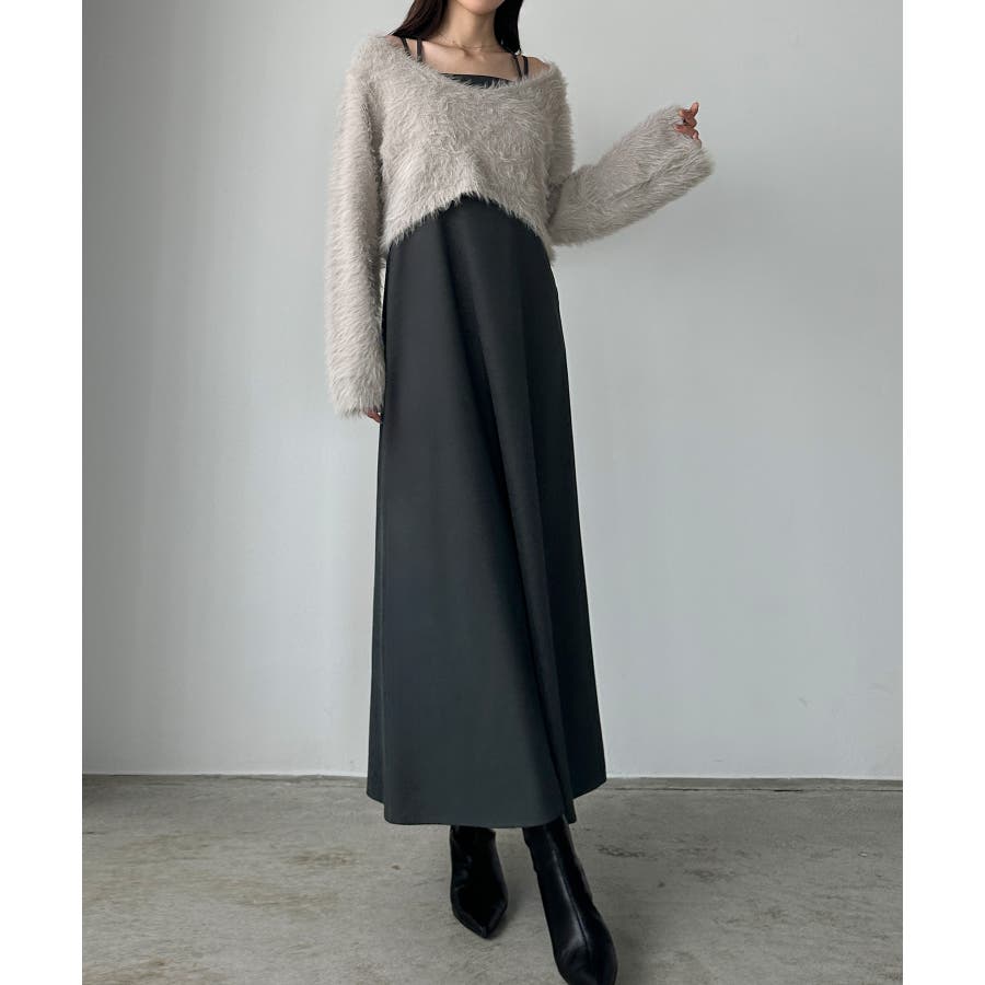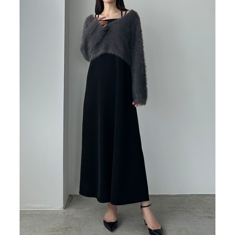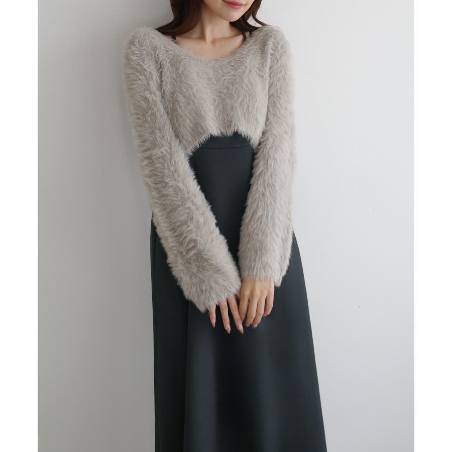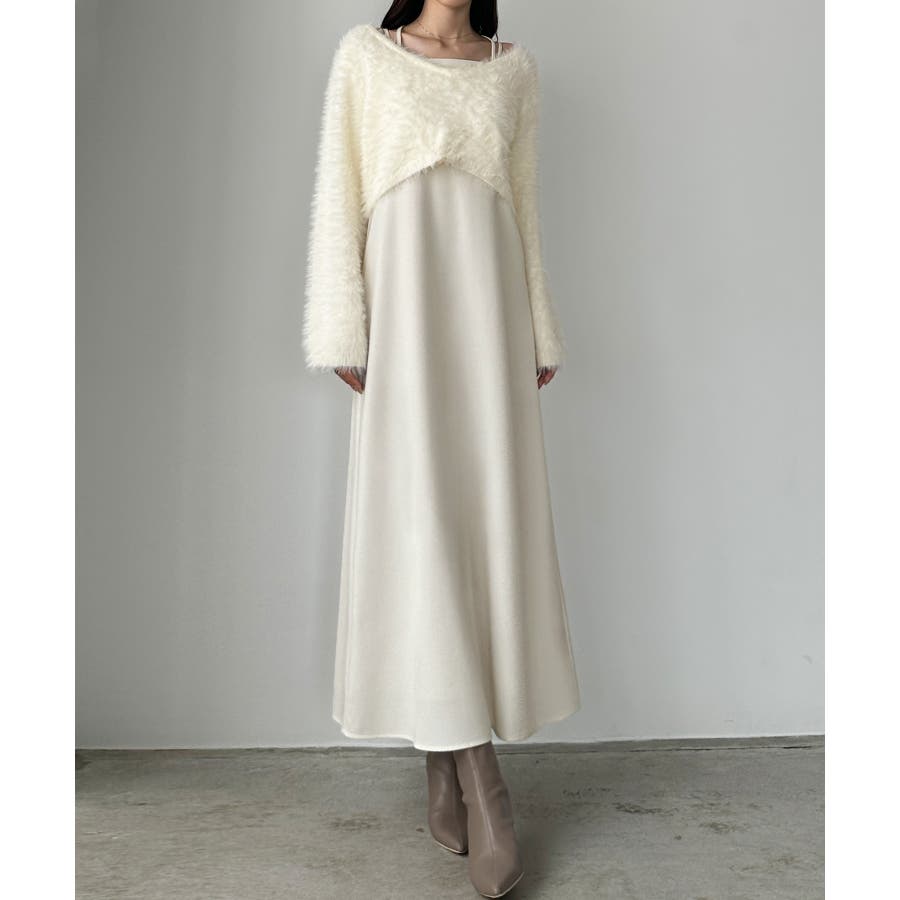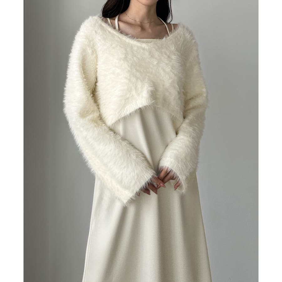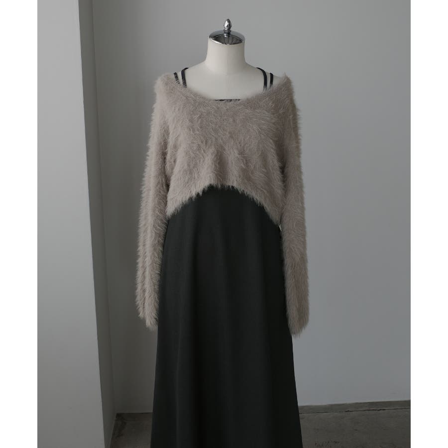 Louere シャギーショートニット+セミフレアキャミワンピースSET