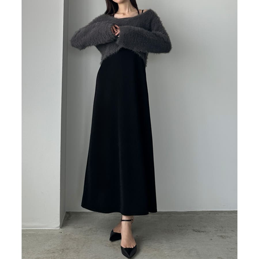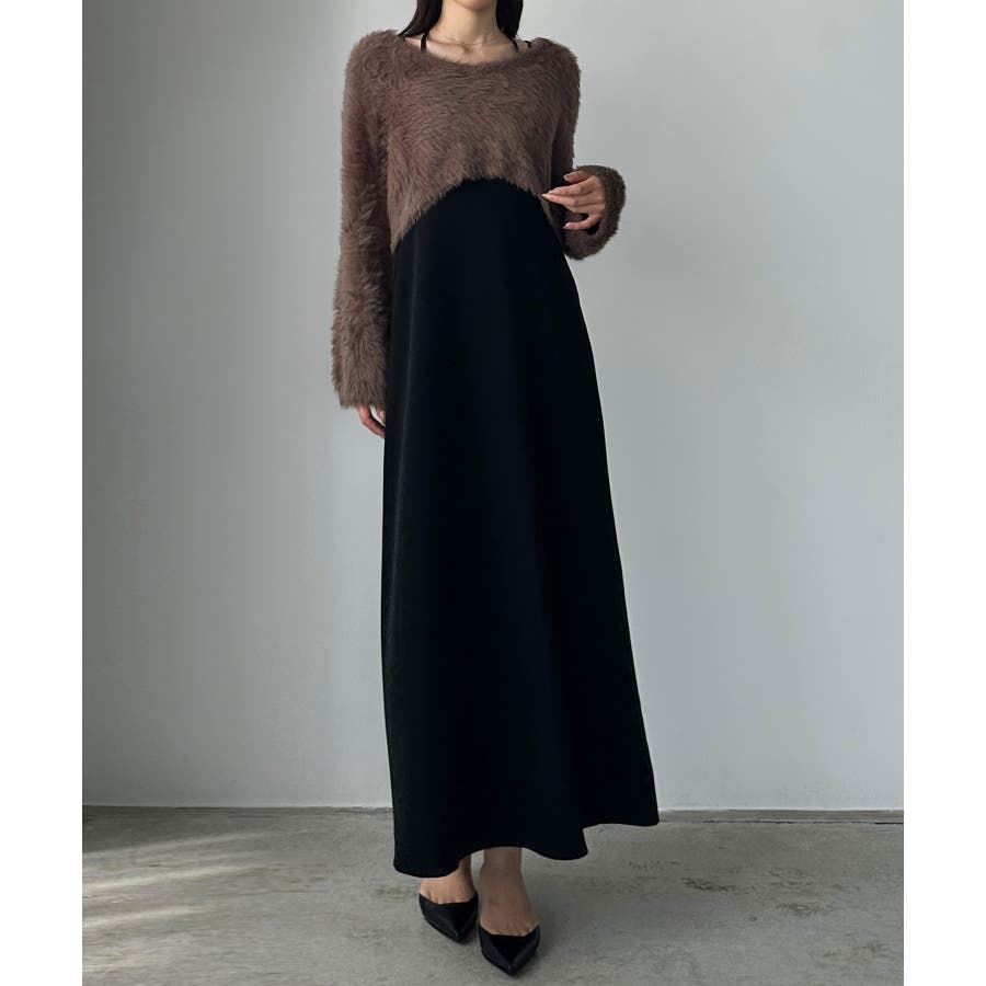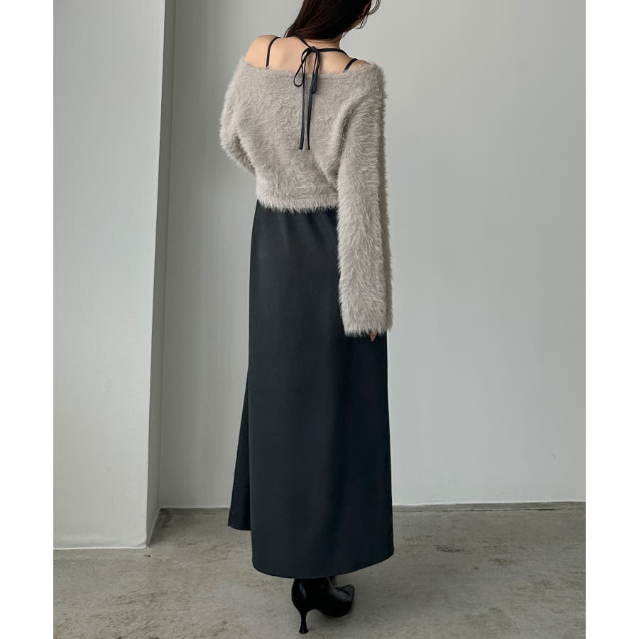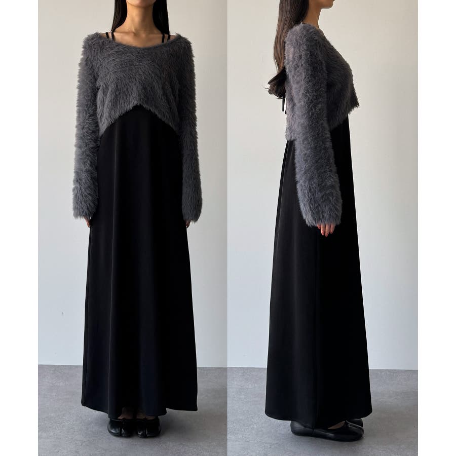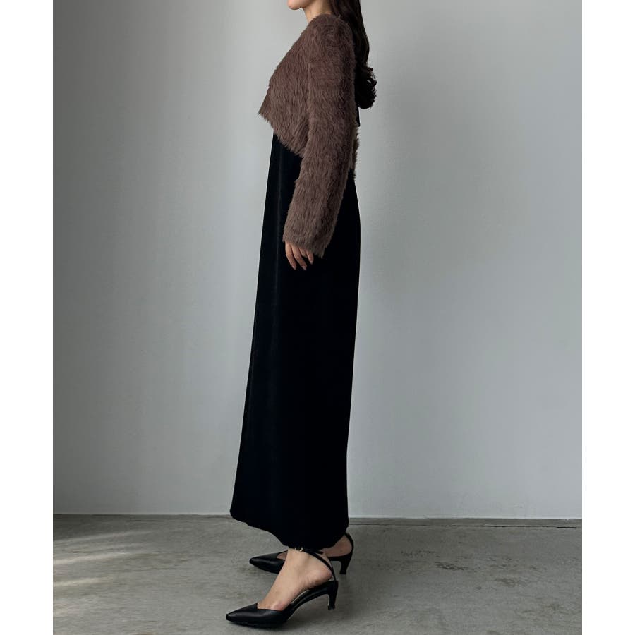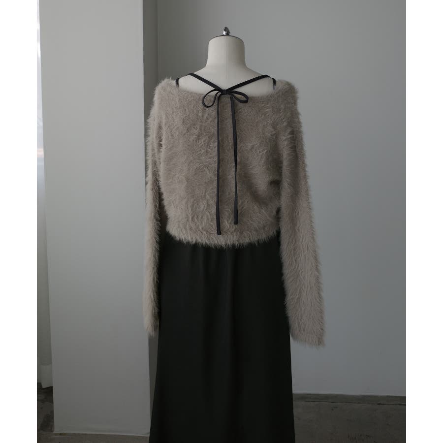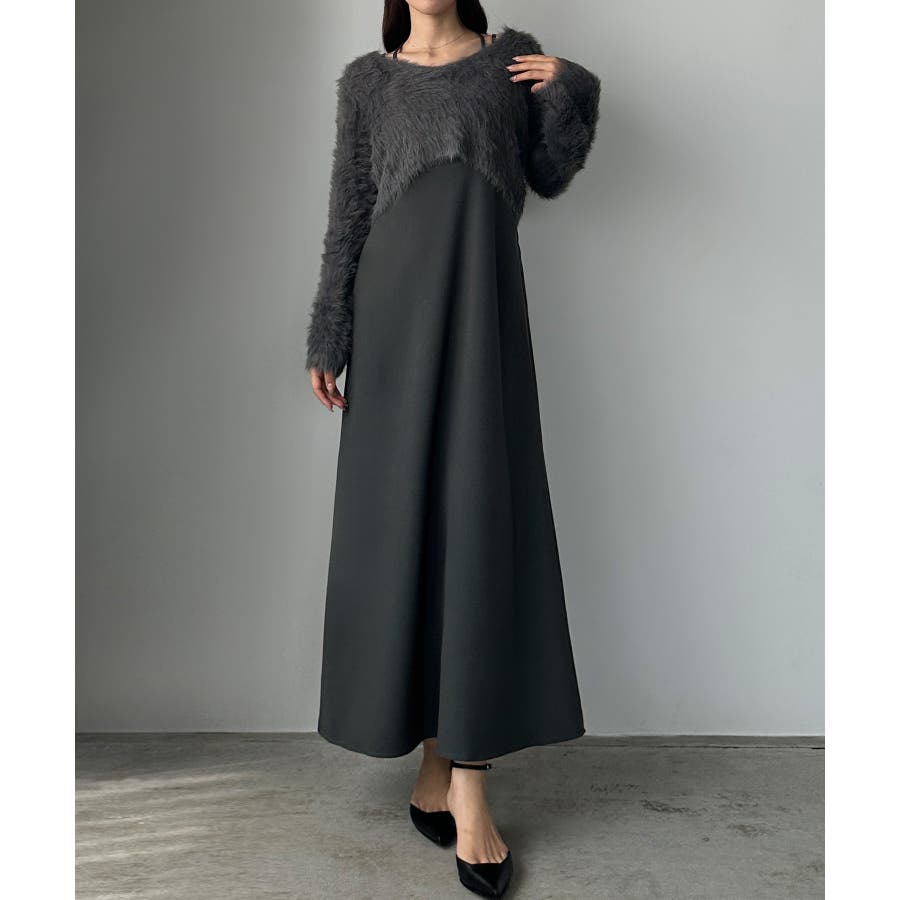 Louere シャギーショートニット+セミフレアキャミワンピースSET