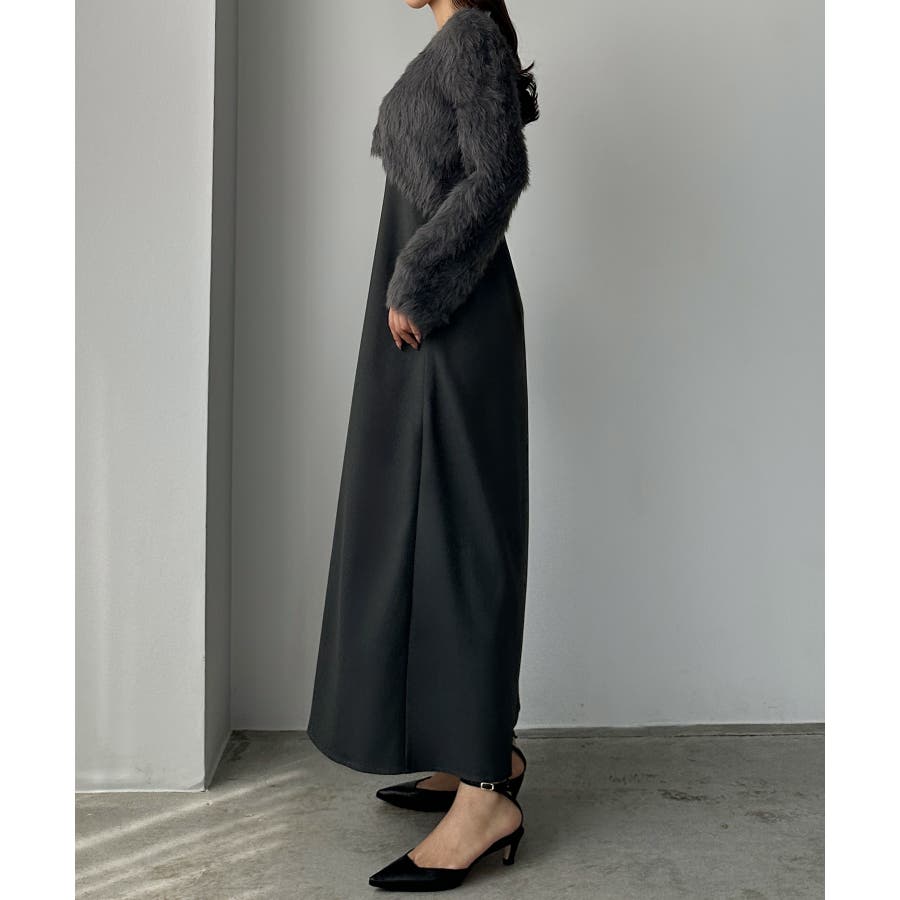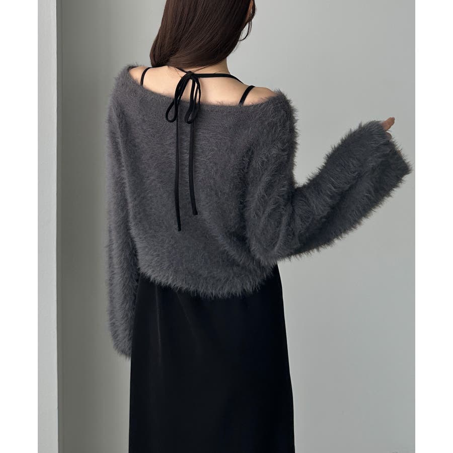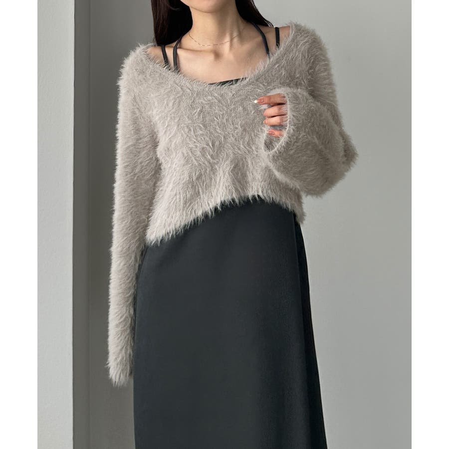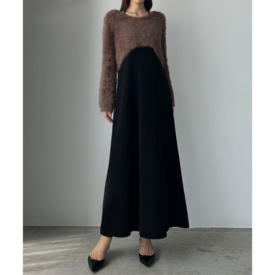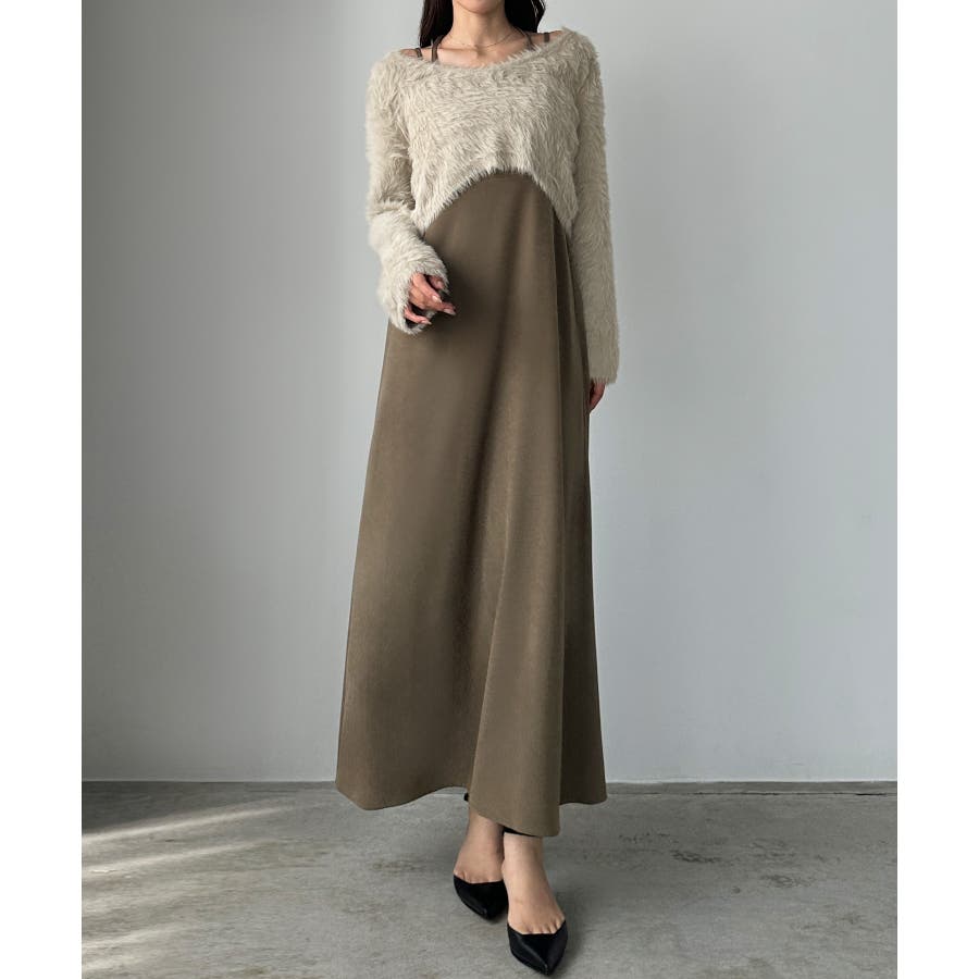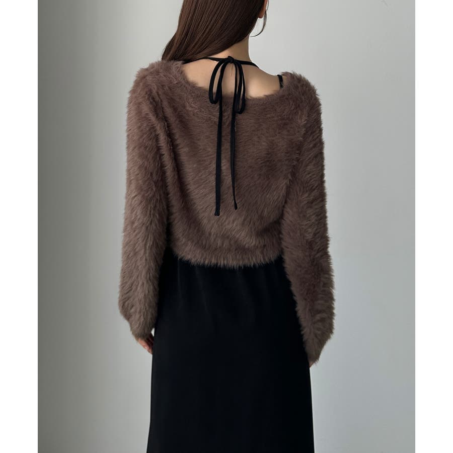 Louere シャギーショートニット+セミフレアキャミワンピースSET