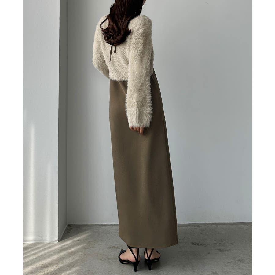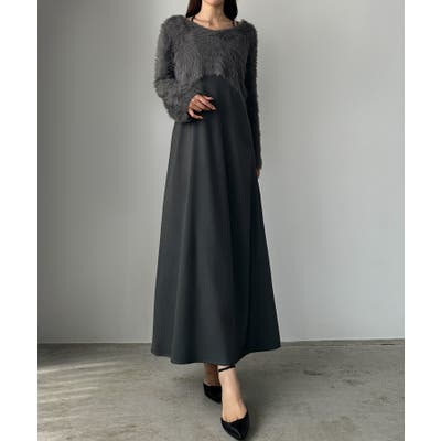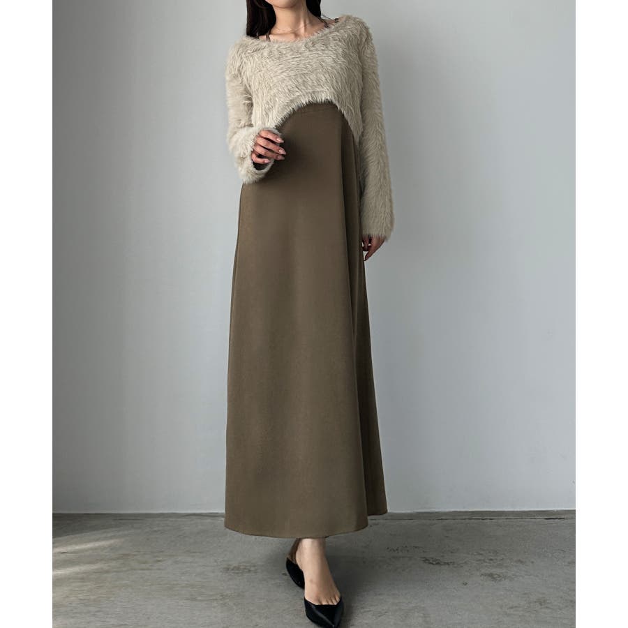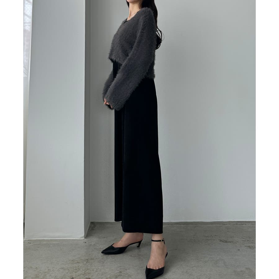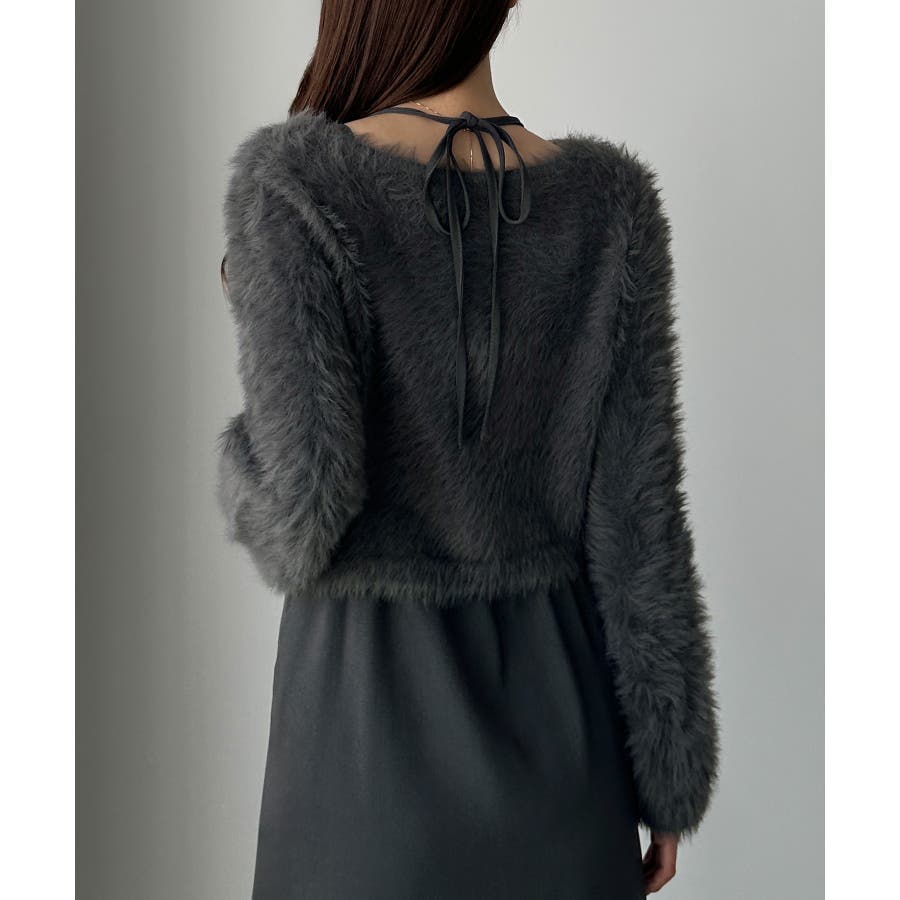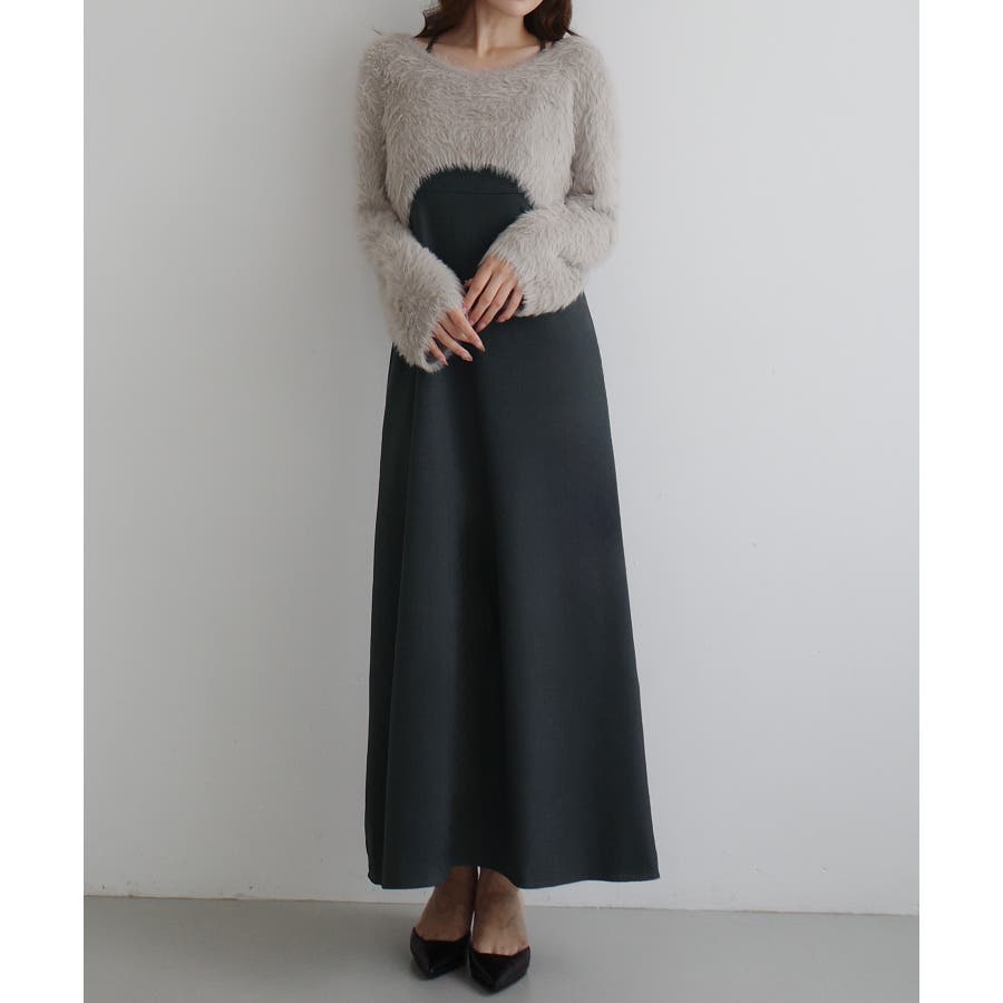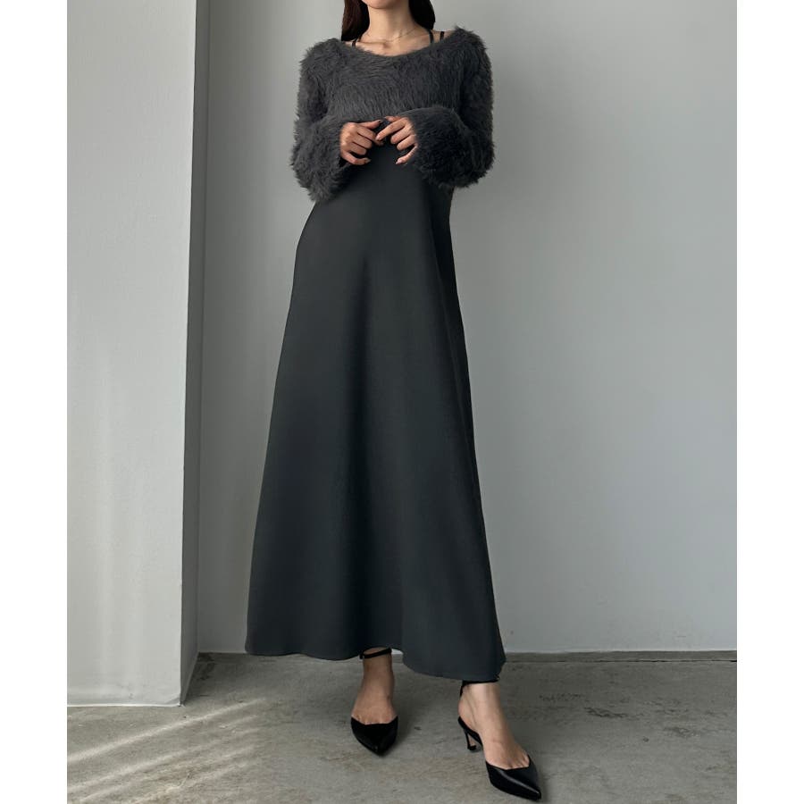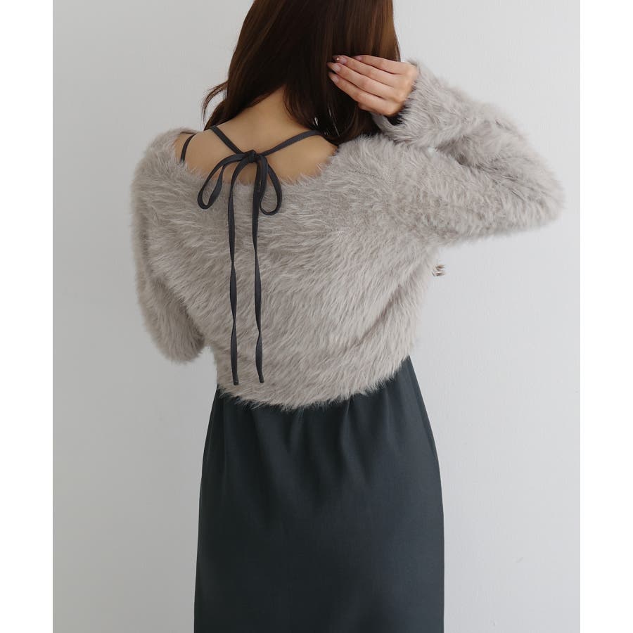 Louere シャギーショートニット+セミフレアキャミワンピースSET
