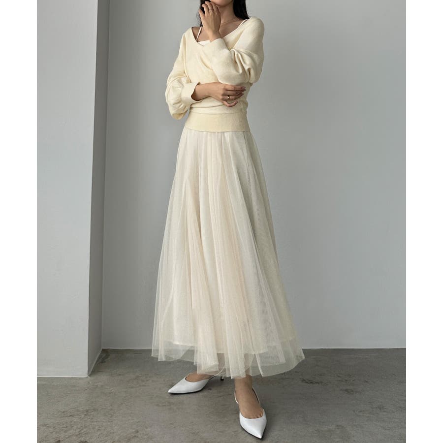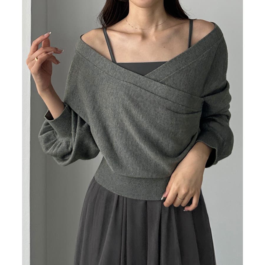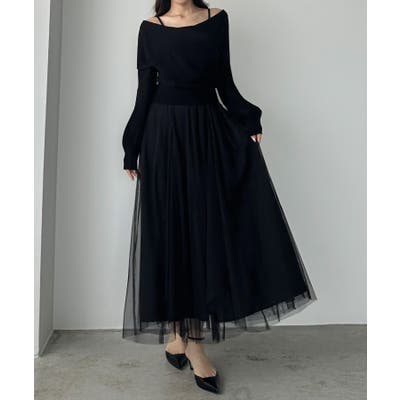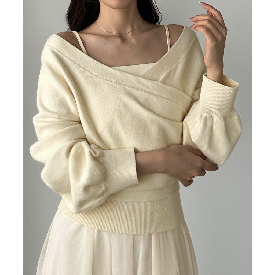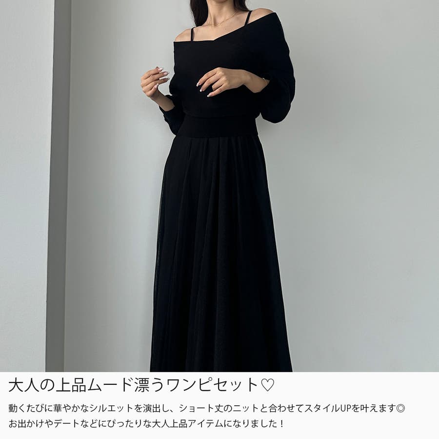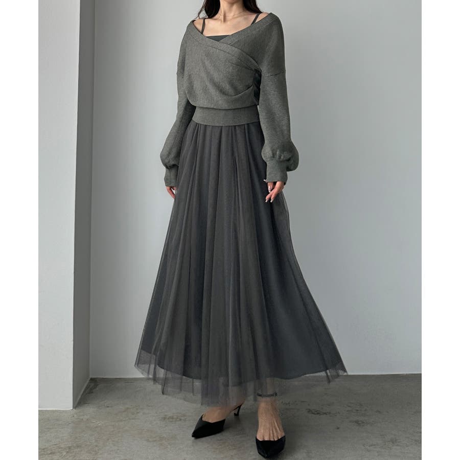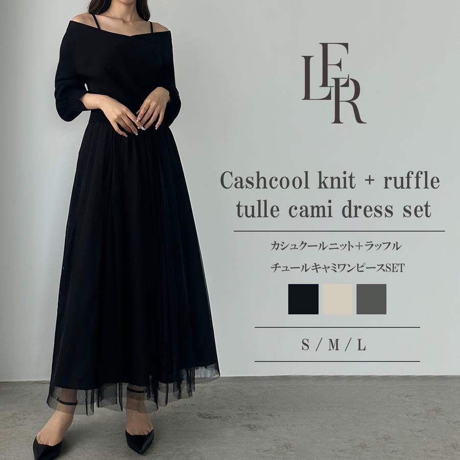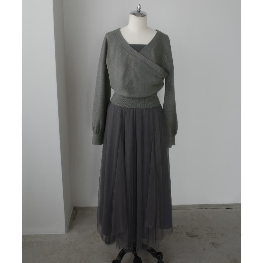 Louere カシュクールニット+ラッフルチュールキャミワンピースSET