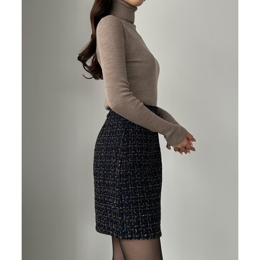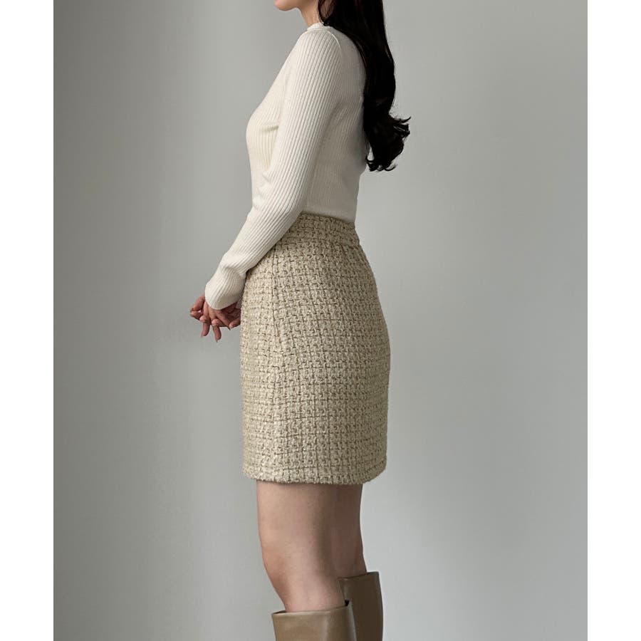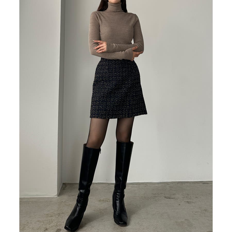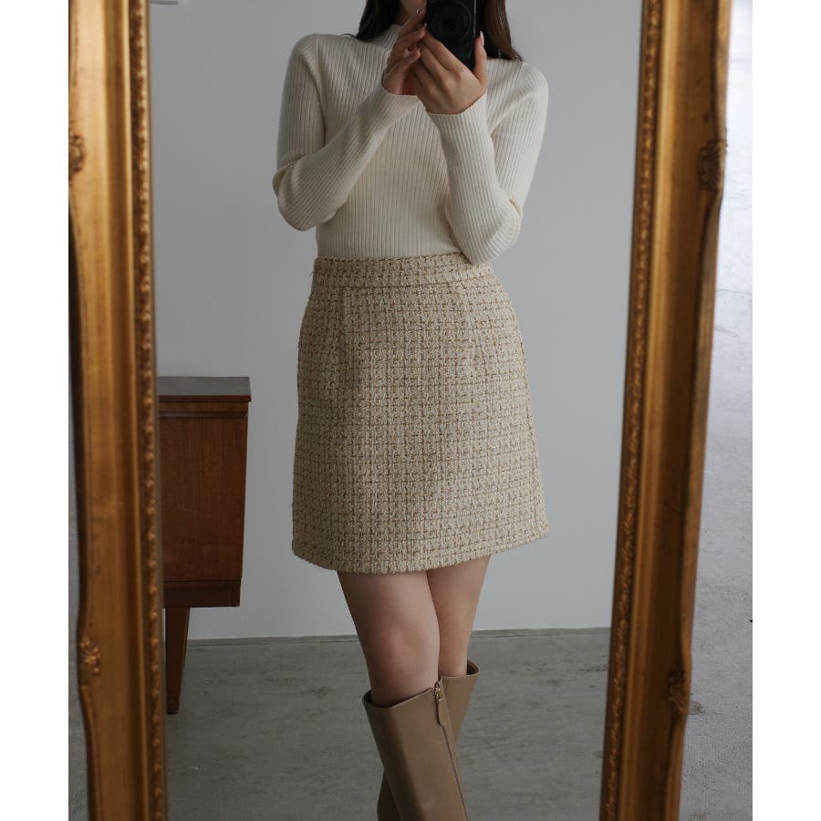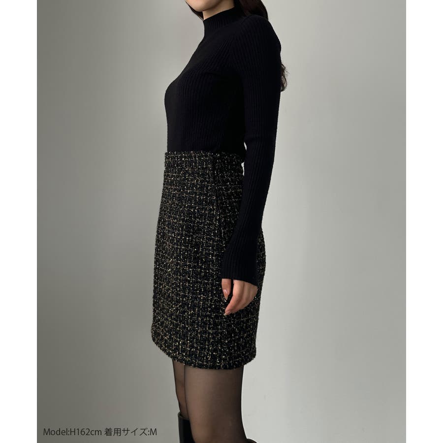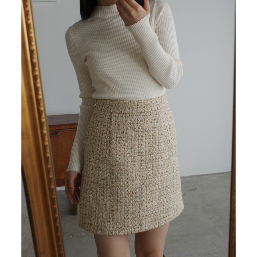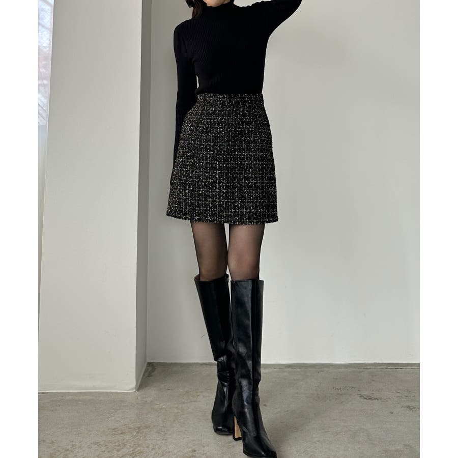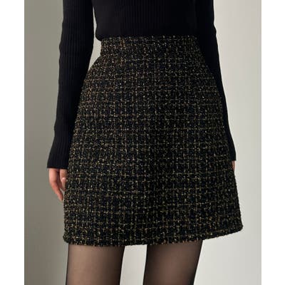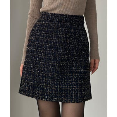 Louere ラメファンシーツイードミニスカート(インパン付き、ウール混)
