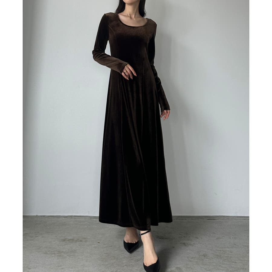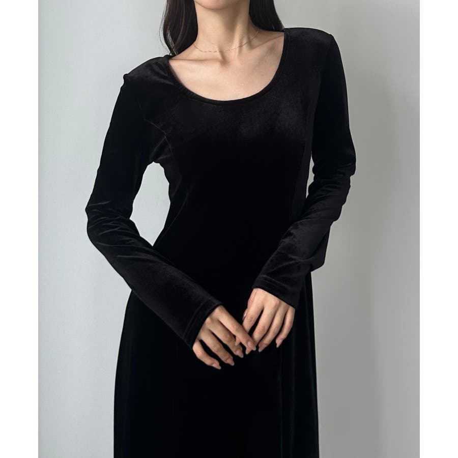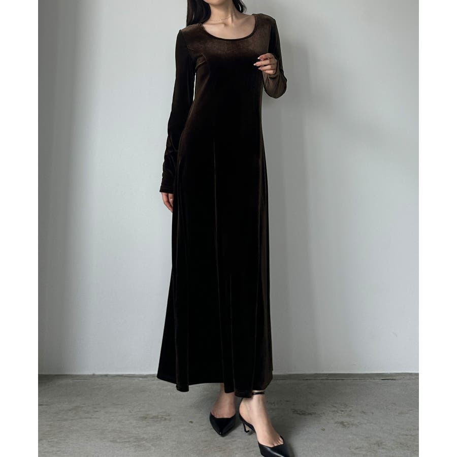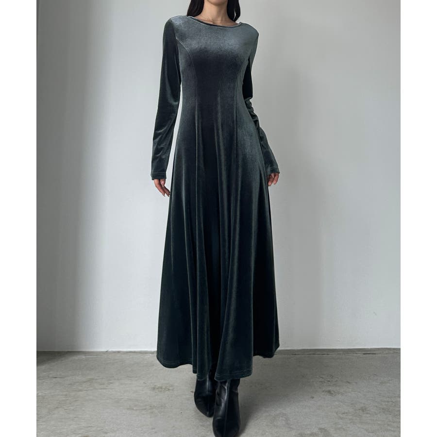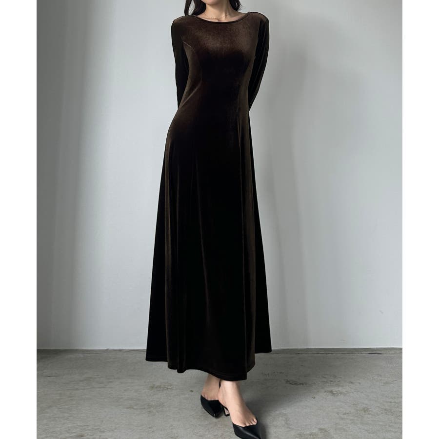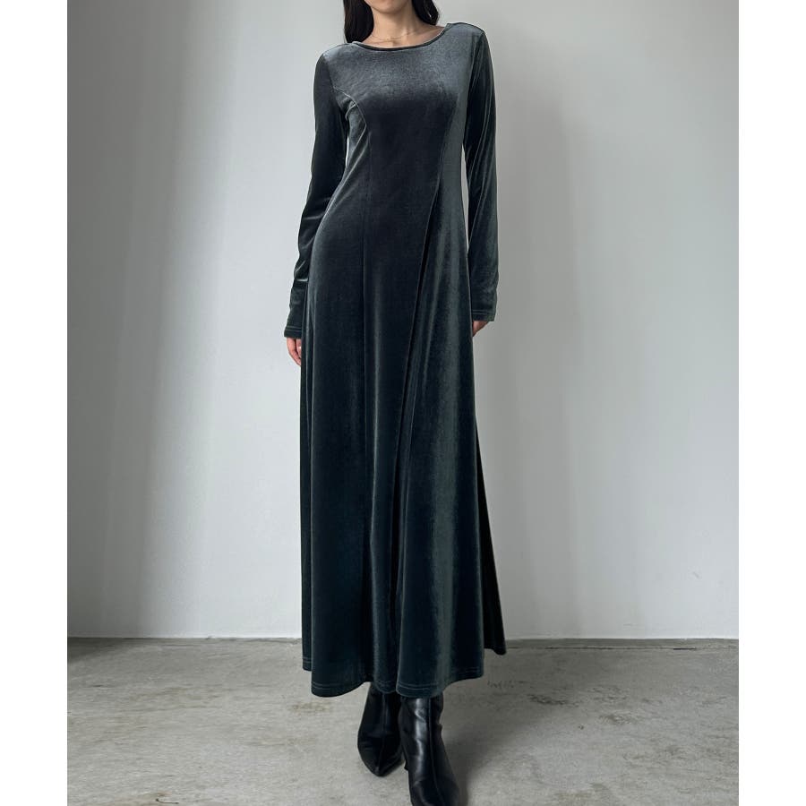Louere 前後2wayベロアセミフレアワンピース(薄手、裏地無し)