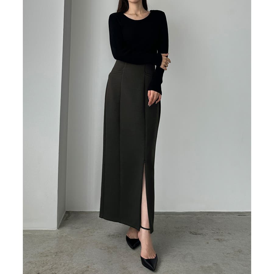 Louere ポケットデザインファスナースリットIラインポンチスカート