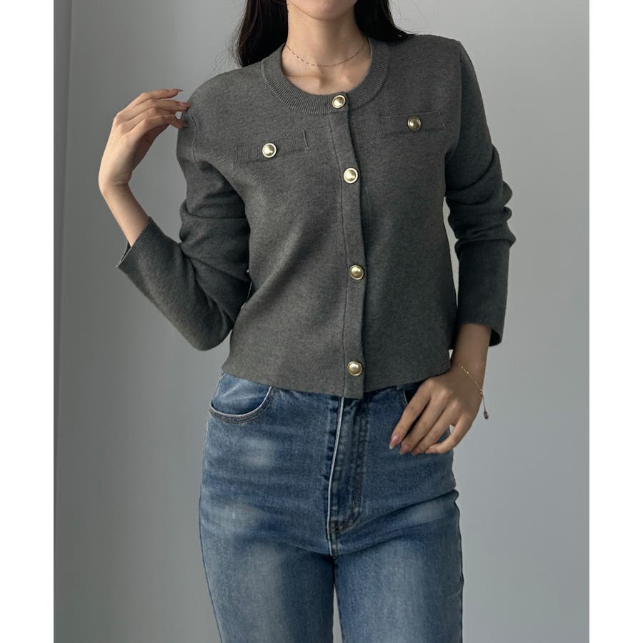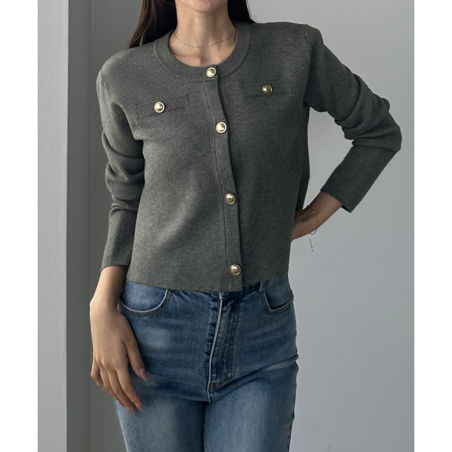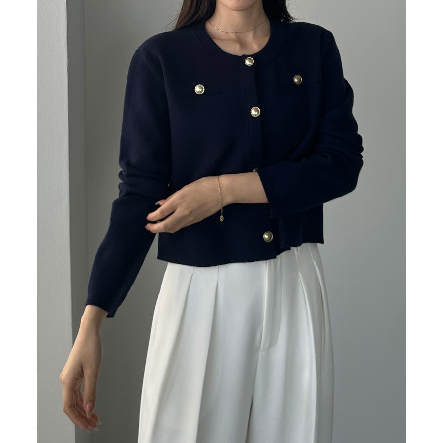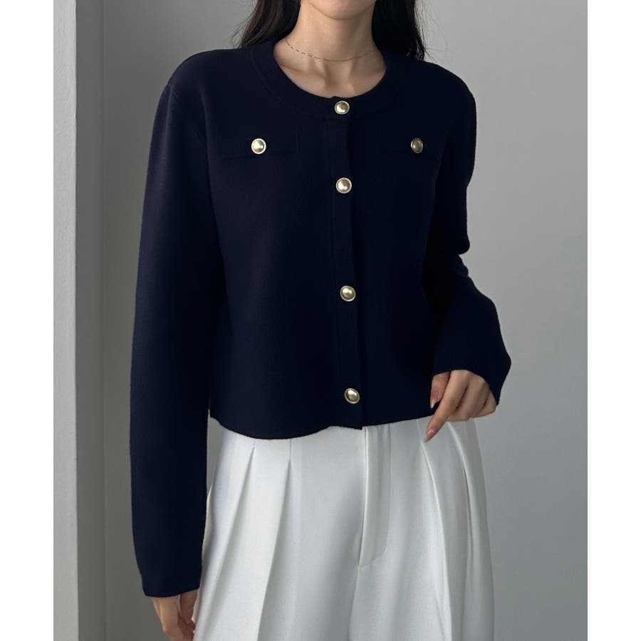 Louere ゴールドボタンニットカーディガン