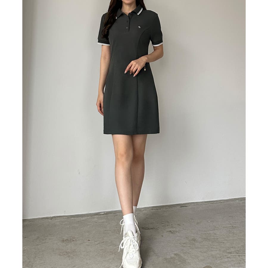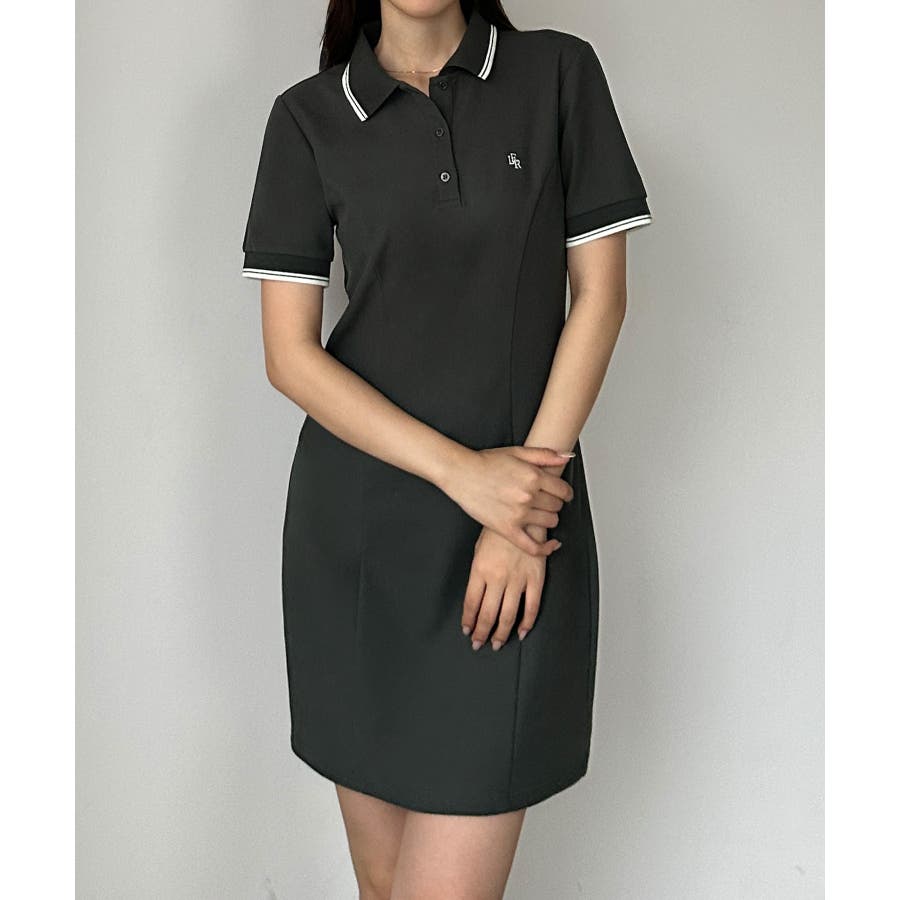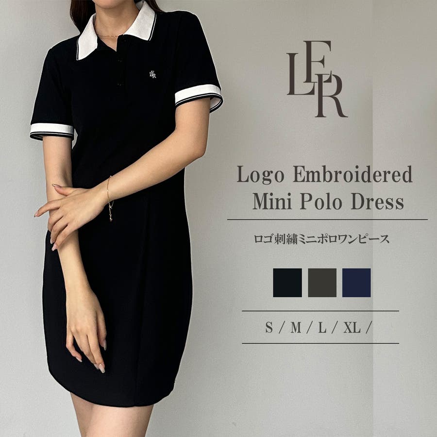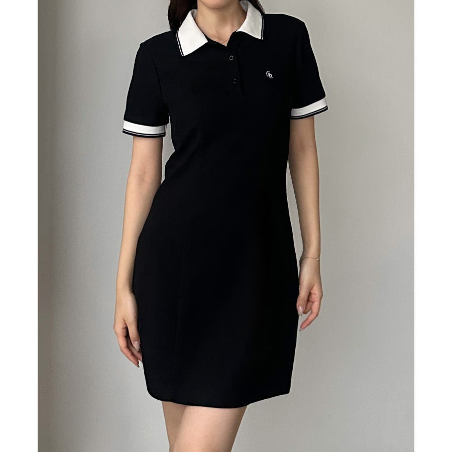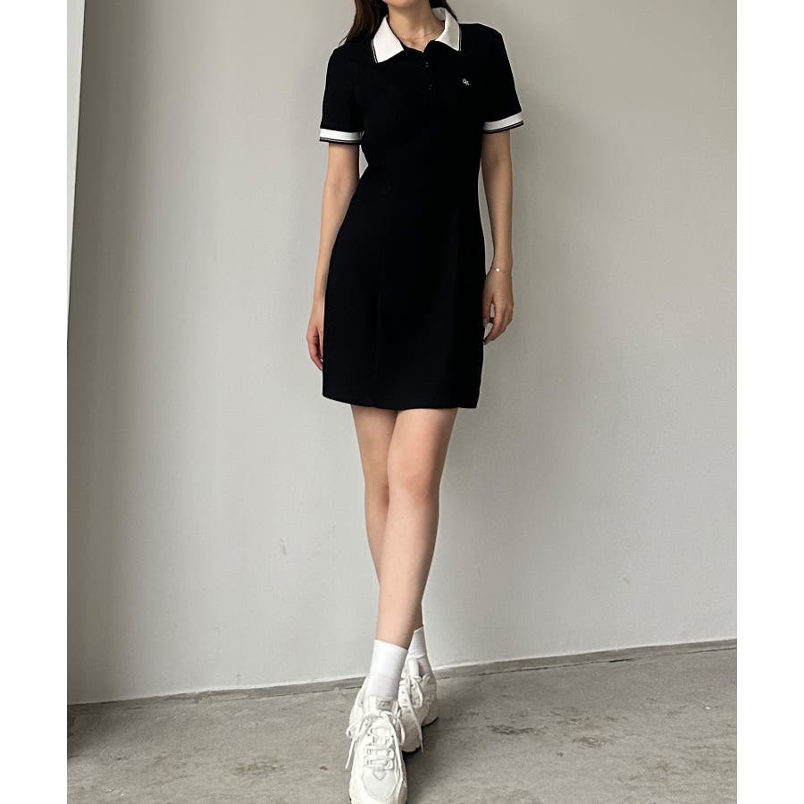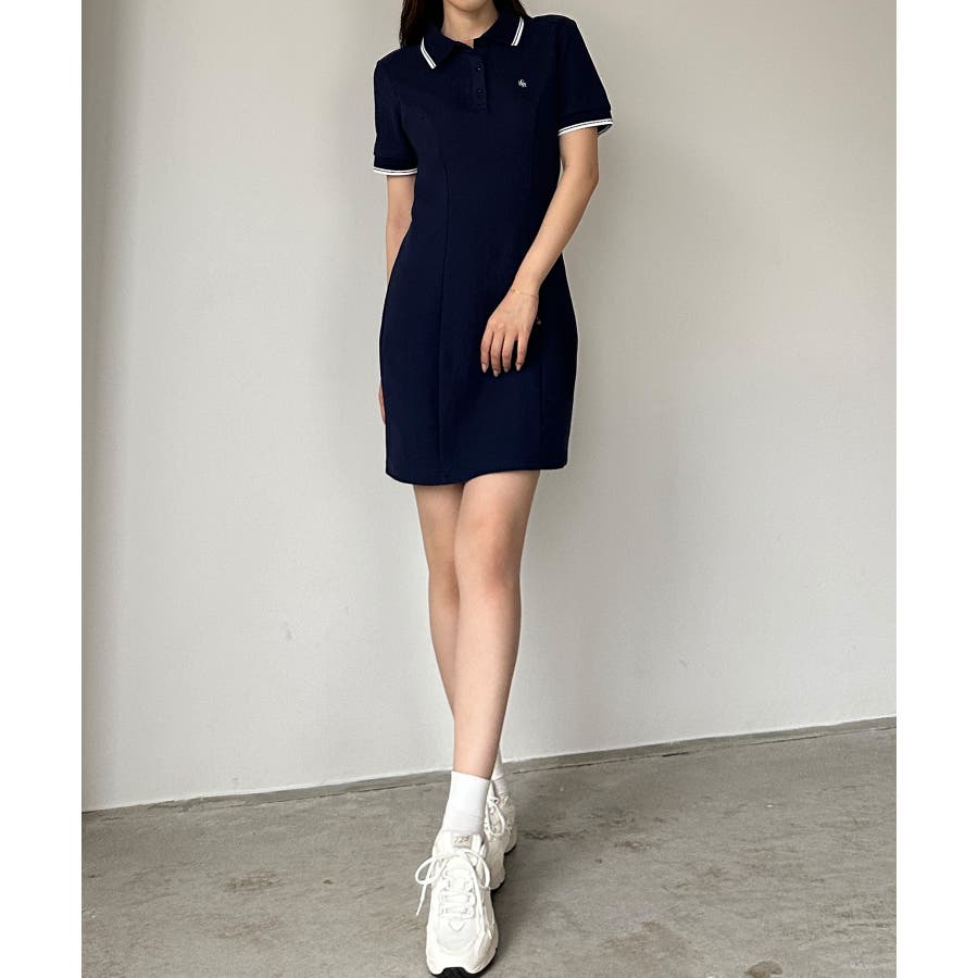 Louere ロゴ刺繍ミニポロワンピース