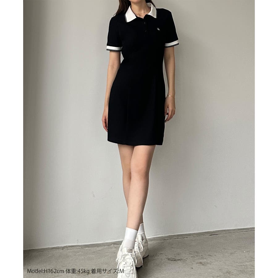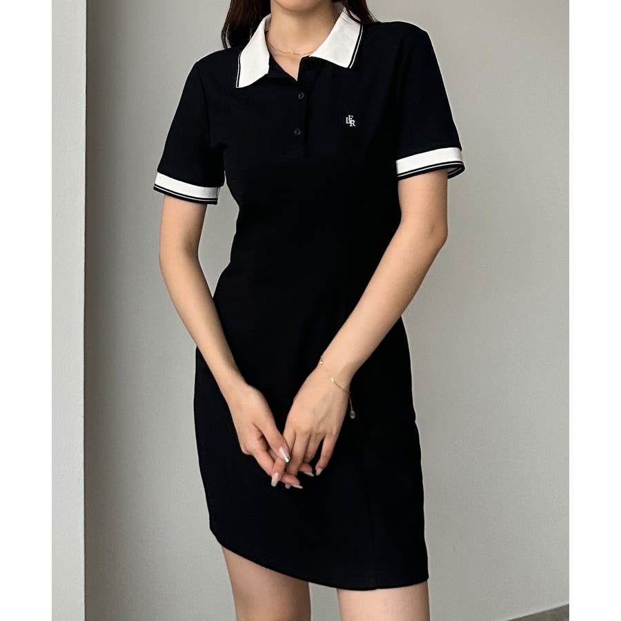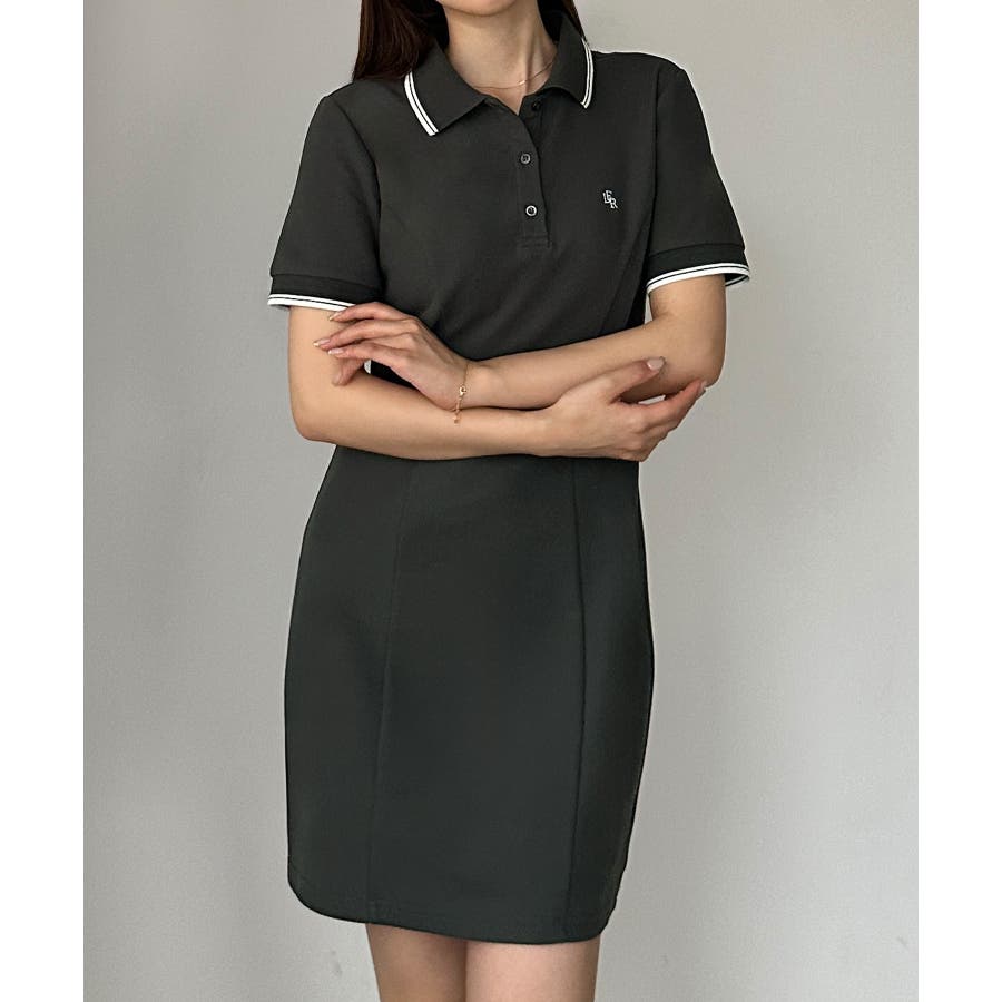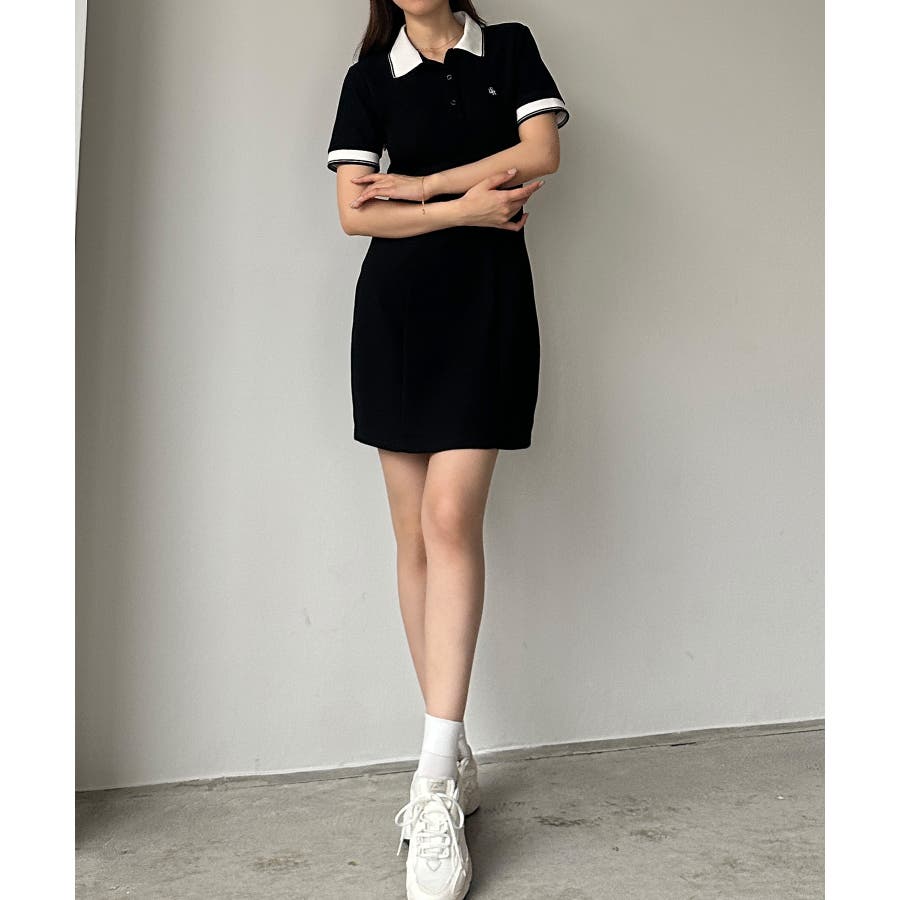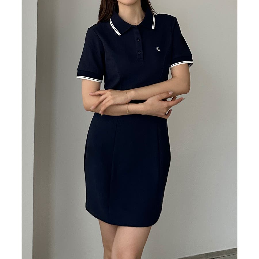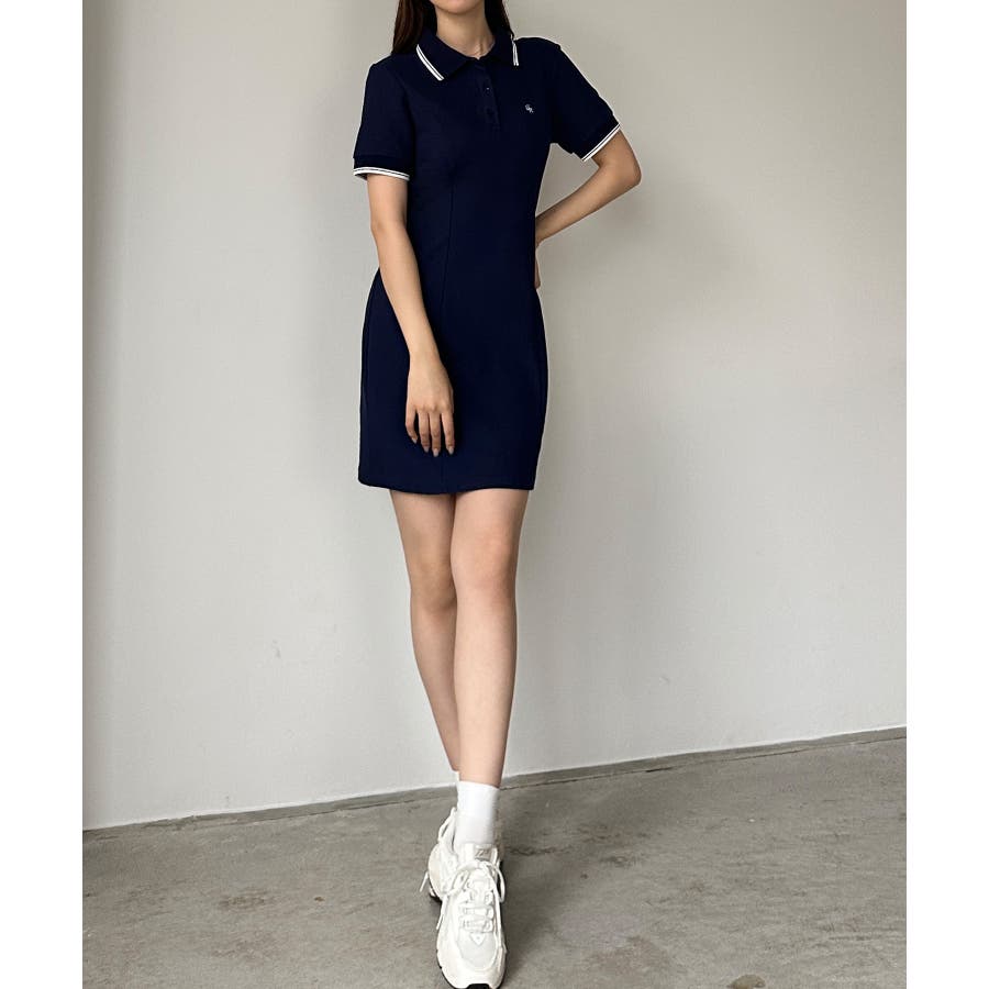Louere ロゴ刺繍ミニポロワンピース
