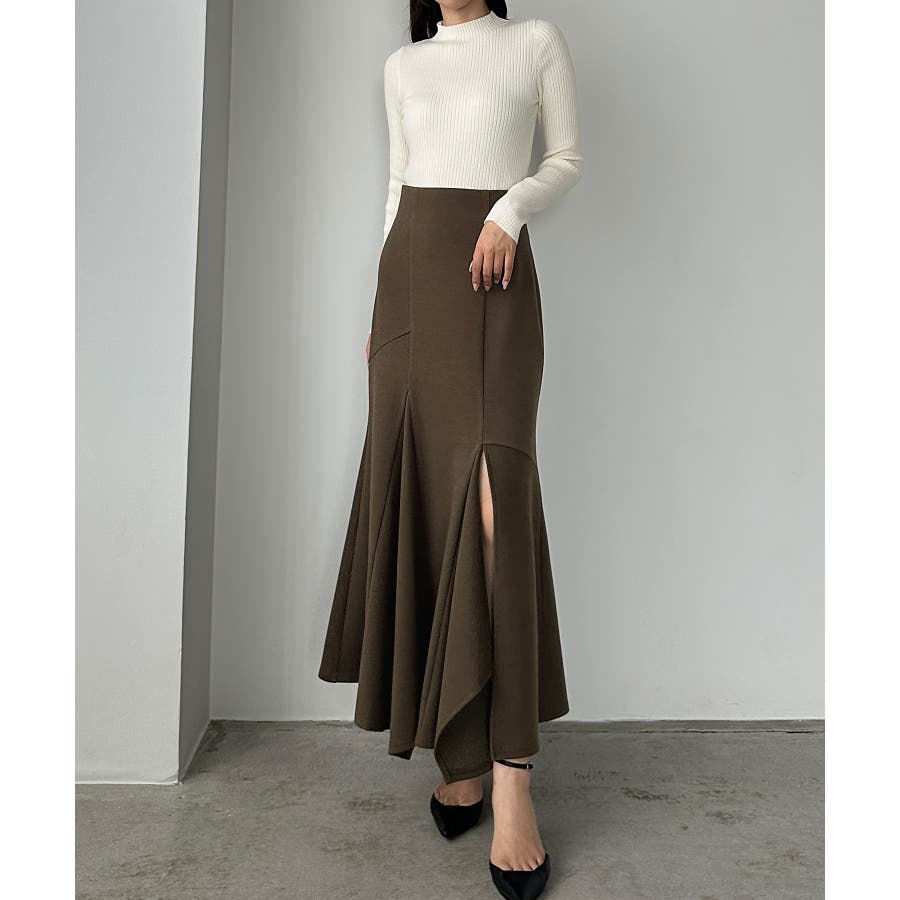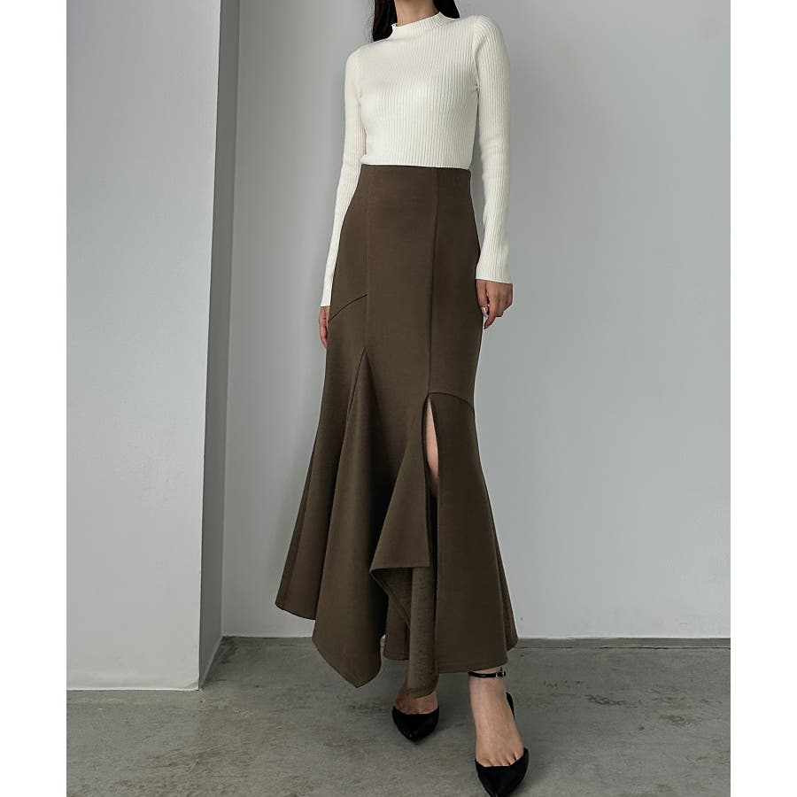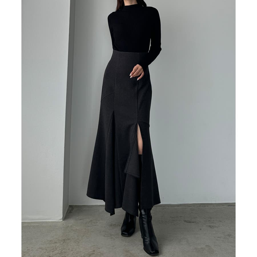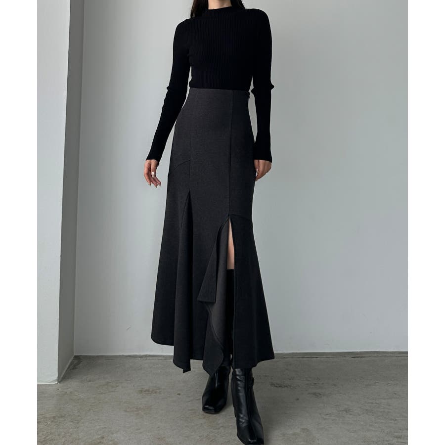 Louere ウォームイレヘム深スリットハイウエストマーメイドスカート