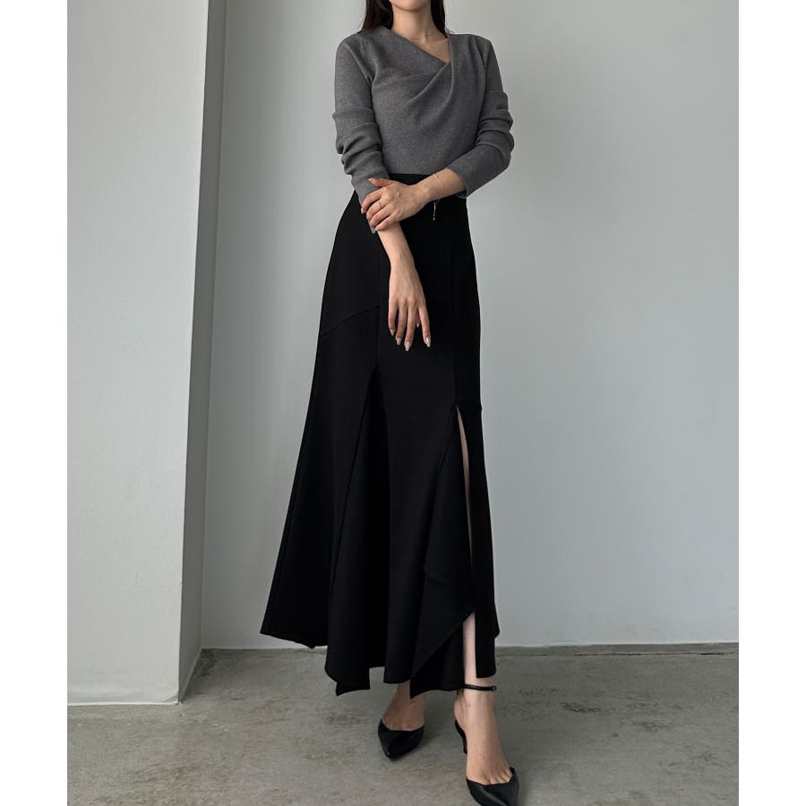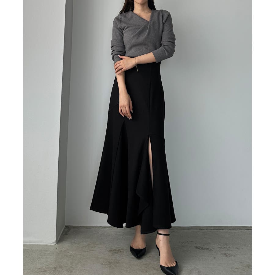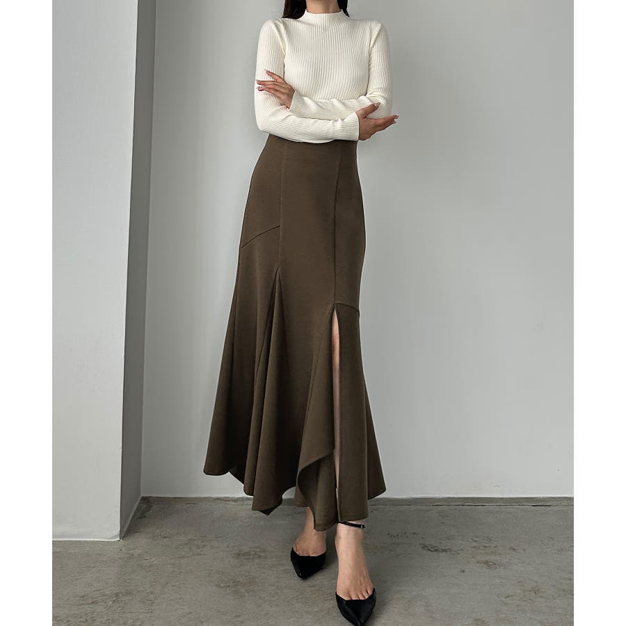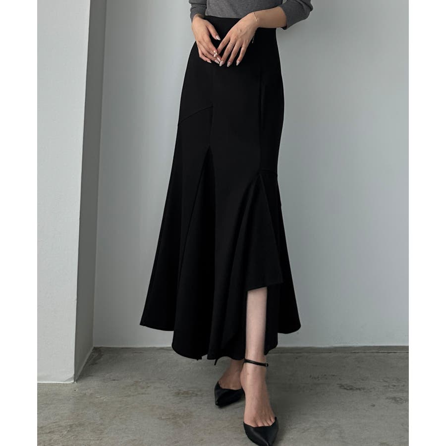Louere ウォームイレヘム深スリットハイウエストマーメイドスカート