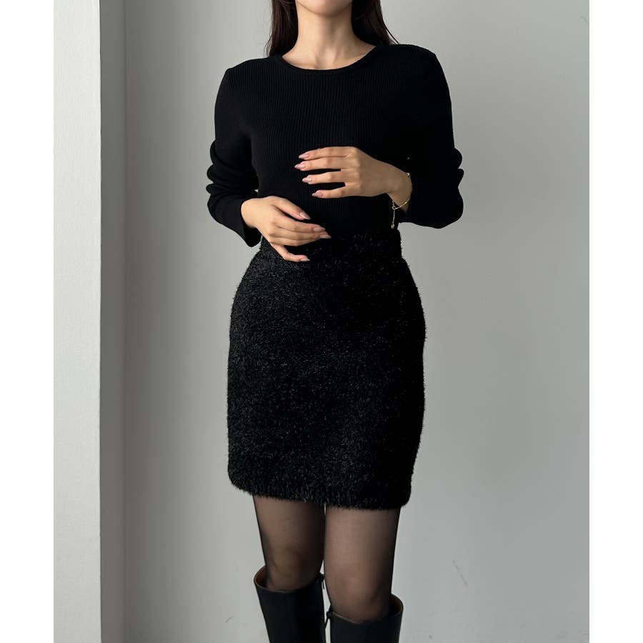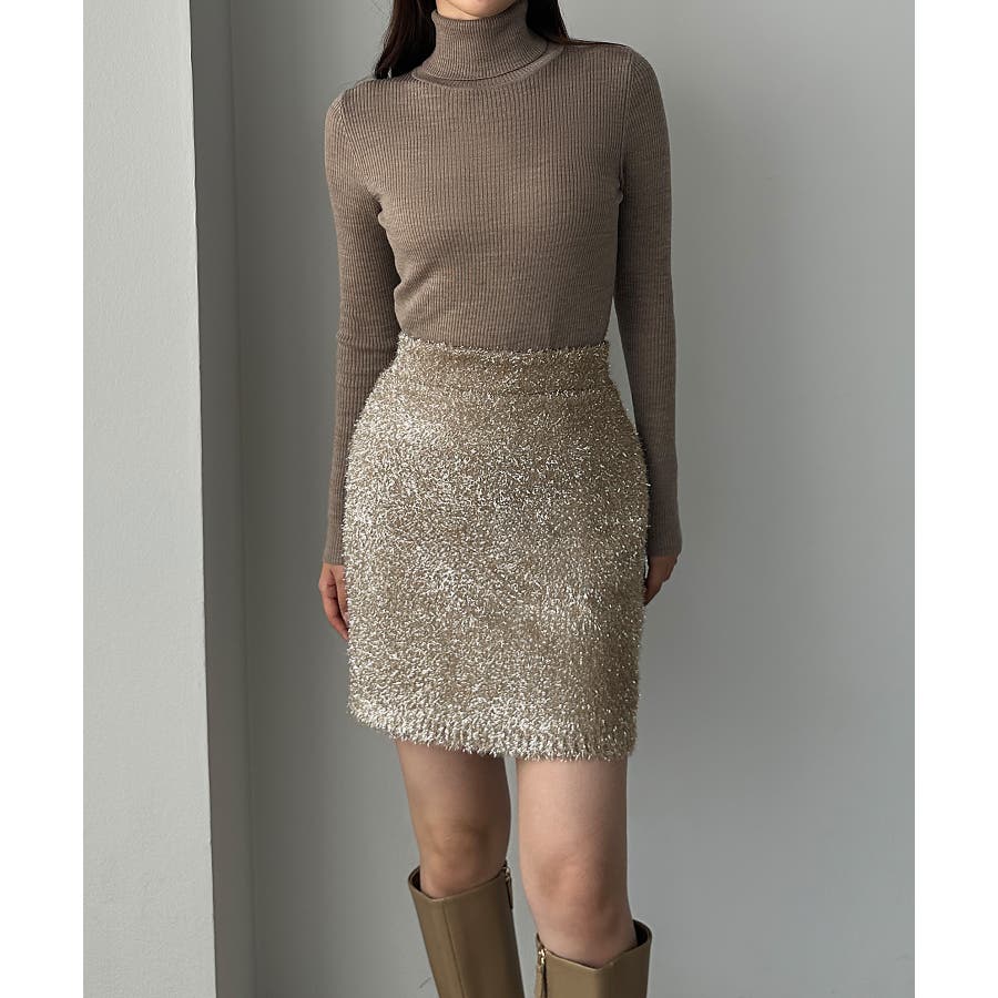 Louere キラキラシャギーニットミニスカート