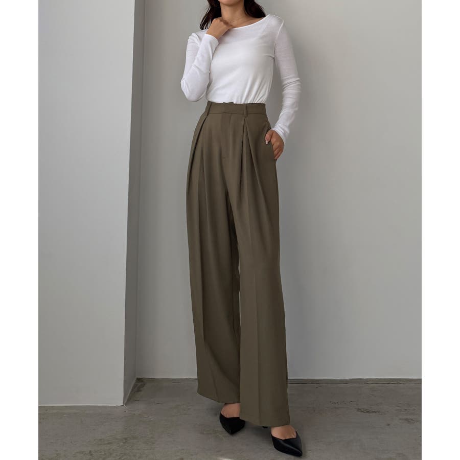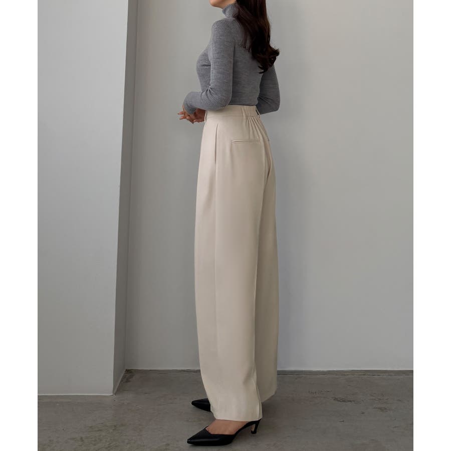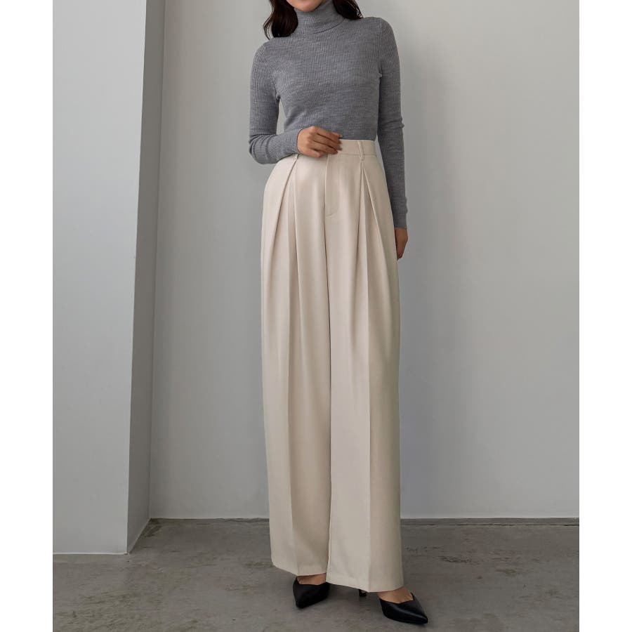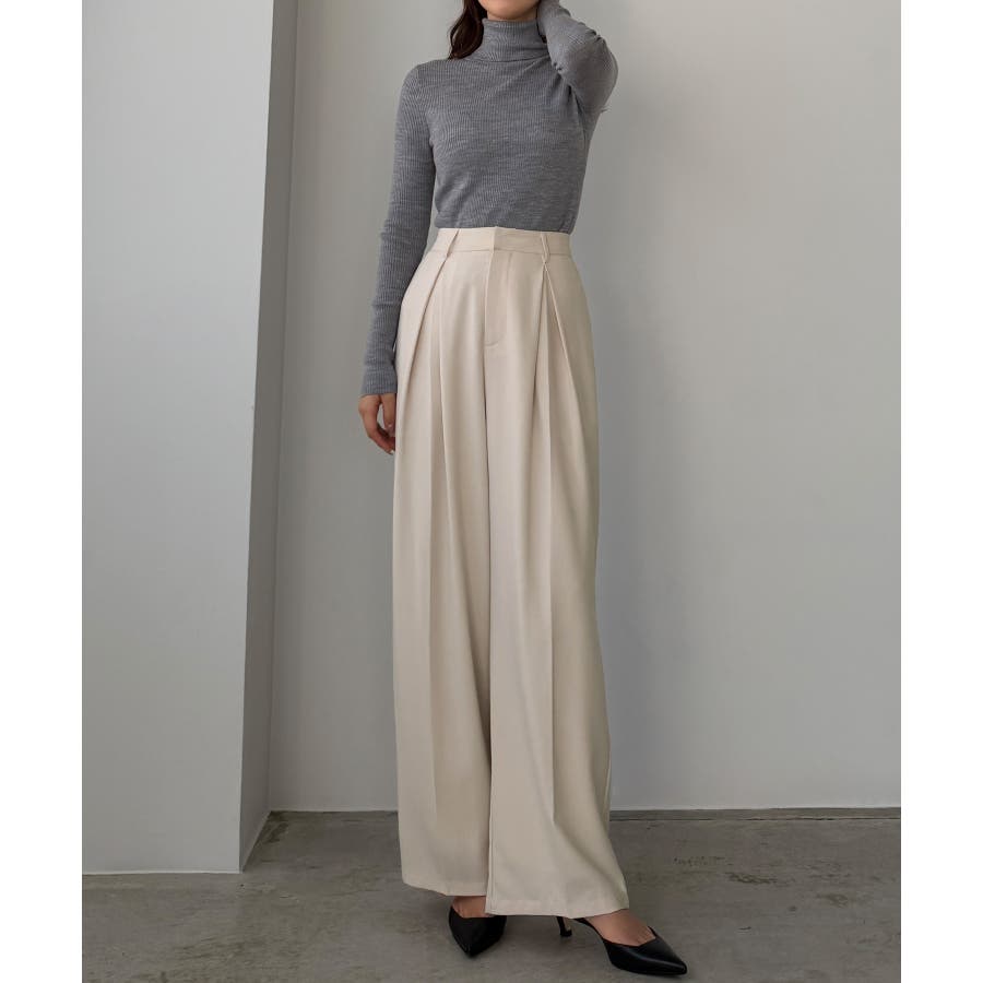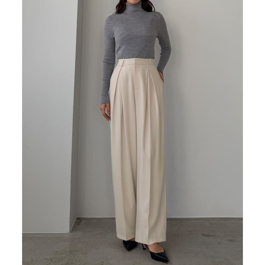 Louere 薄手とろみ生地センタータックワイドパンツ