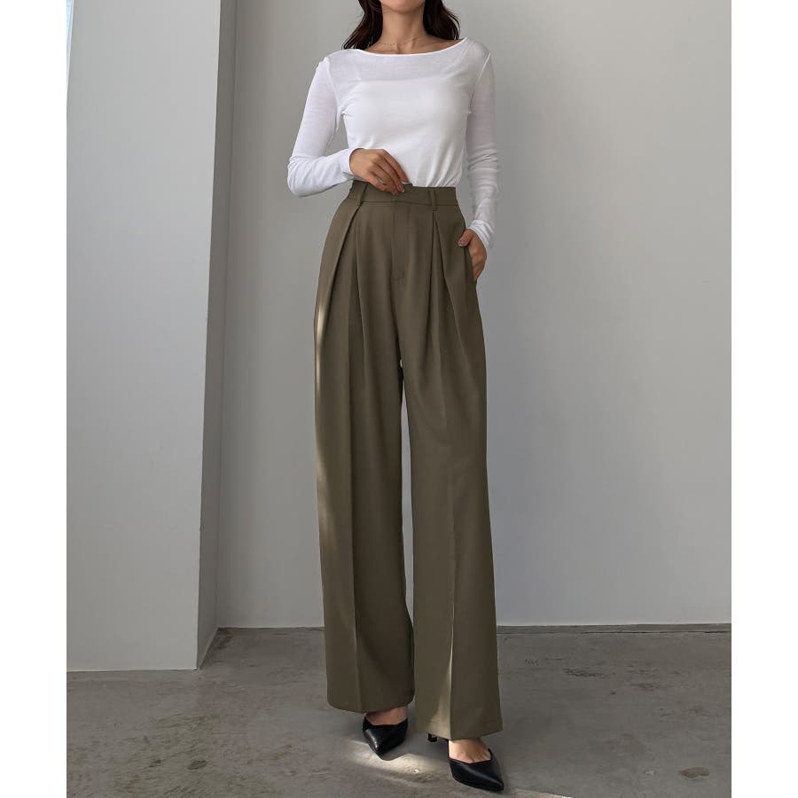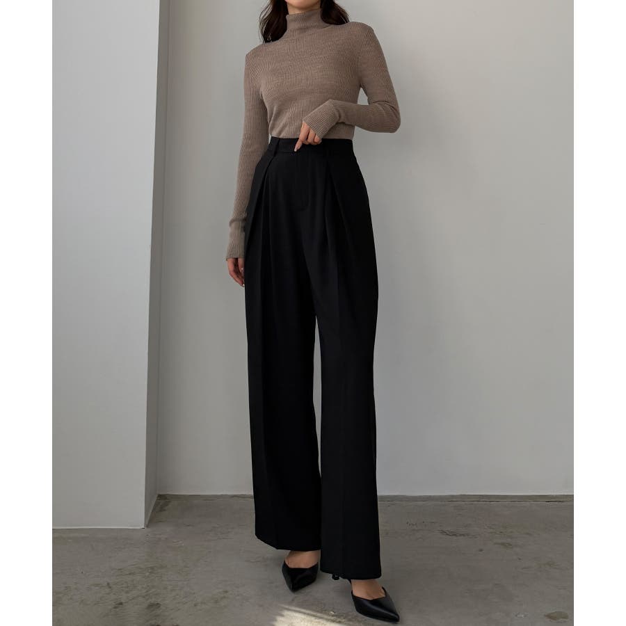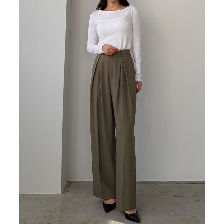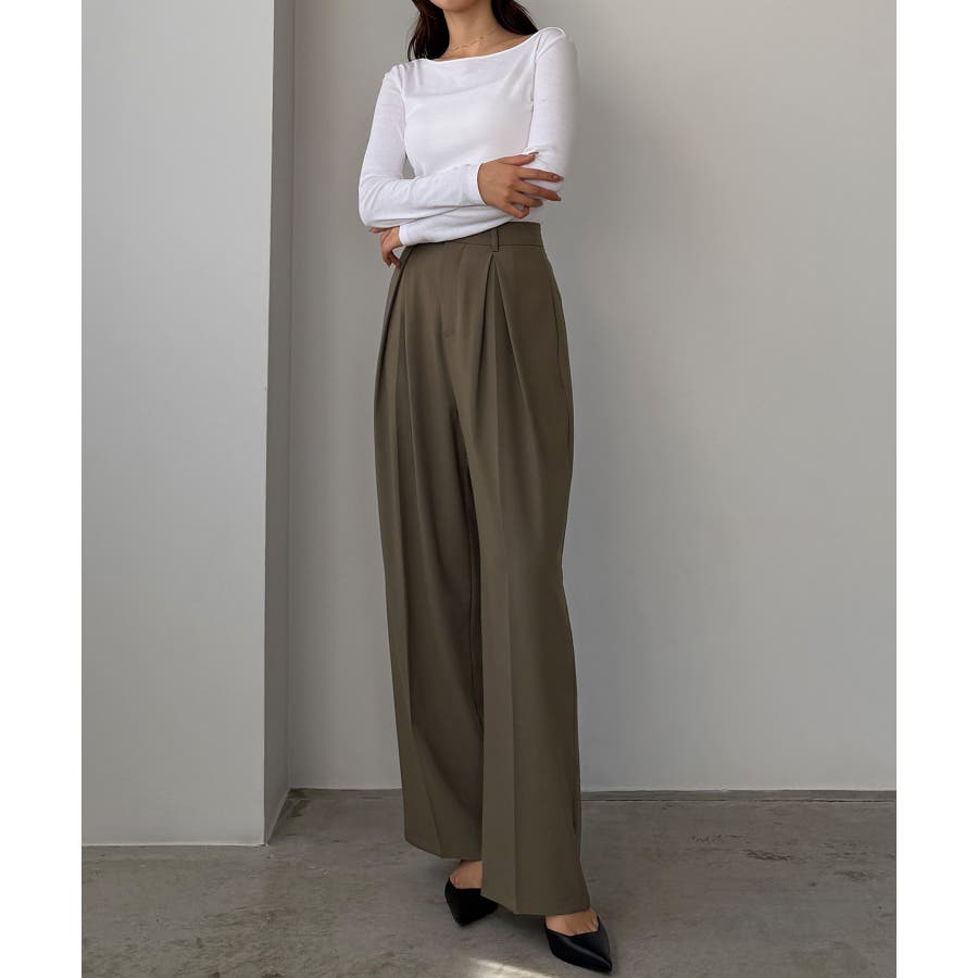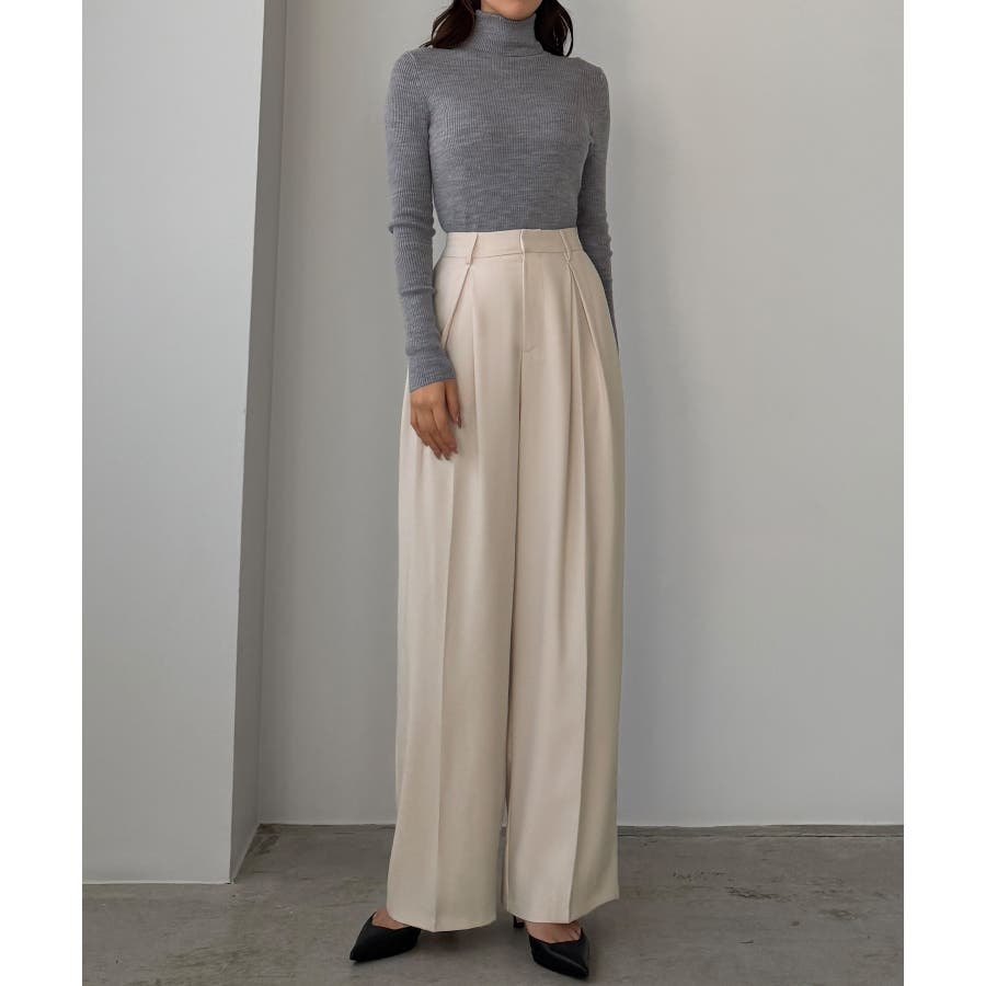 Louere 薄手とろみ生地センタータックワイドパンツ