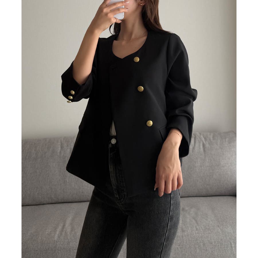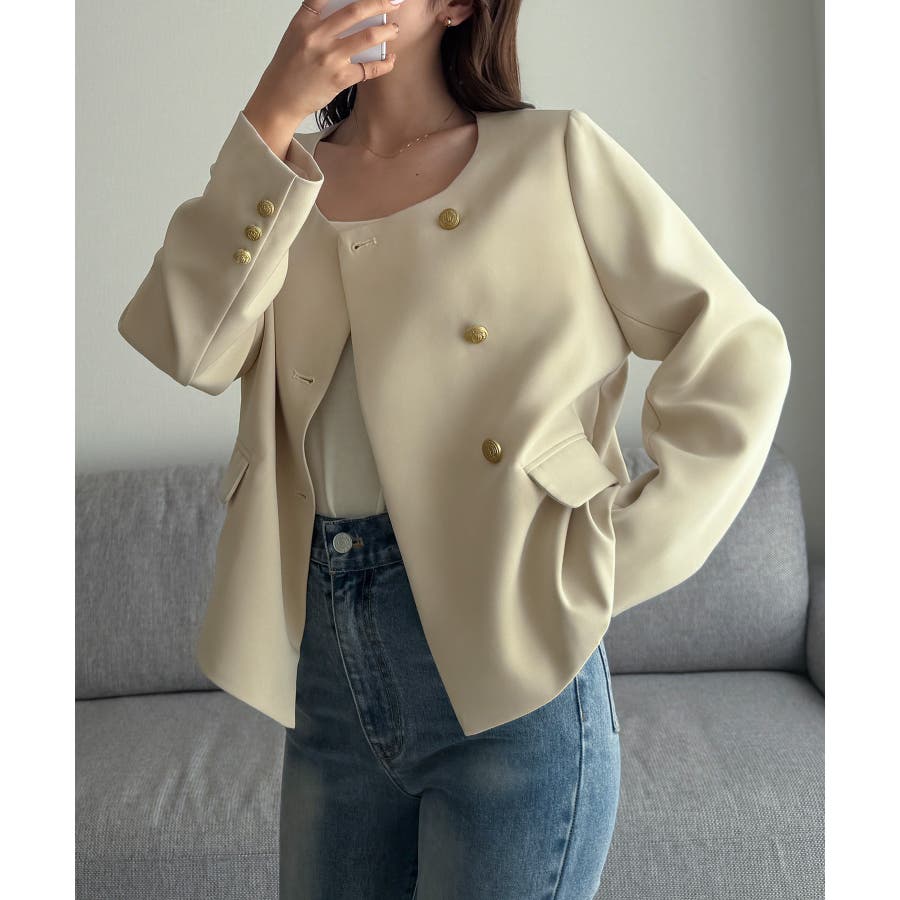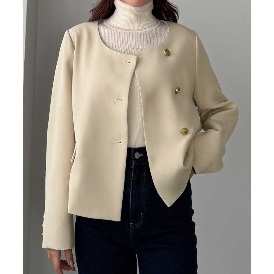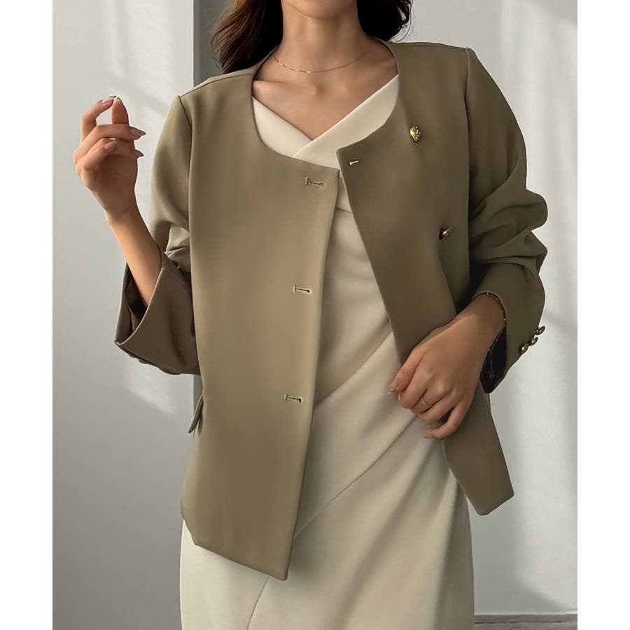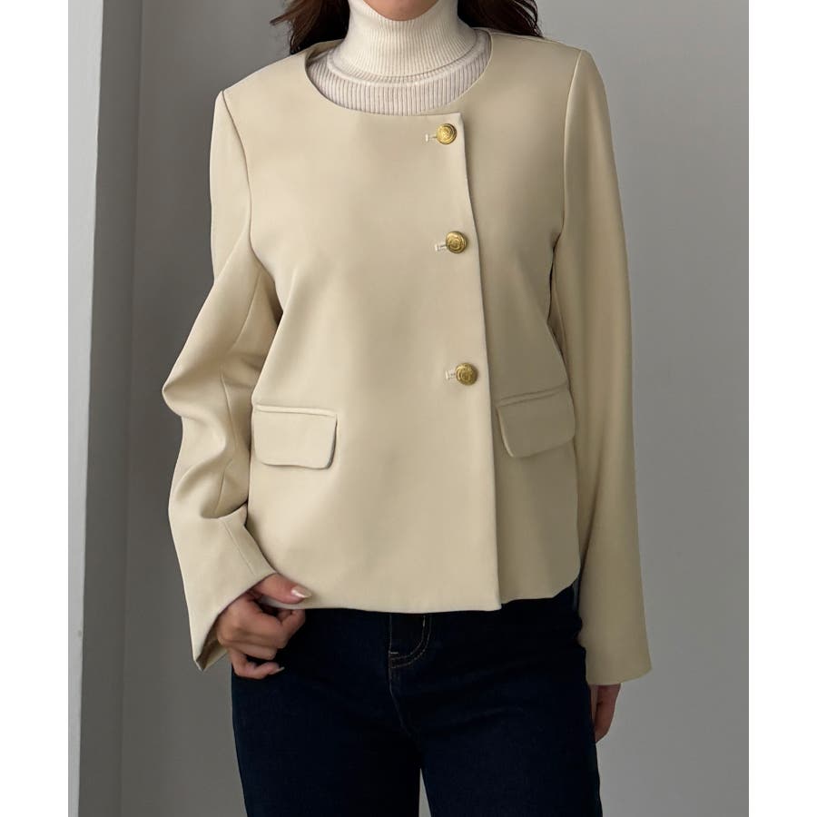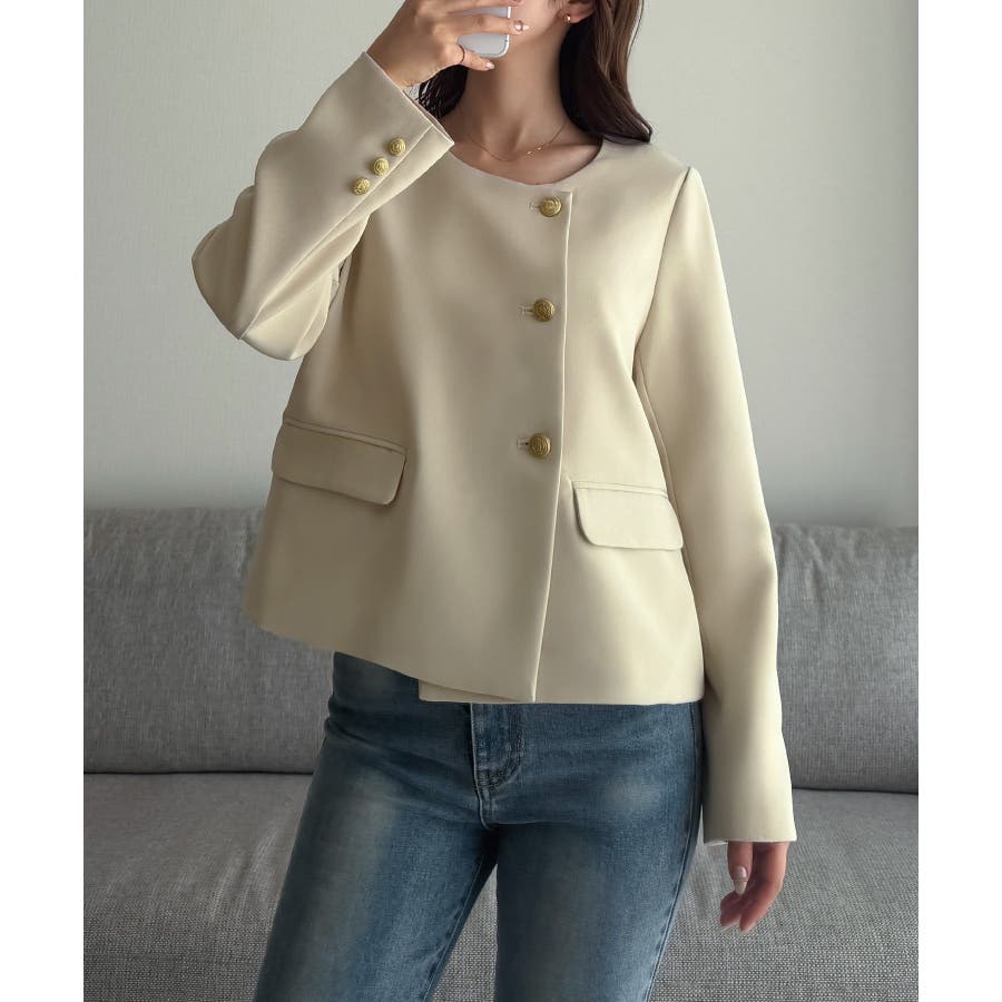 Louere ノーカラーゴールドボタンジャケット