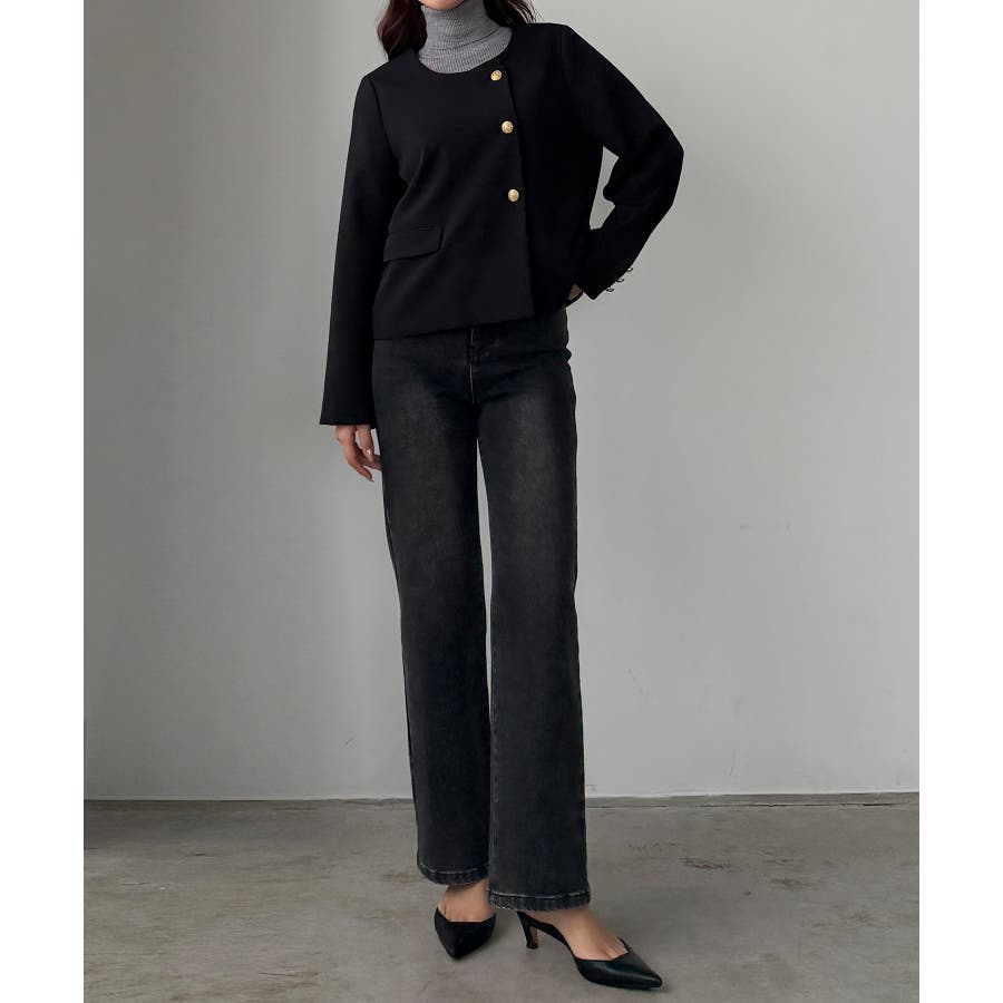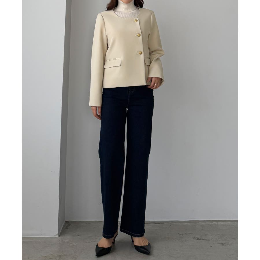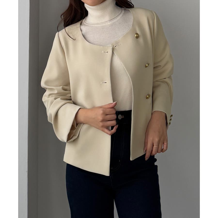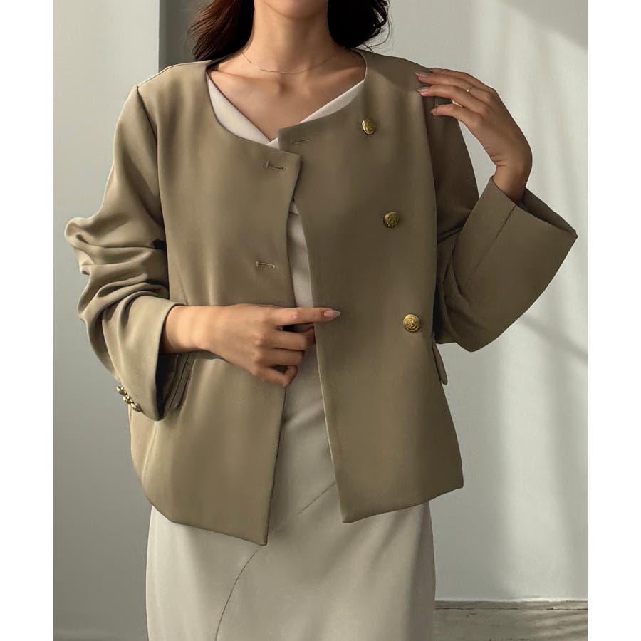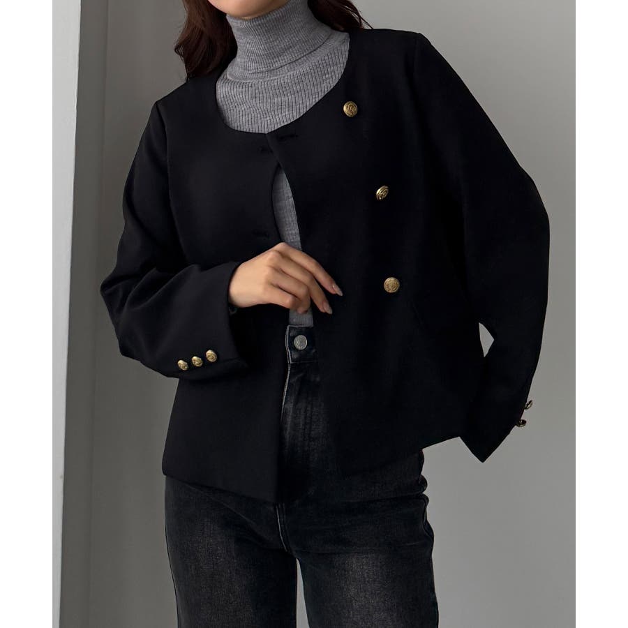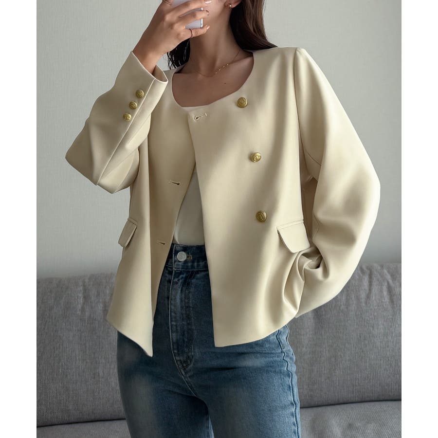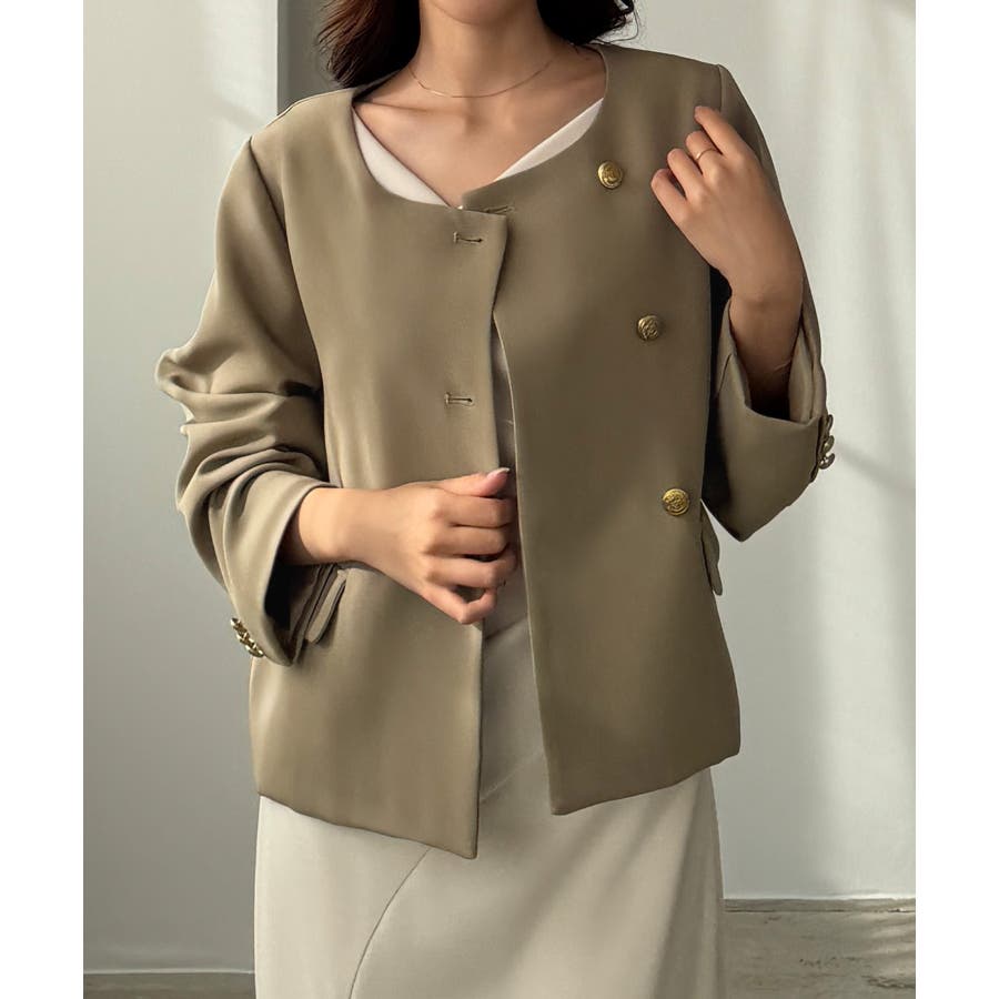Louere ノーカラーゴールドボタンジャケット