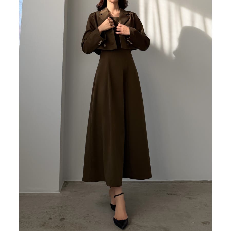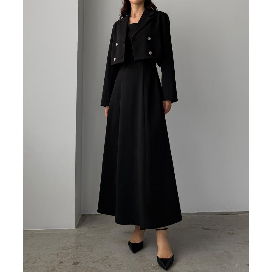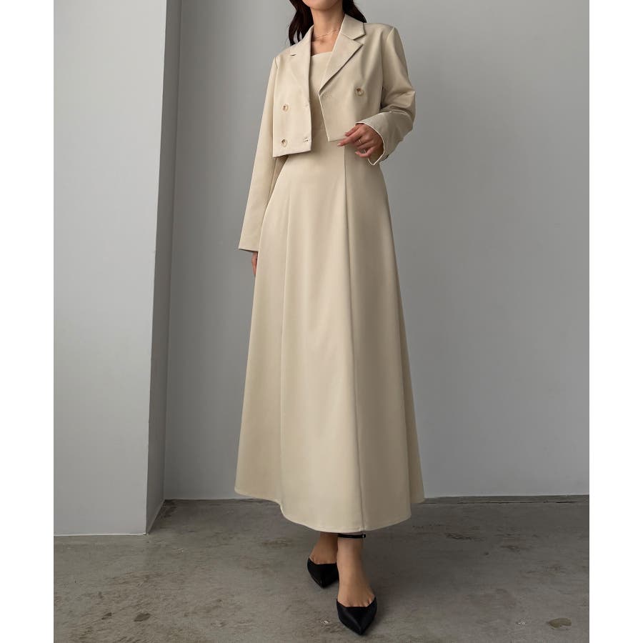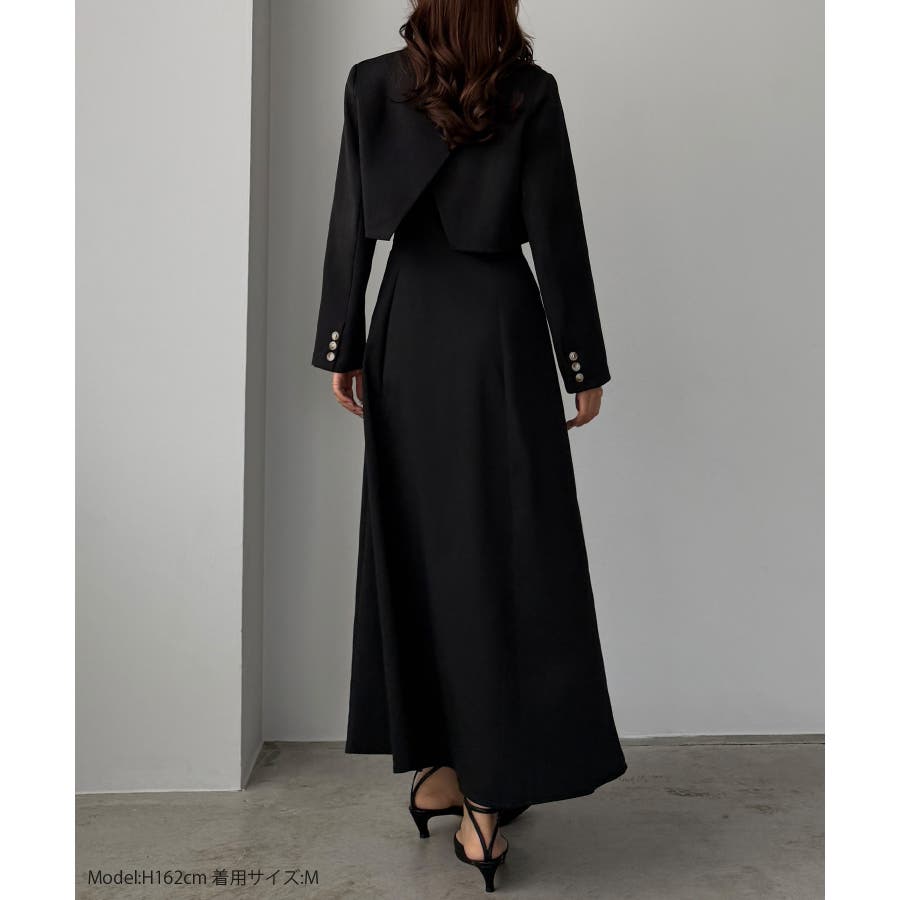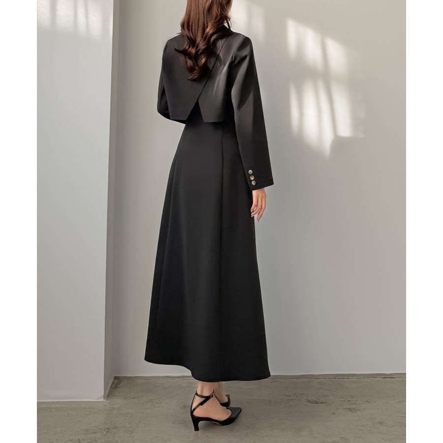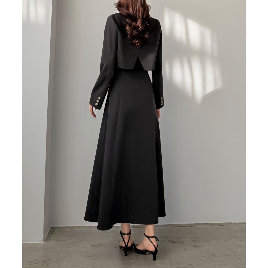 Louere バックスリットショートジャケットsetキャミフレアワンピース