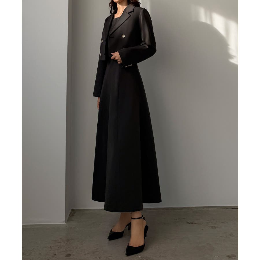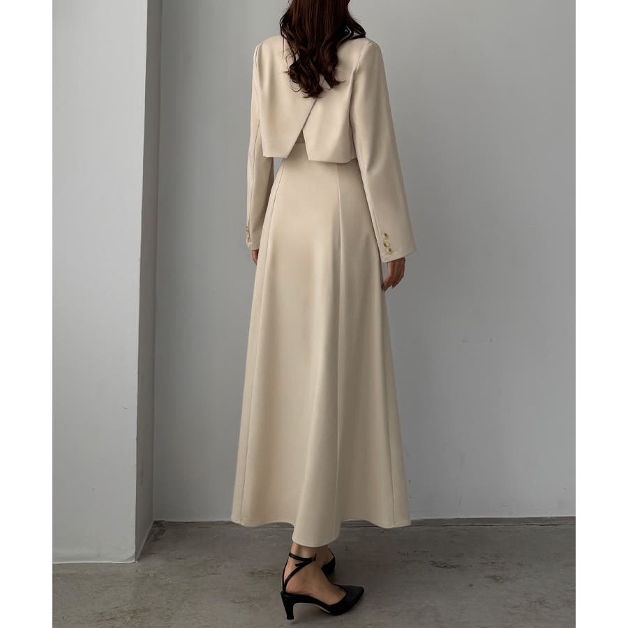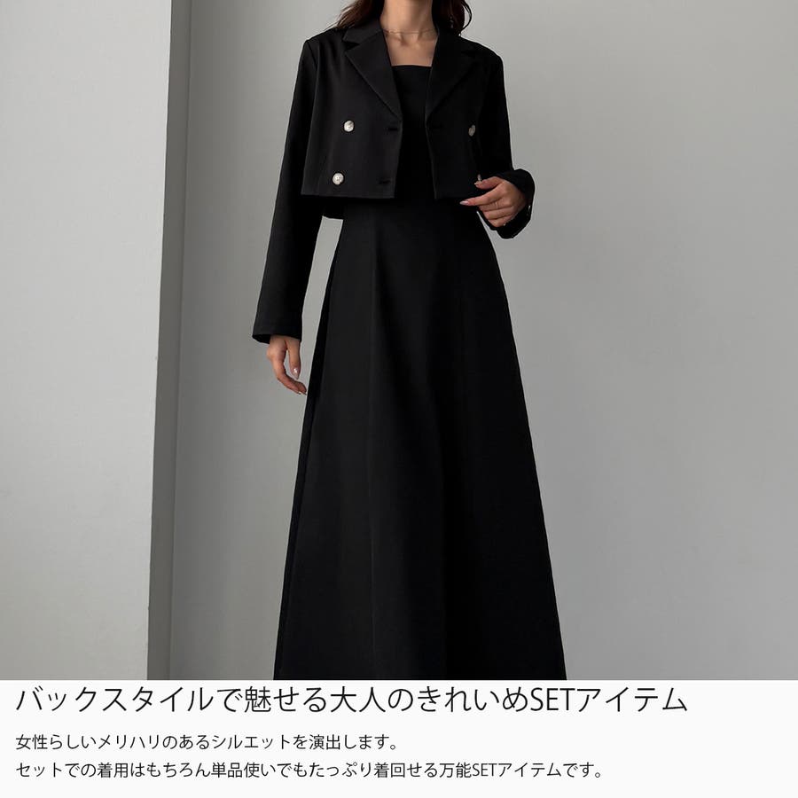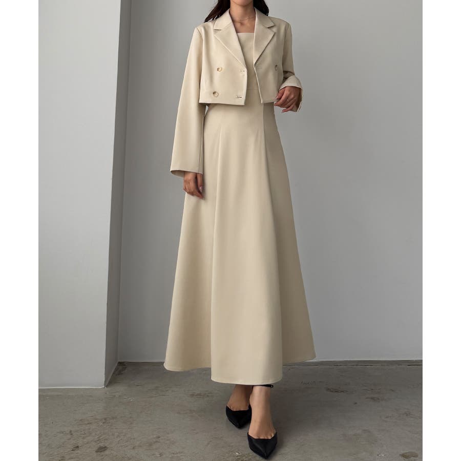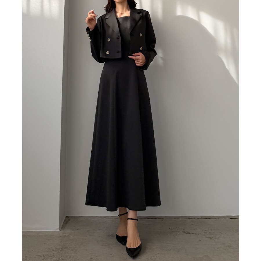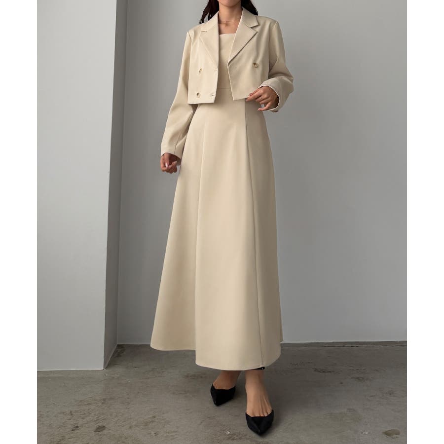 Louere バックスリットショートジャケットsetキャミフレアワンピース