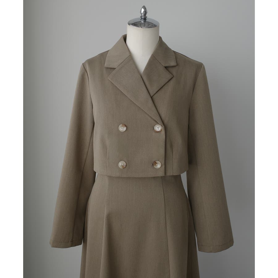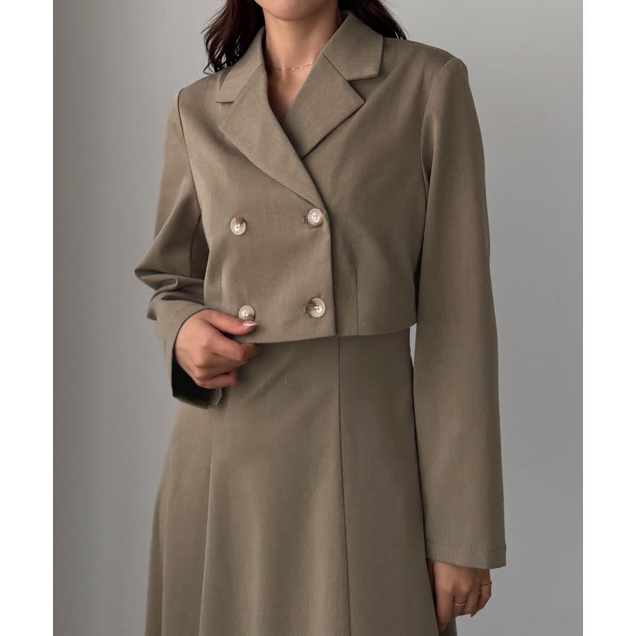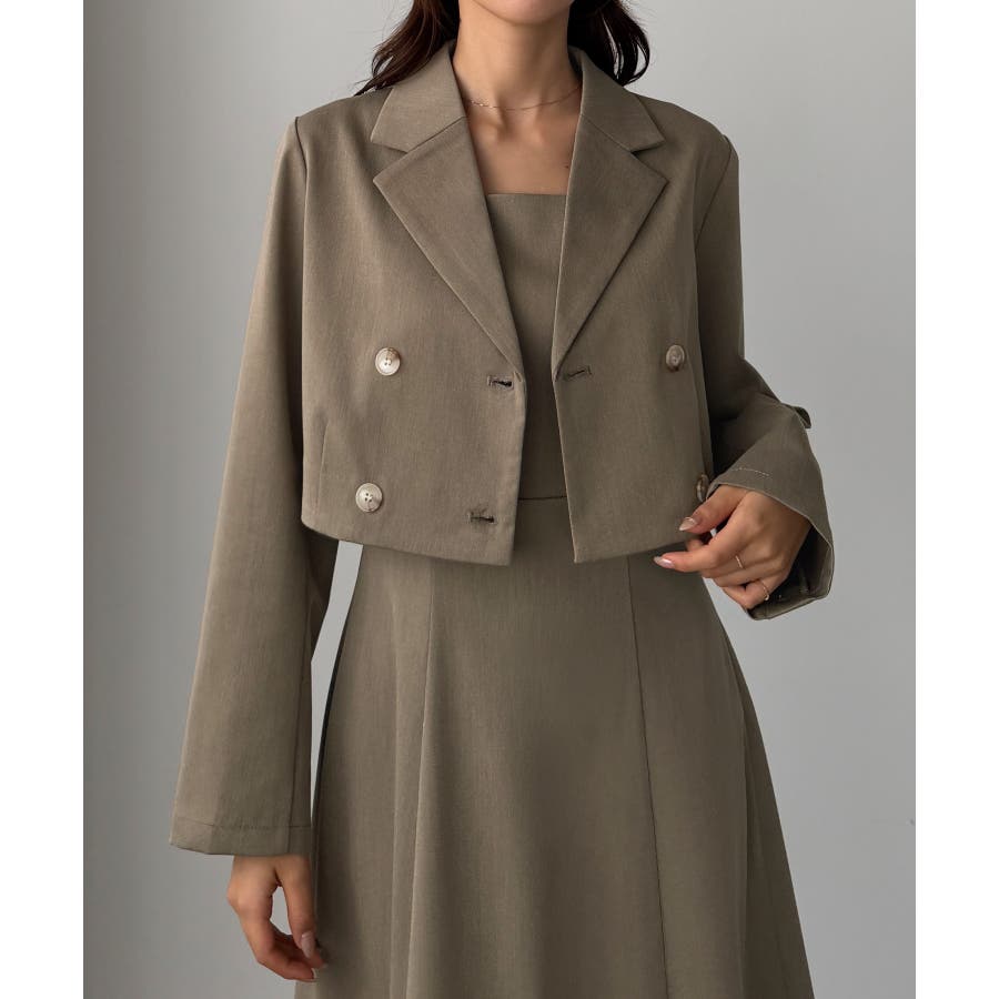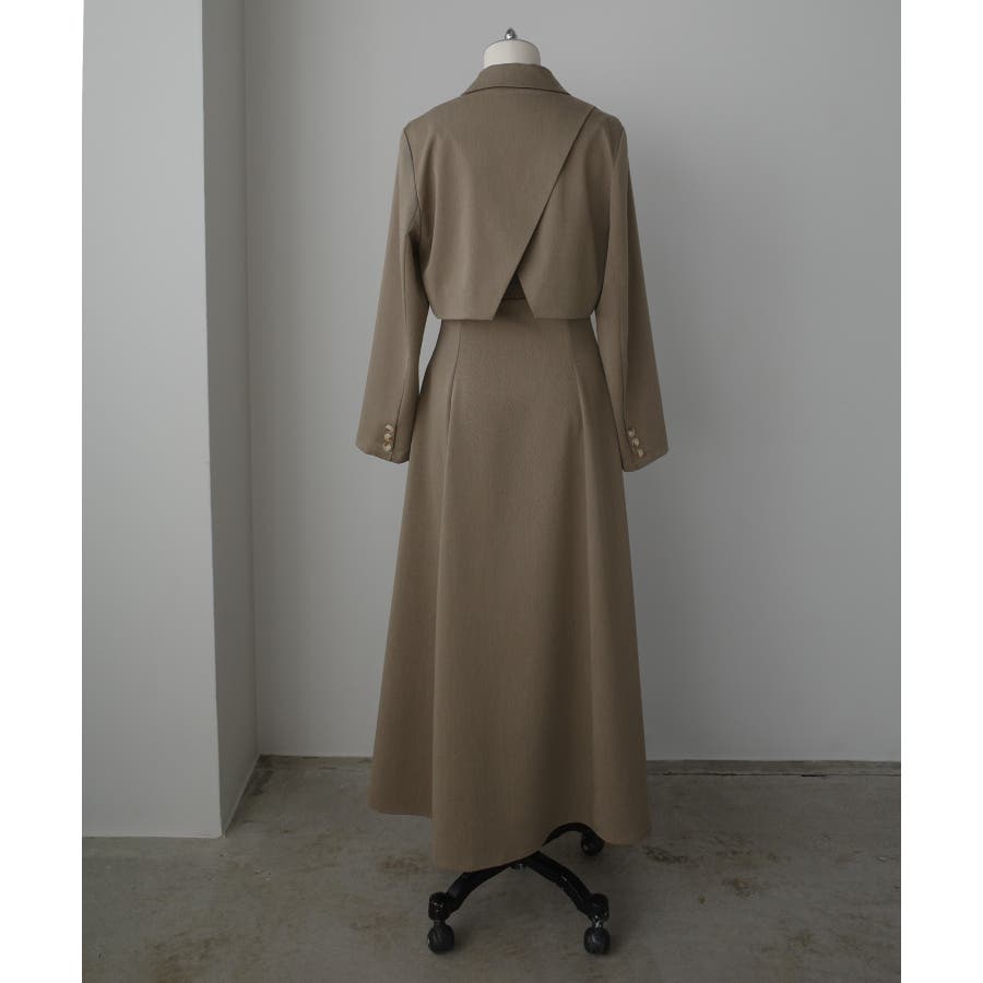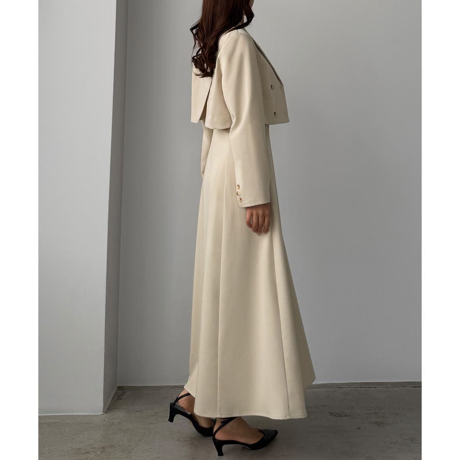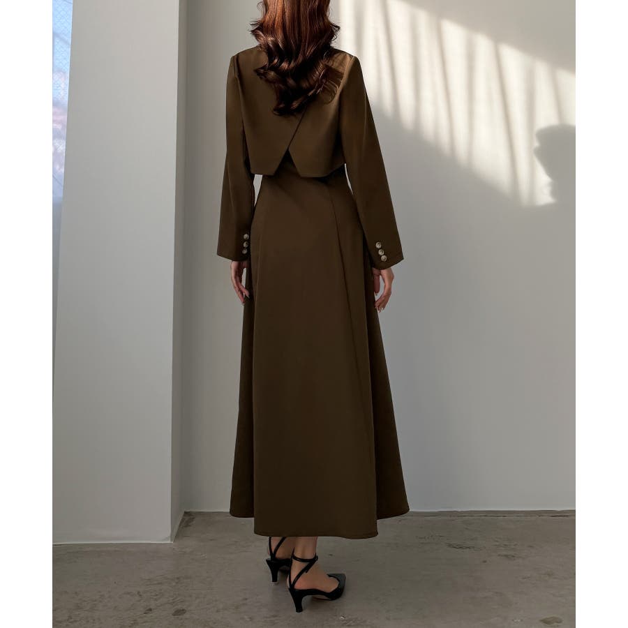Louere バックスリットショートジャケットsetキャミフレアワンピース