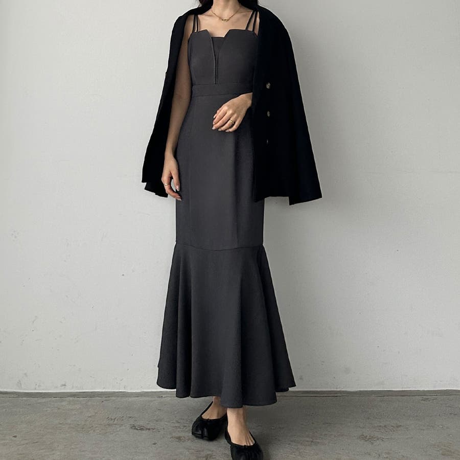 ストラップで調整できるので引きずることもなく、綺麗なシルエットでスタイルが良く見えます。