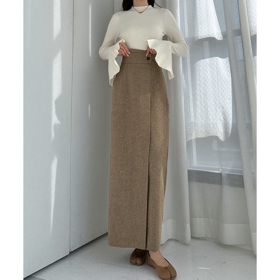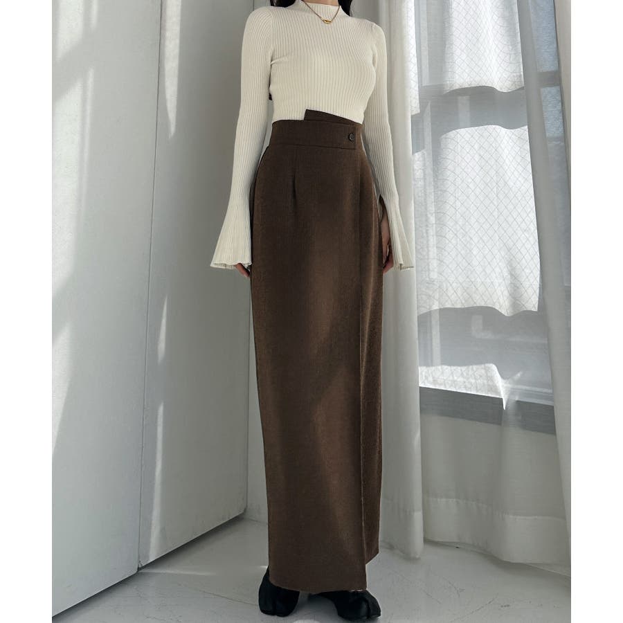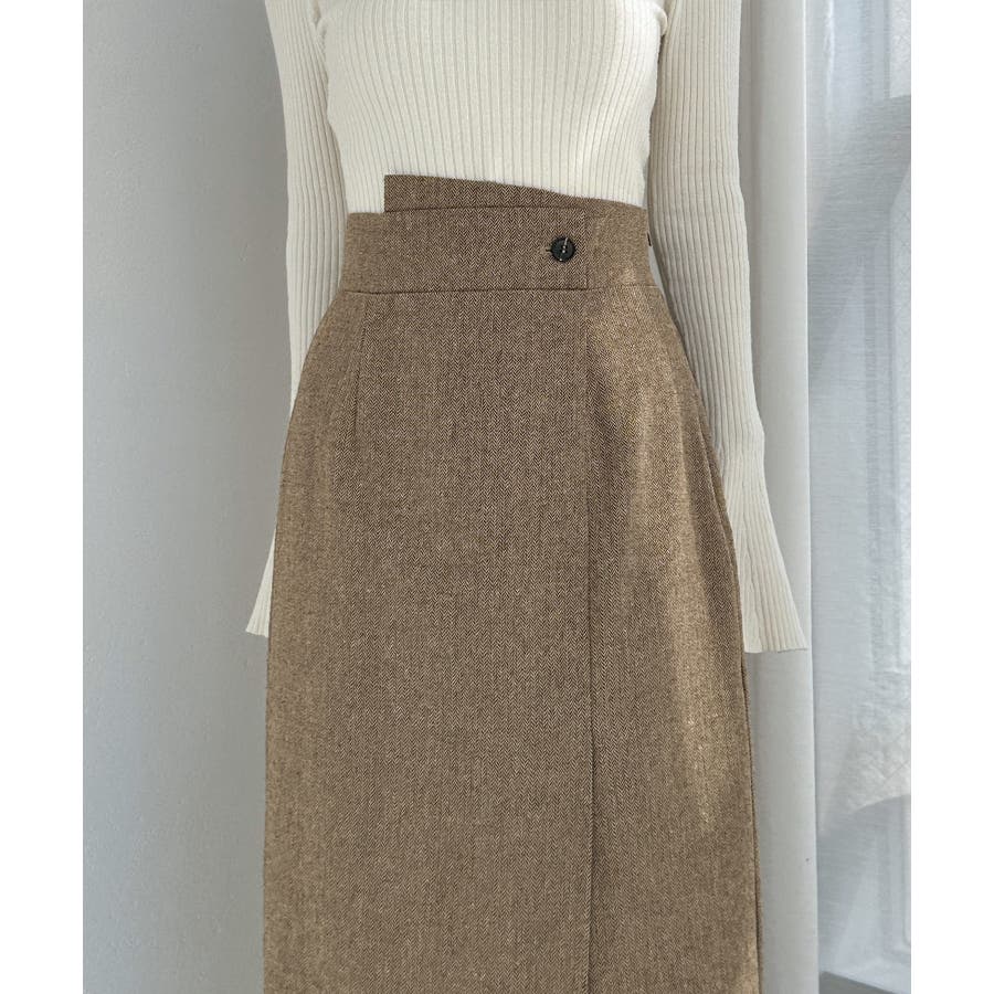 Louere 裏起毛ヘリンボーンタイトラップ風スカート