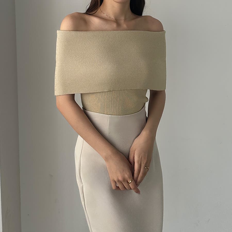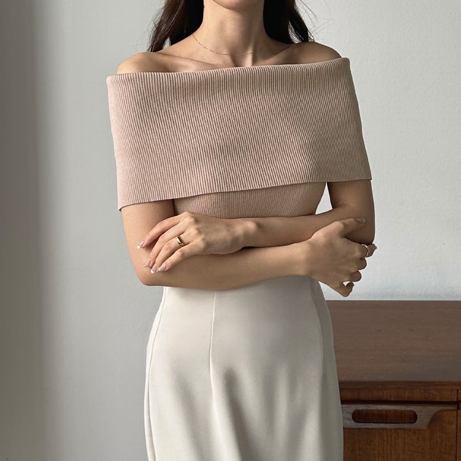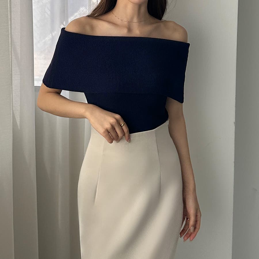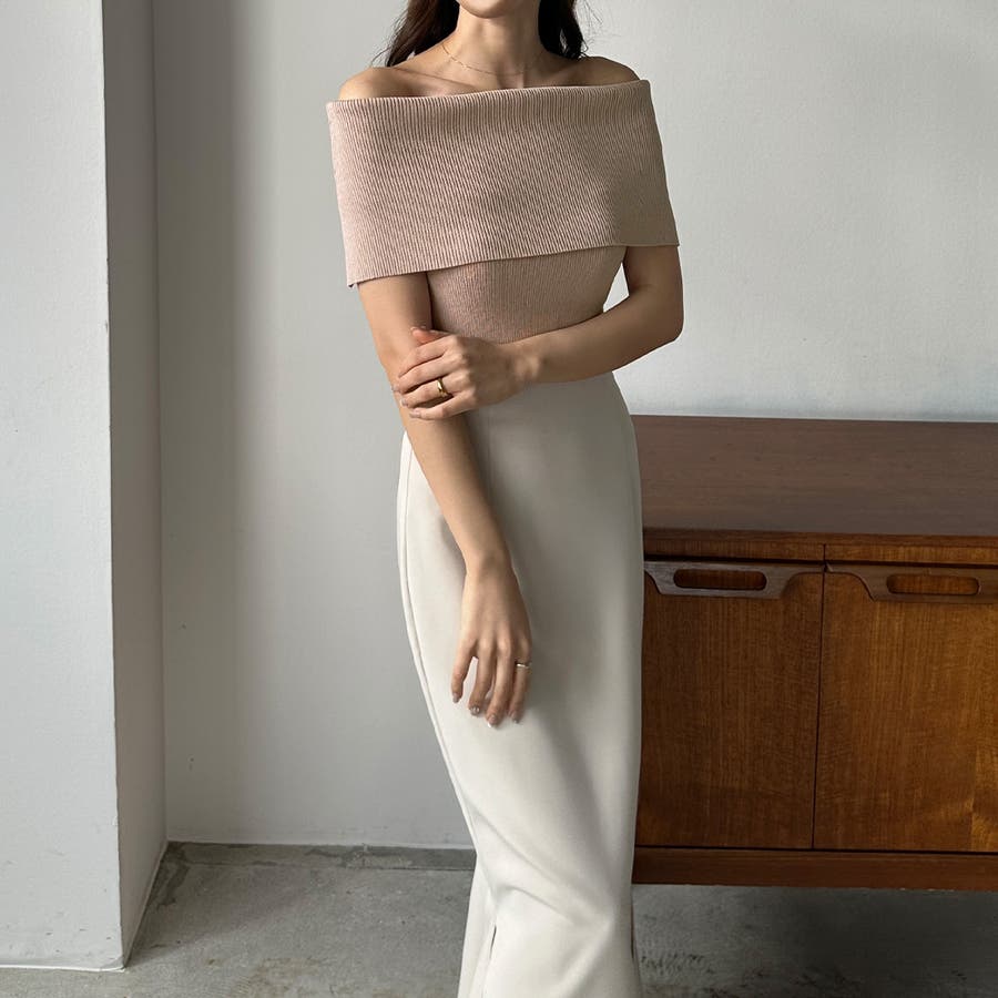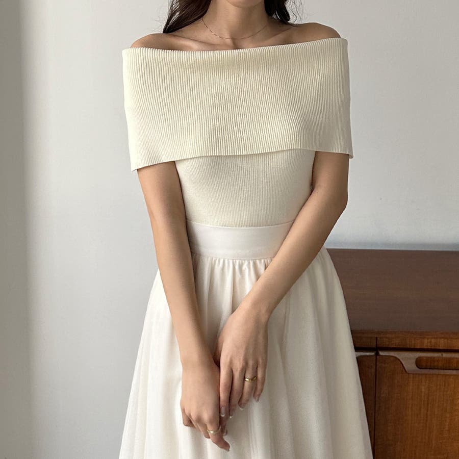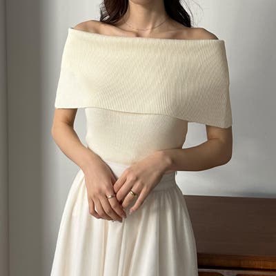 毛玉にもなりにくく何にでも合わせやすい。オフショルでも上品