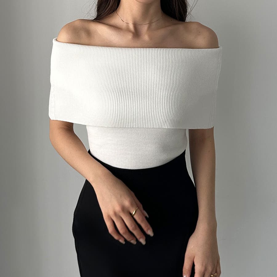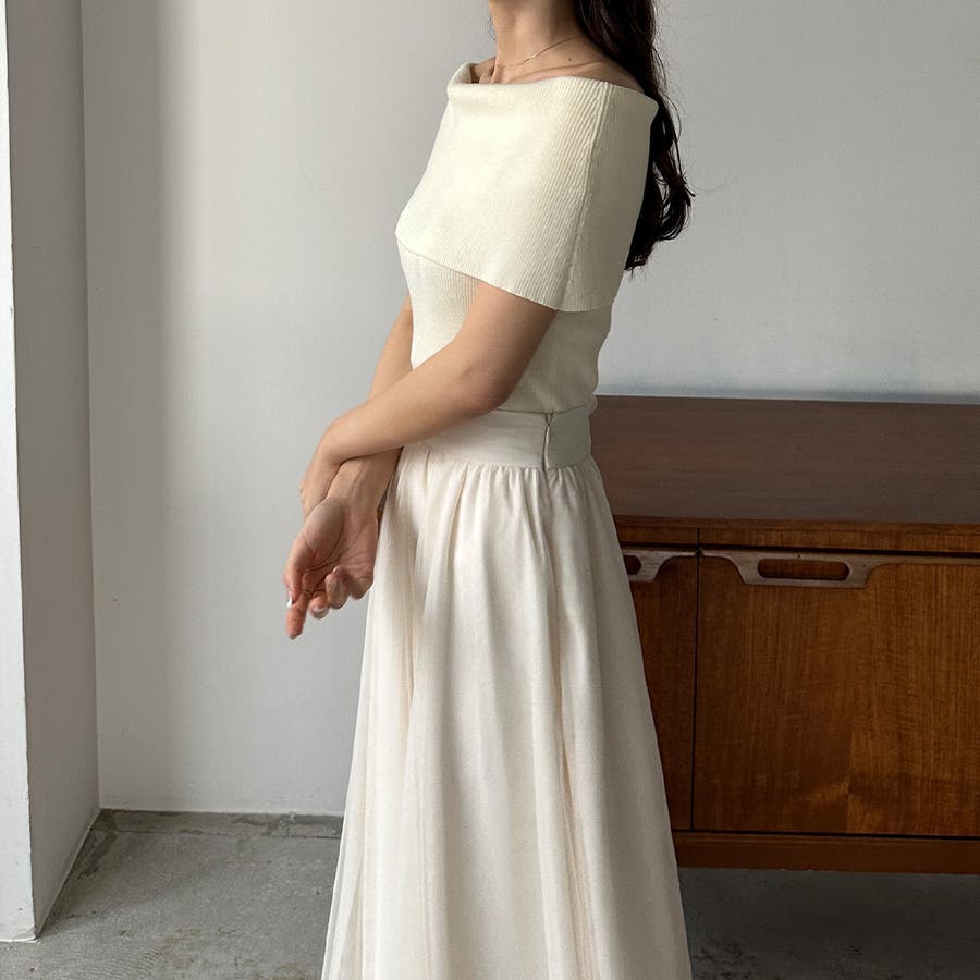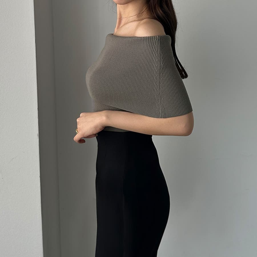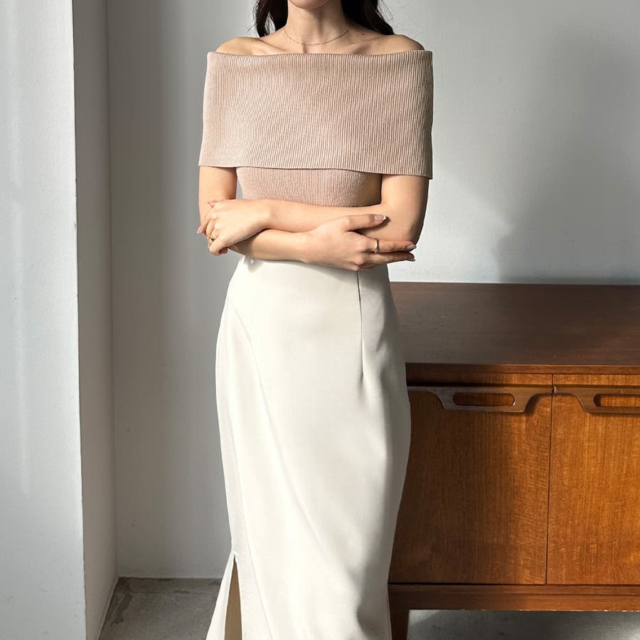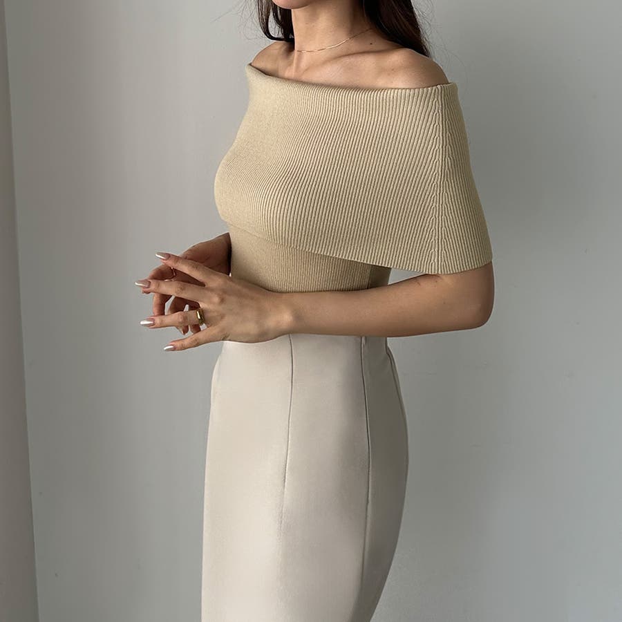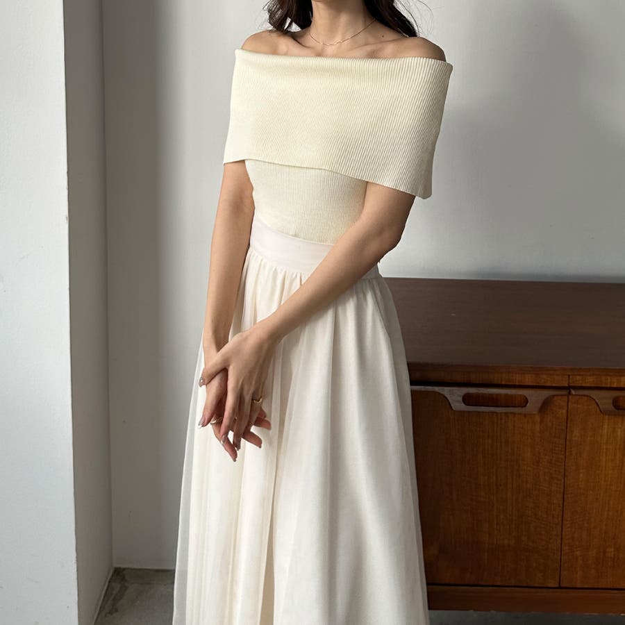 毛玉にもなりにくく何にでも合わせやすい。オフショルでも上品