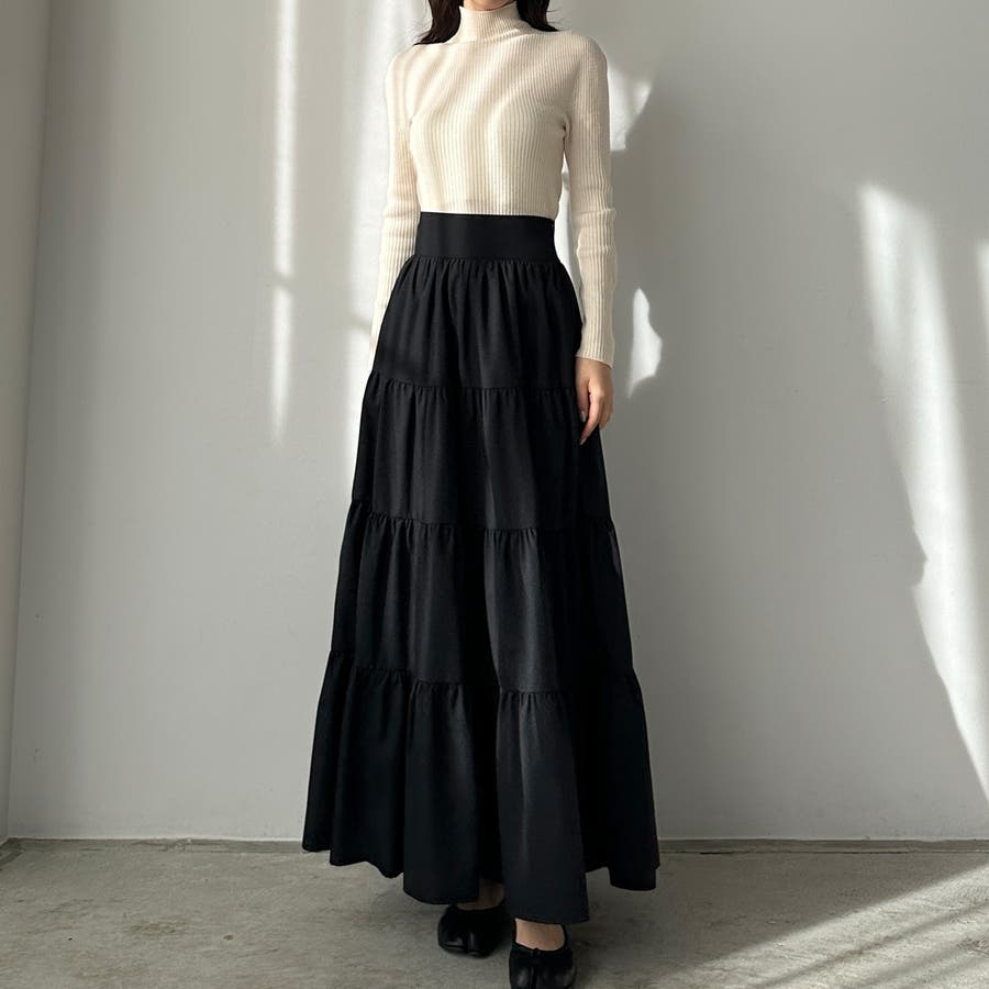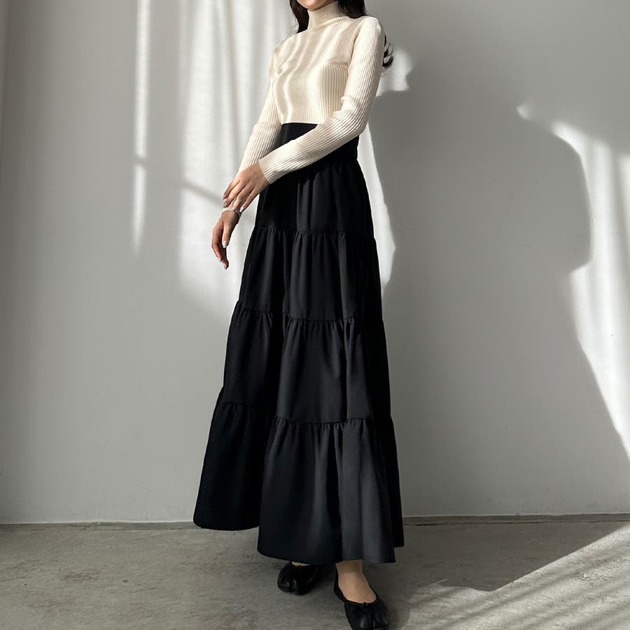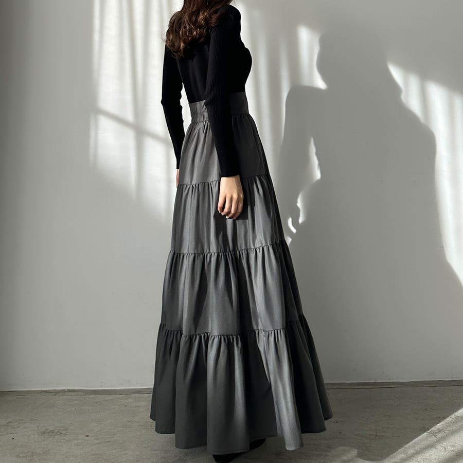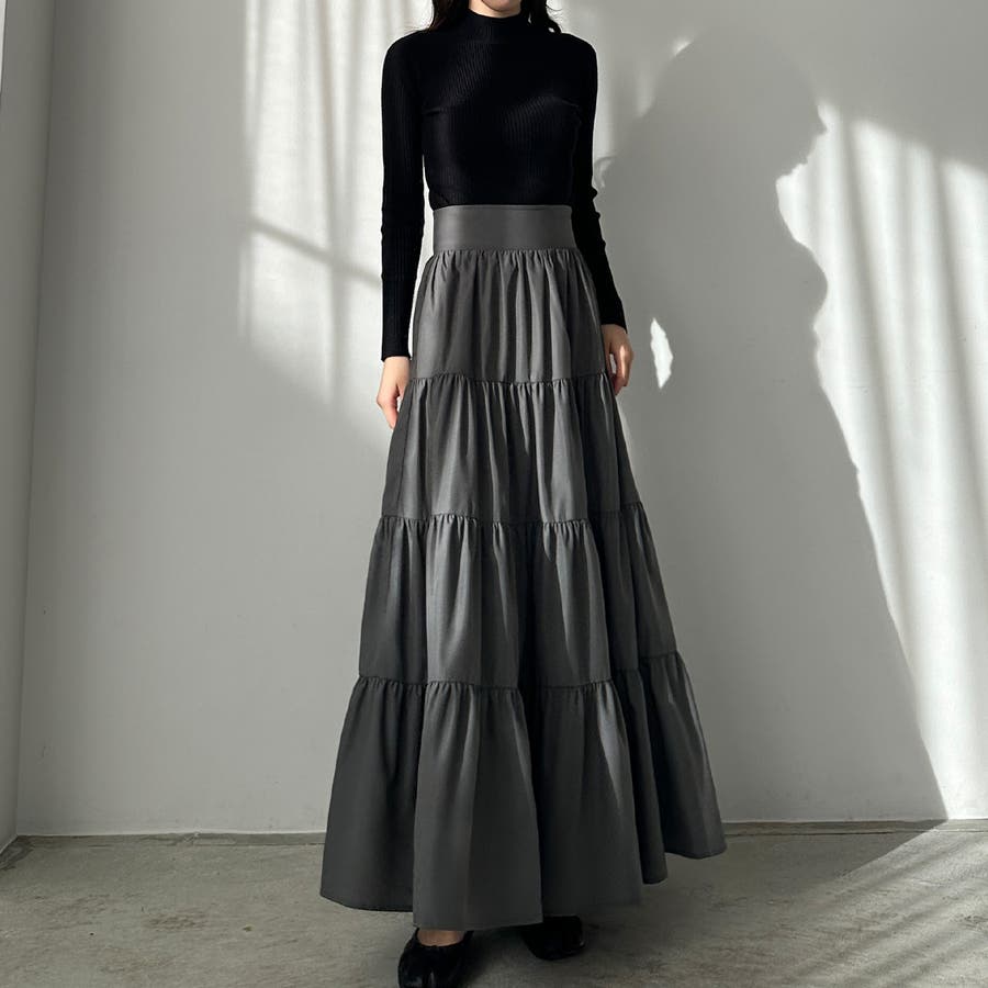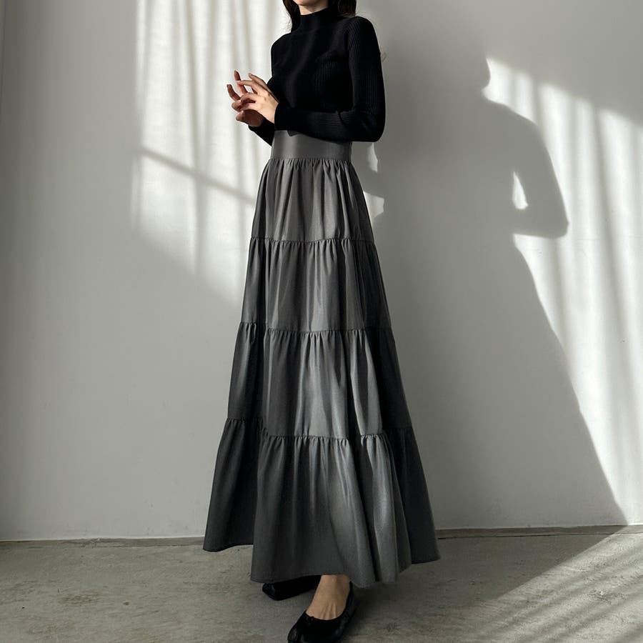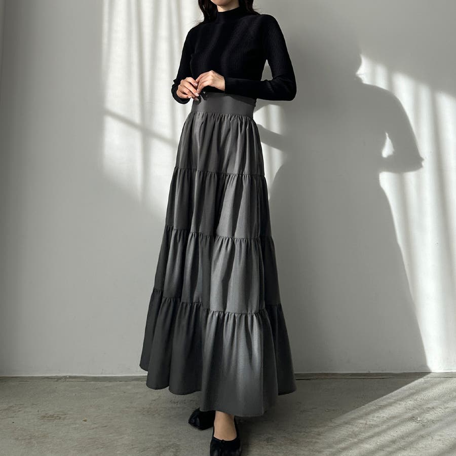 【ダークグレー】Louere ハイウエストティアードフレアスカート