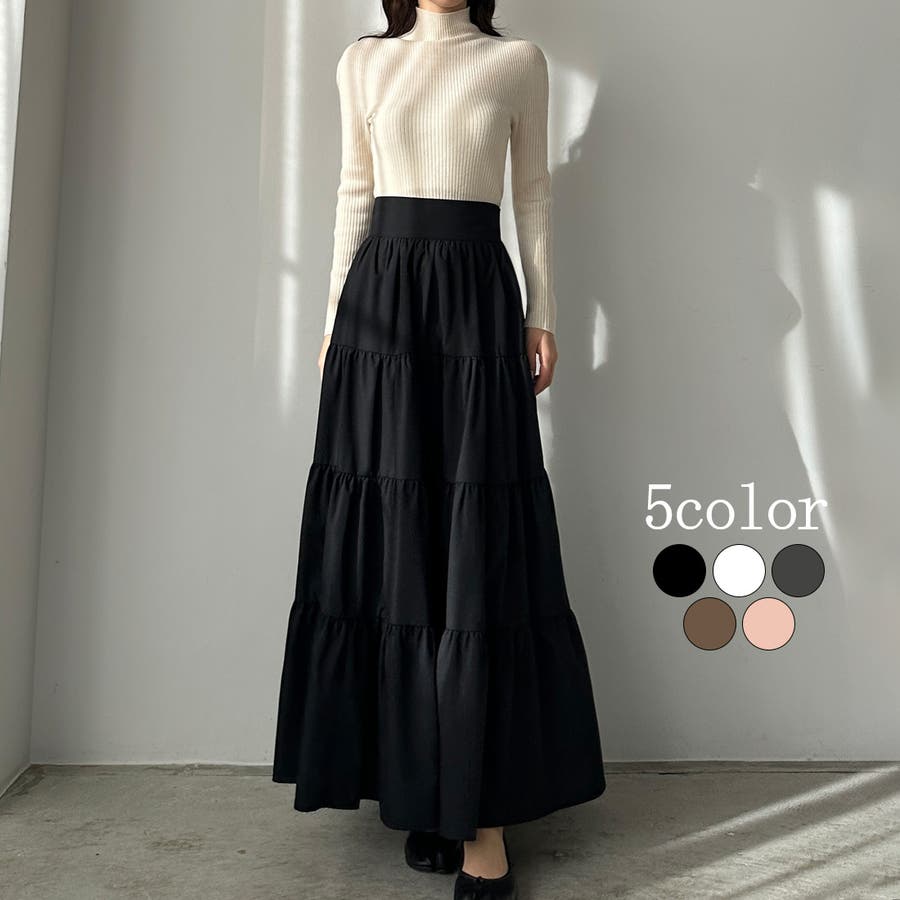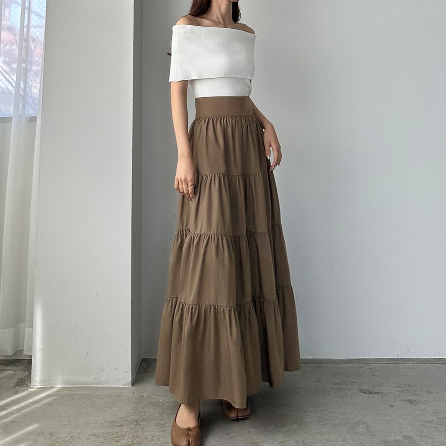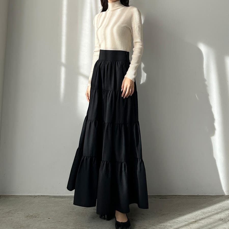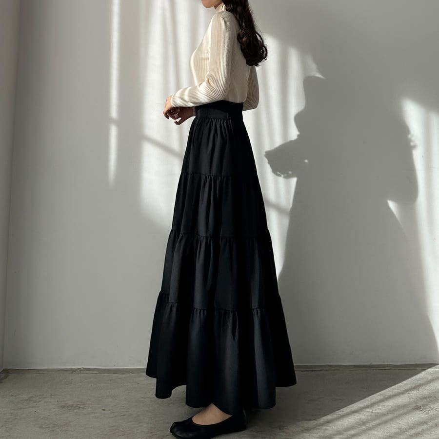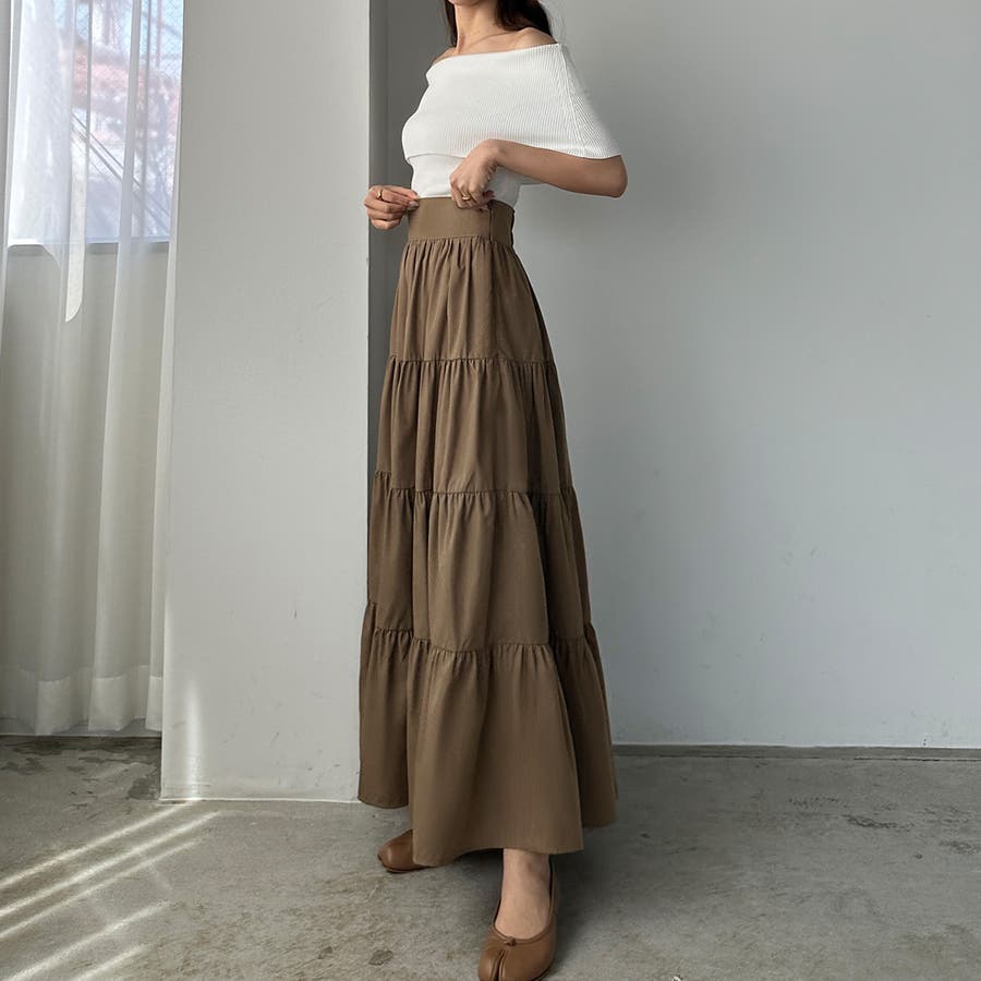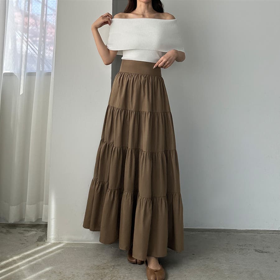 【ダークグレー】Louere ハイウエストティアードフレアスカート