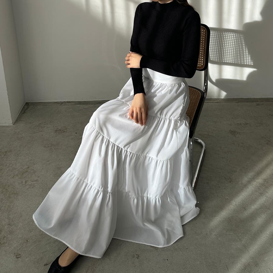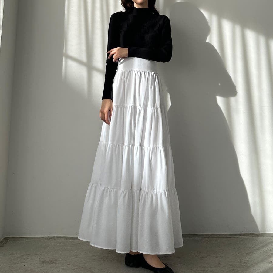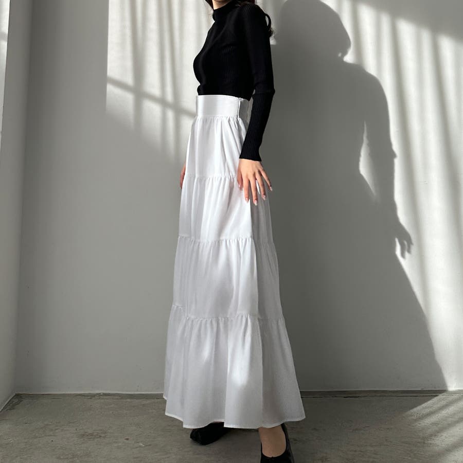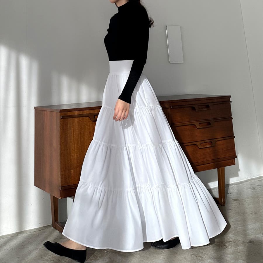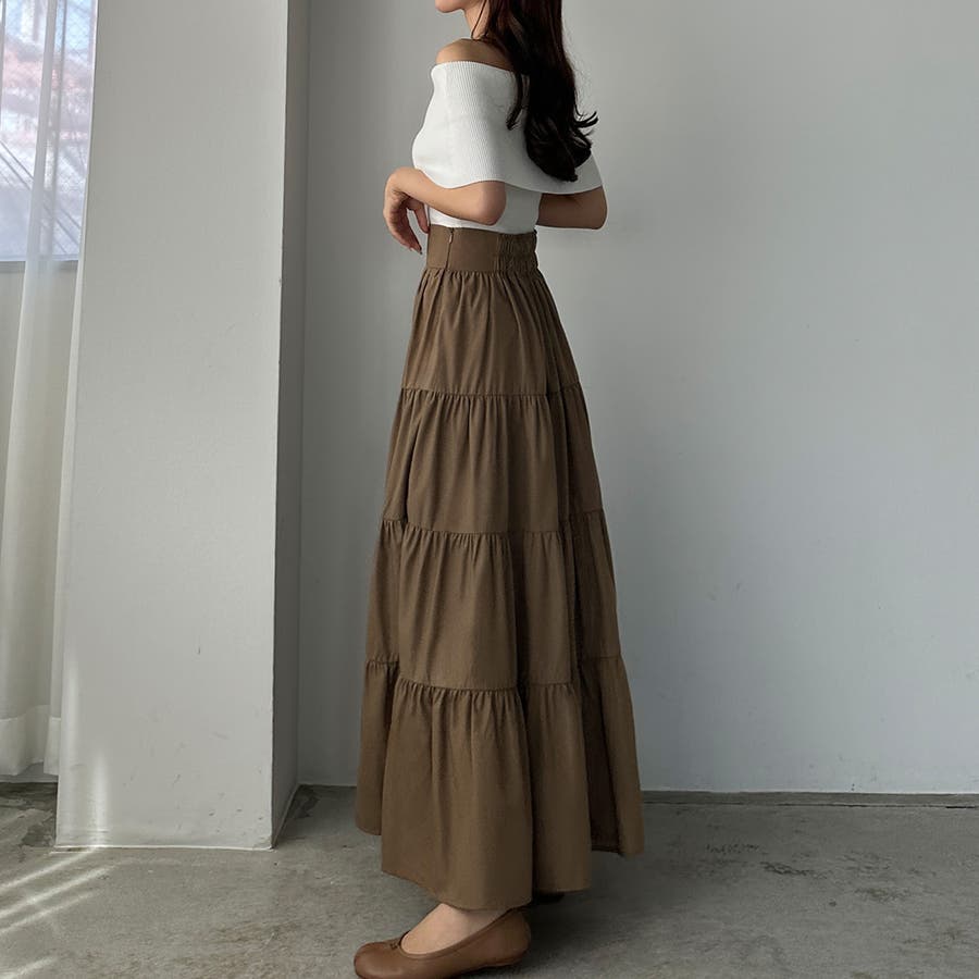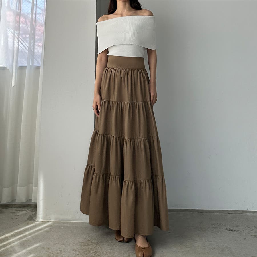 【ダークグレー】Louere ハイウエストティアードフレアスカート
