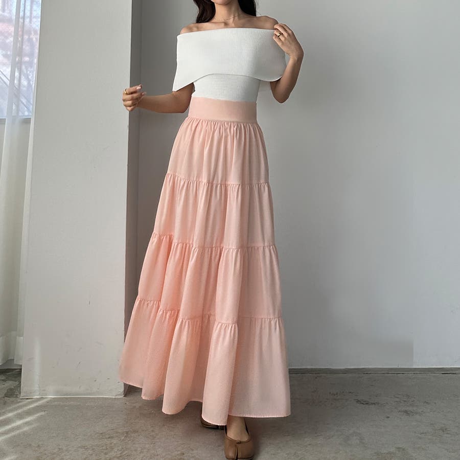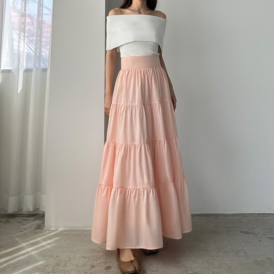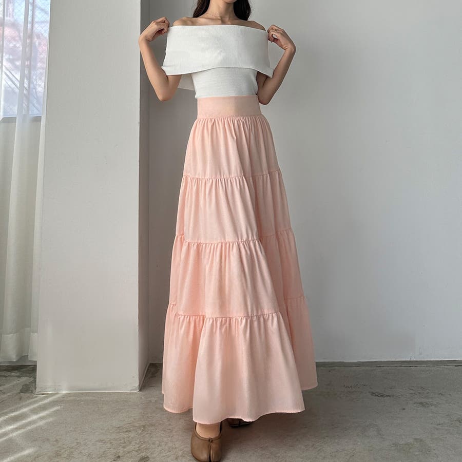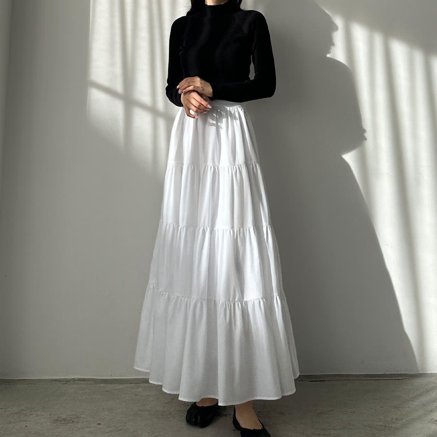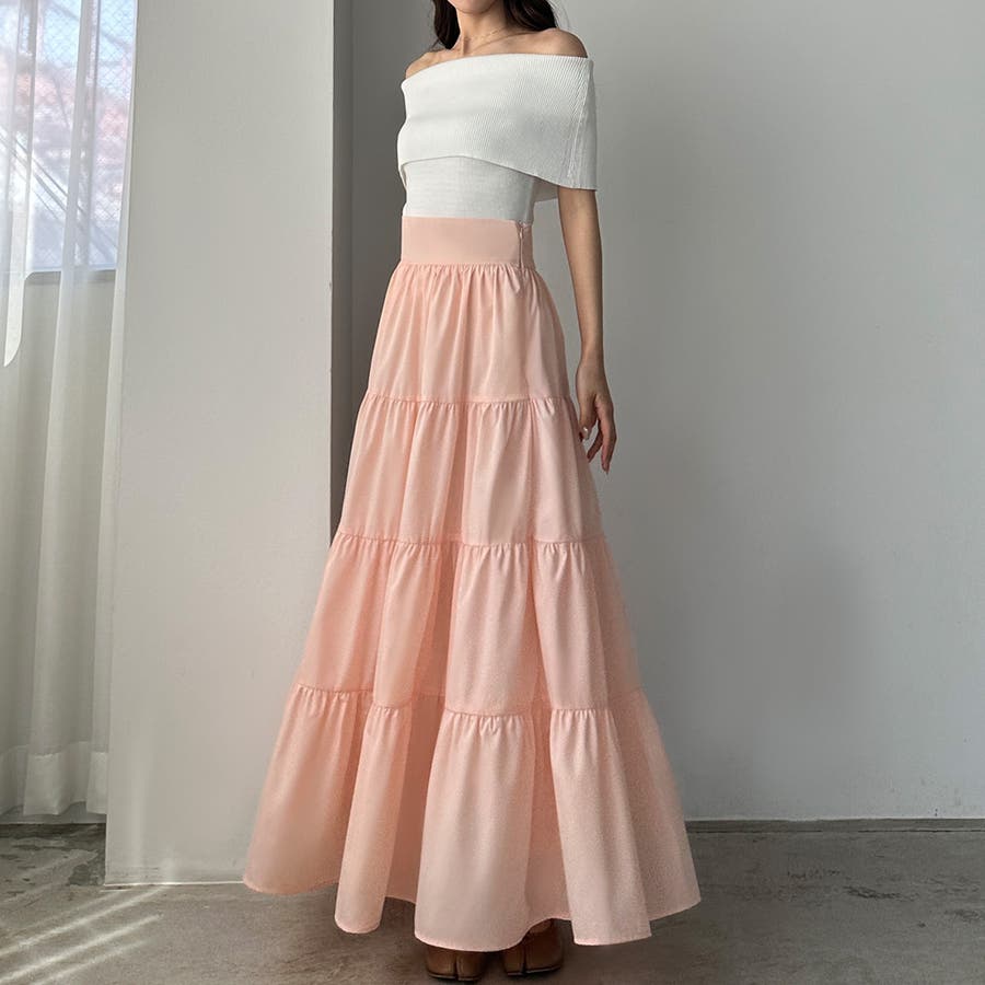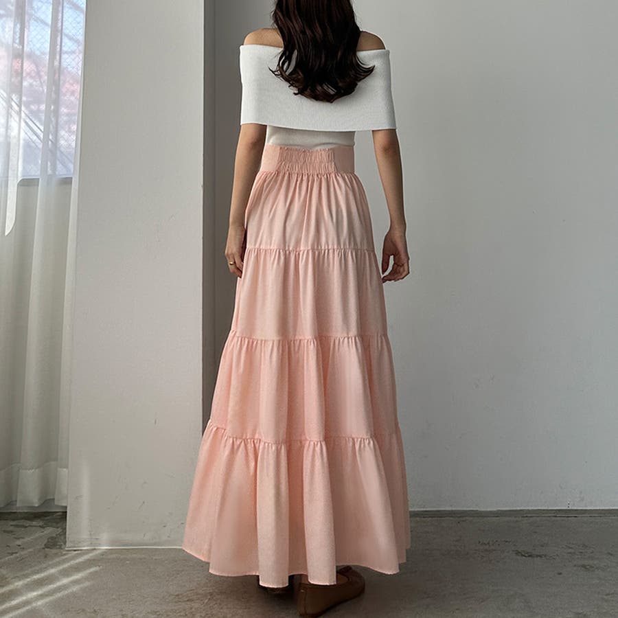 【ダークグレー】Louere ハイウエストティアードフレアスカート