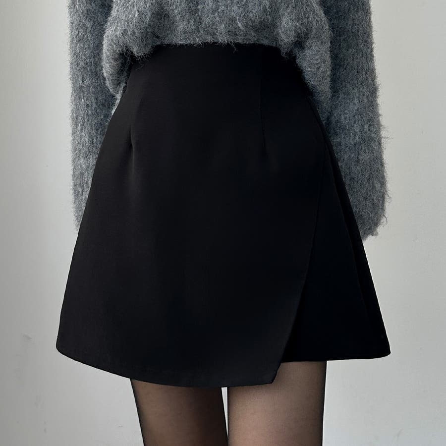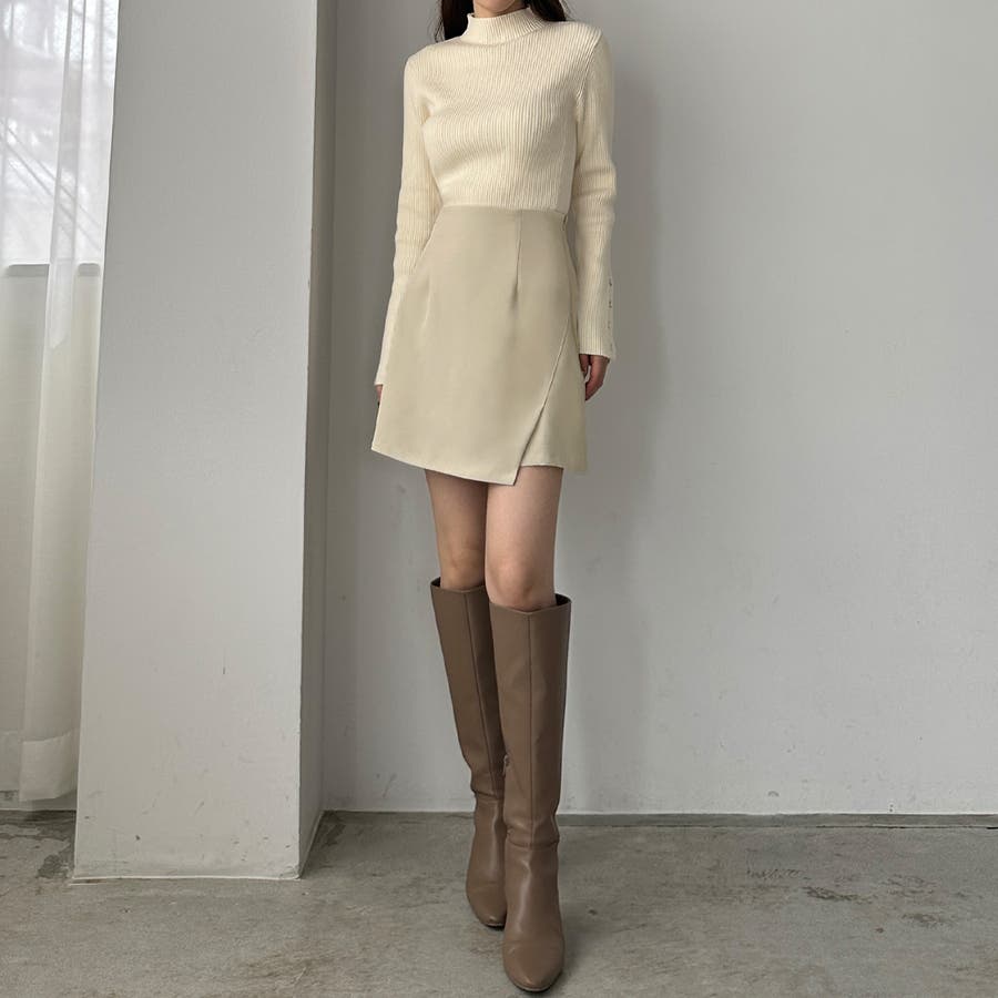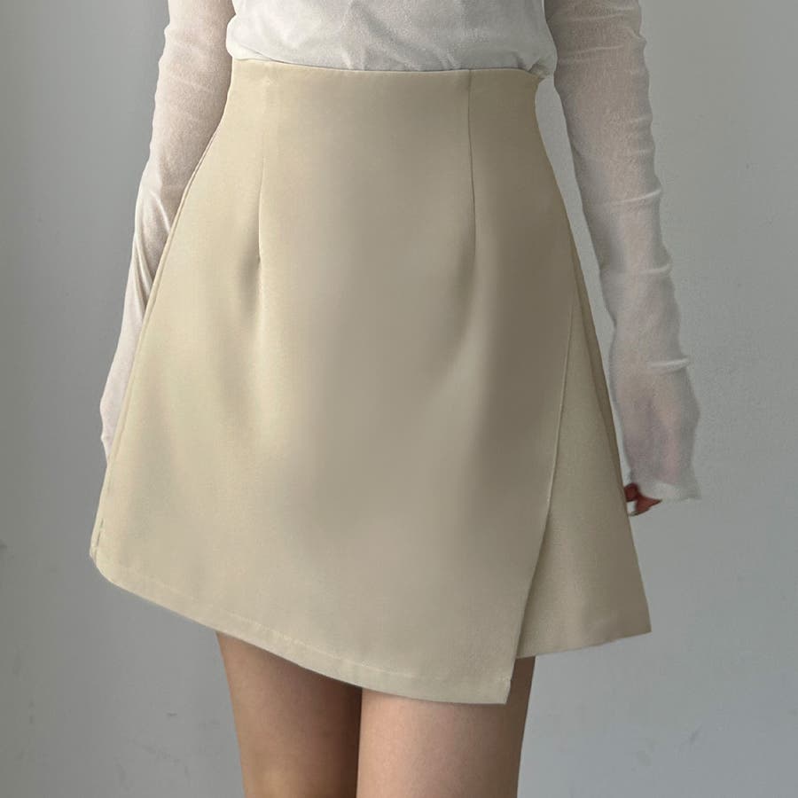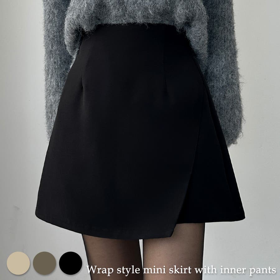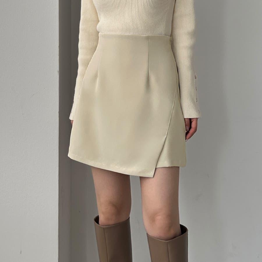 【アイボリー】Louere インナーパンツ付ラップ風ミニスカート