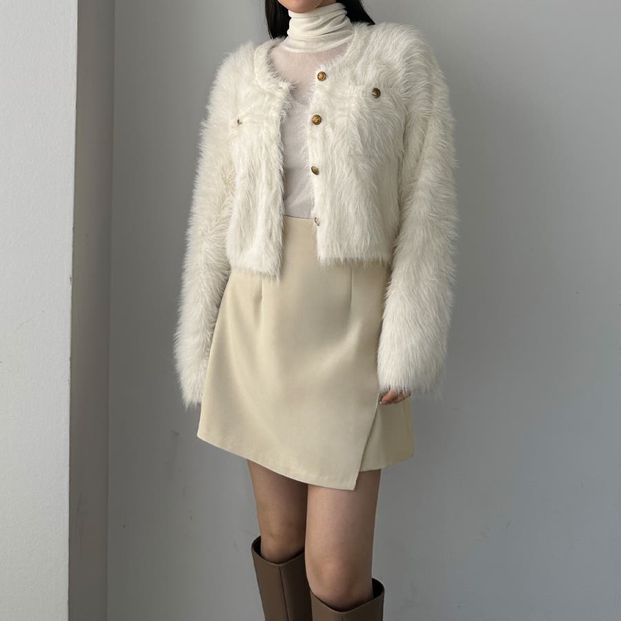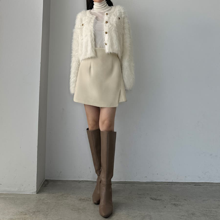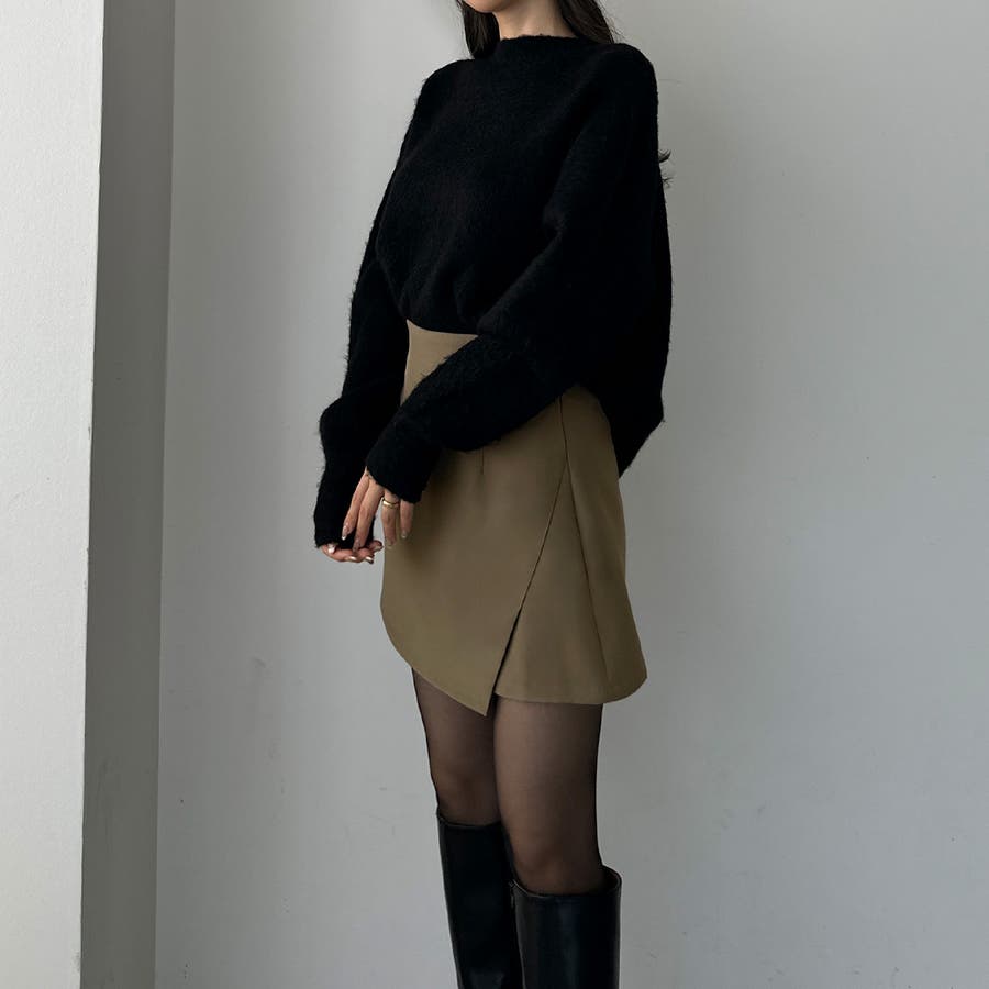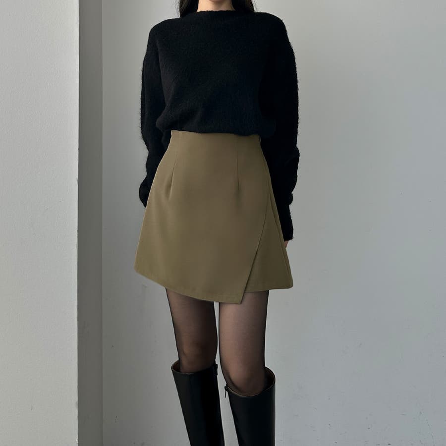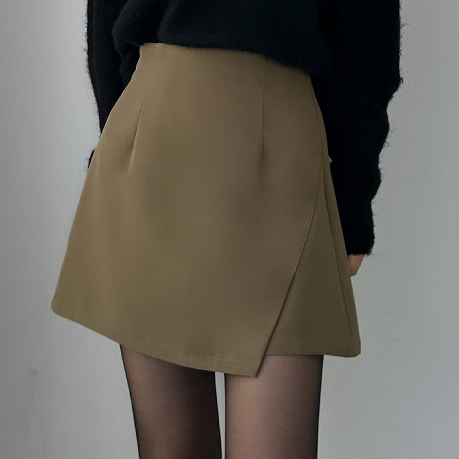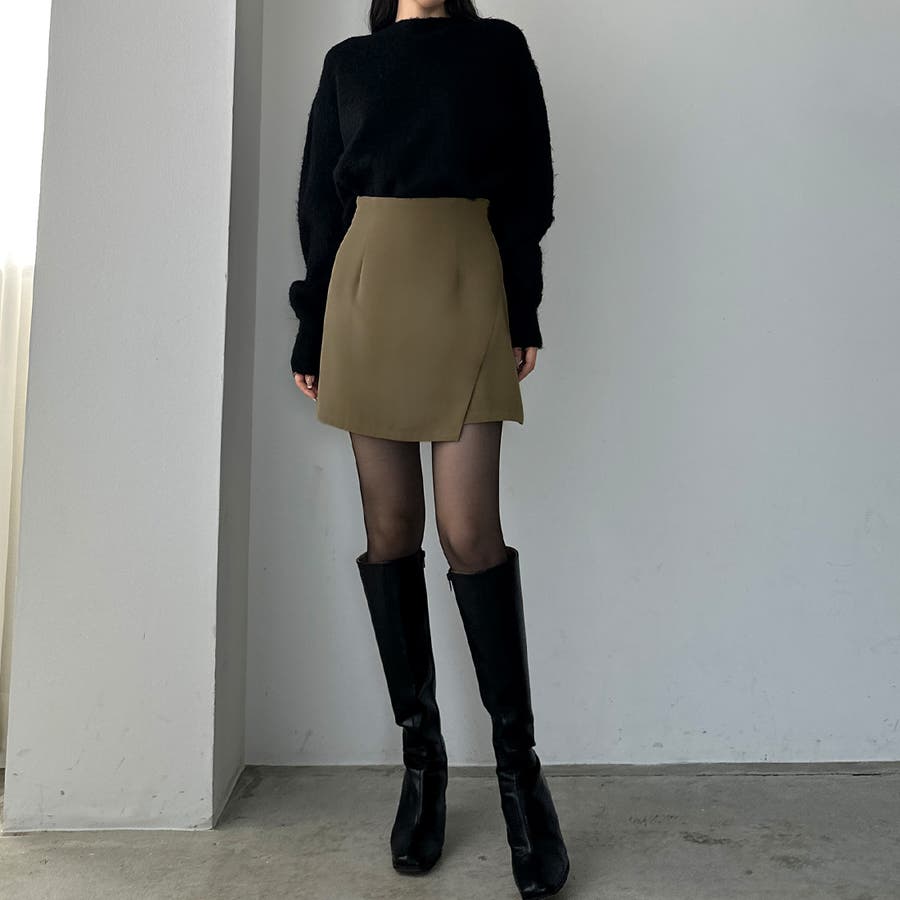 【アイボリー】Louere インナーパンツ付ラップ風ミニスカート