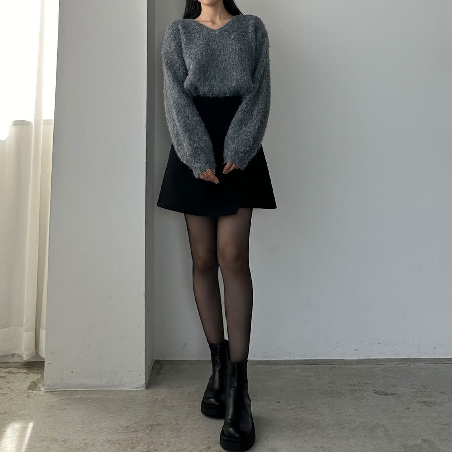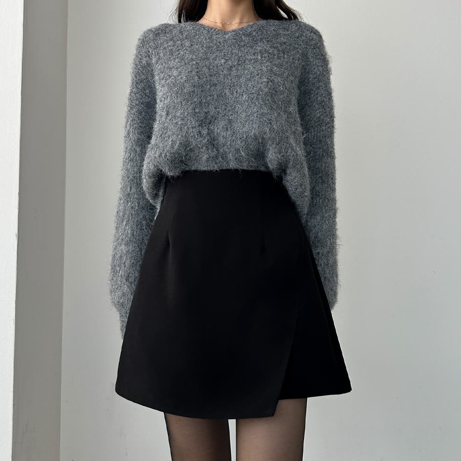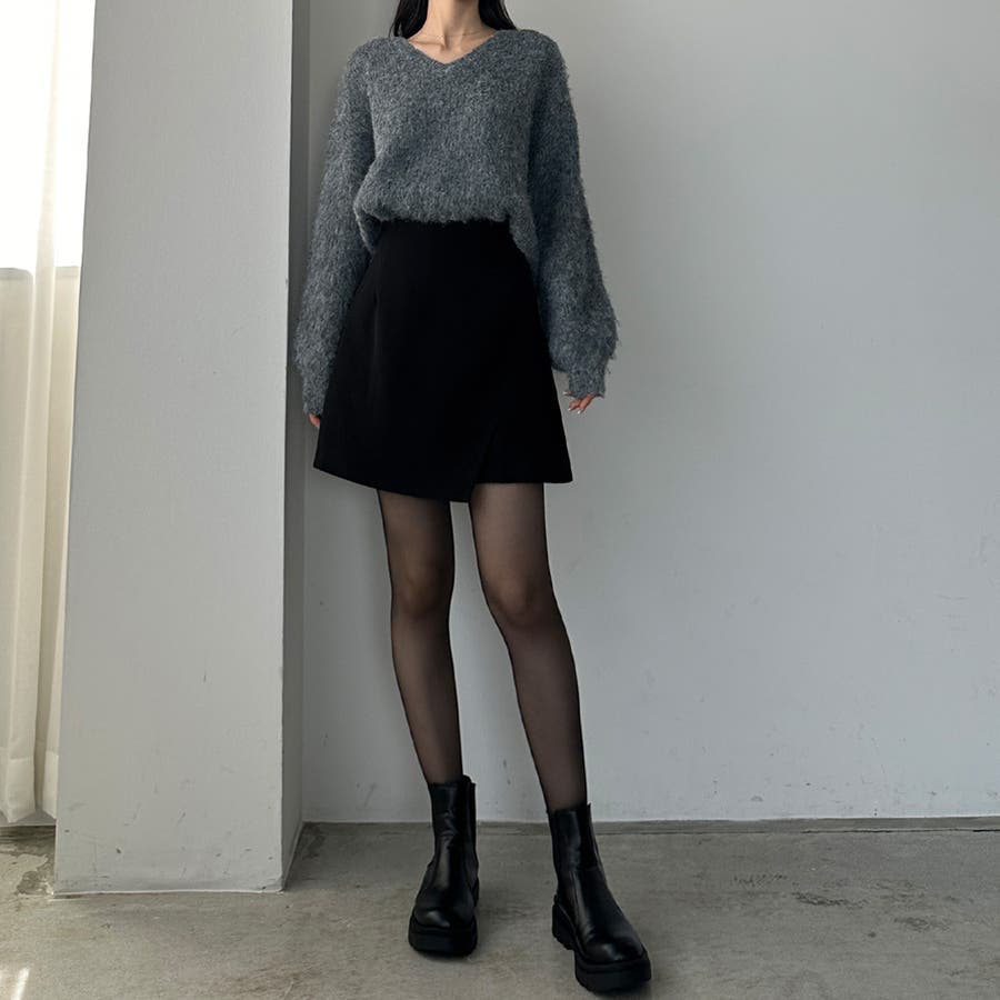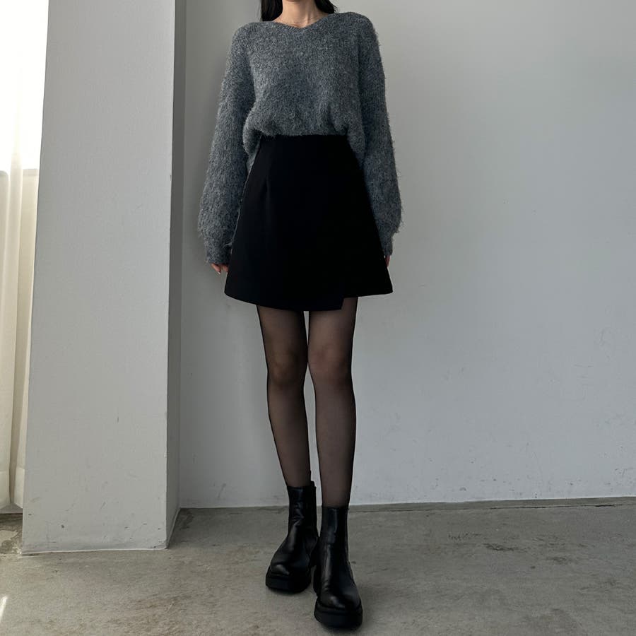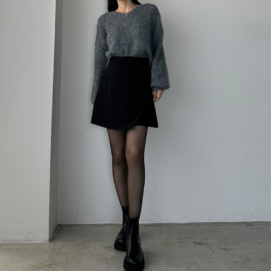 【アイボリー】Louere インナーパンツ付ラップ風ミニスカート