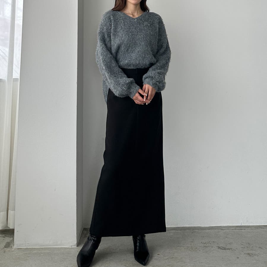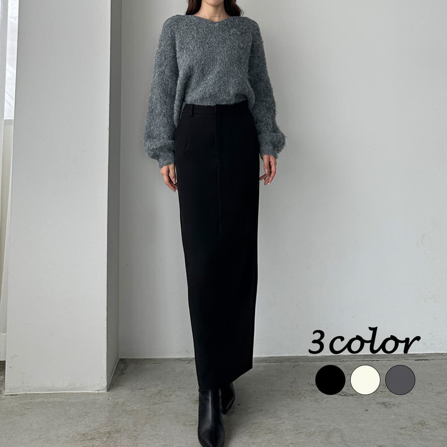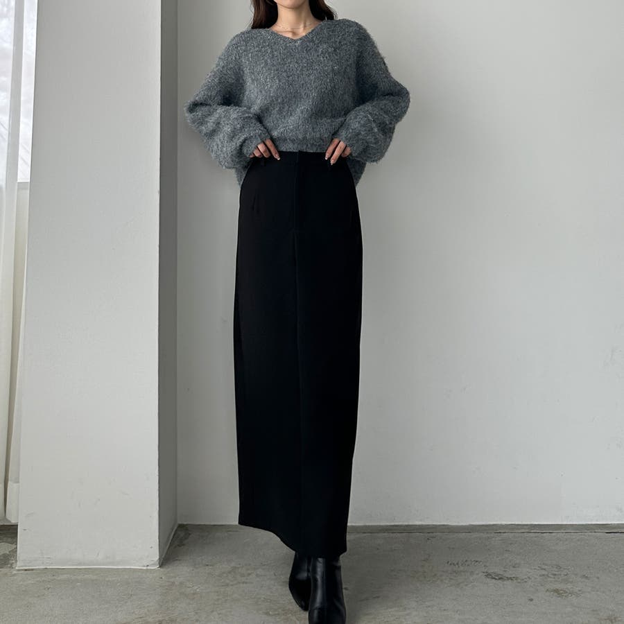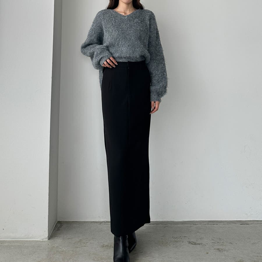 【ブラック】Louere Iラインロングスカート