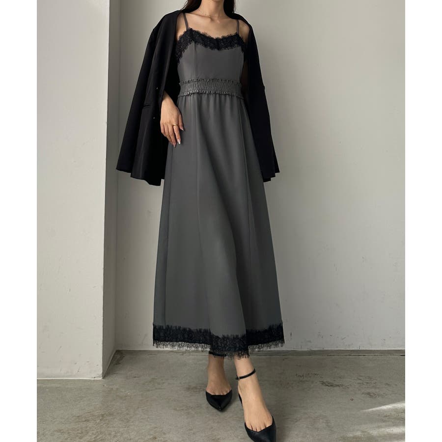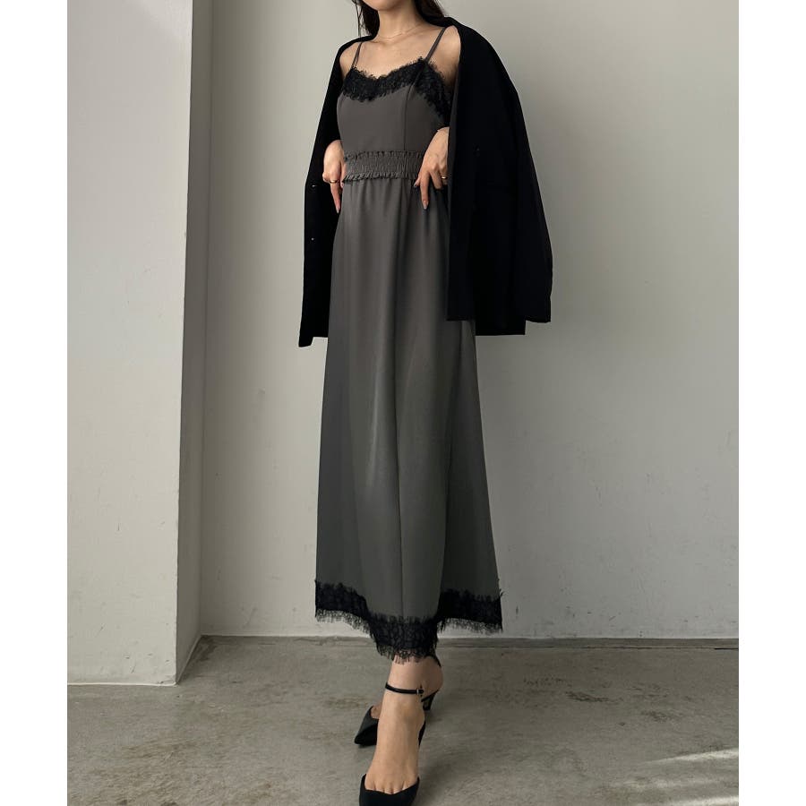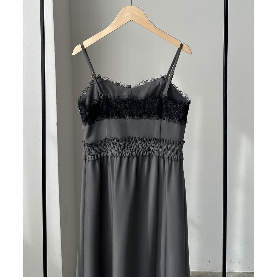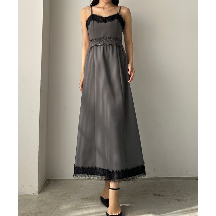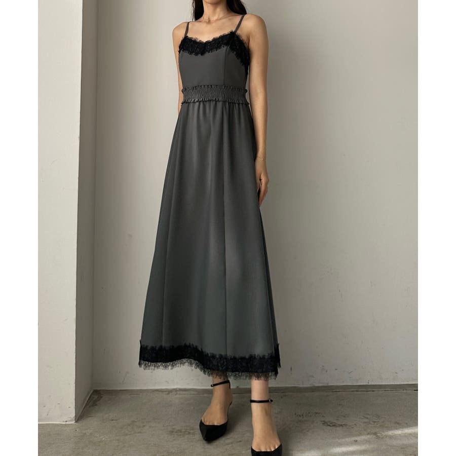 【グレー】Louere レーストリミングセミフレアキャミワンピース