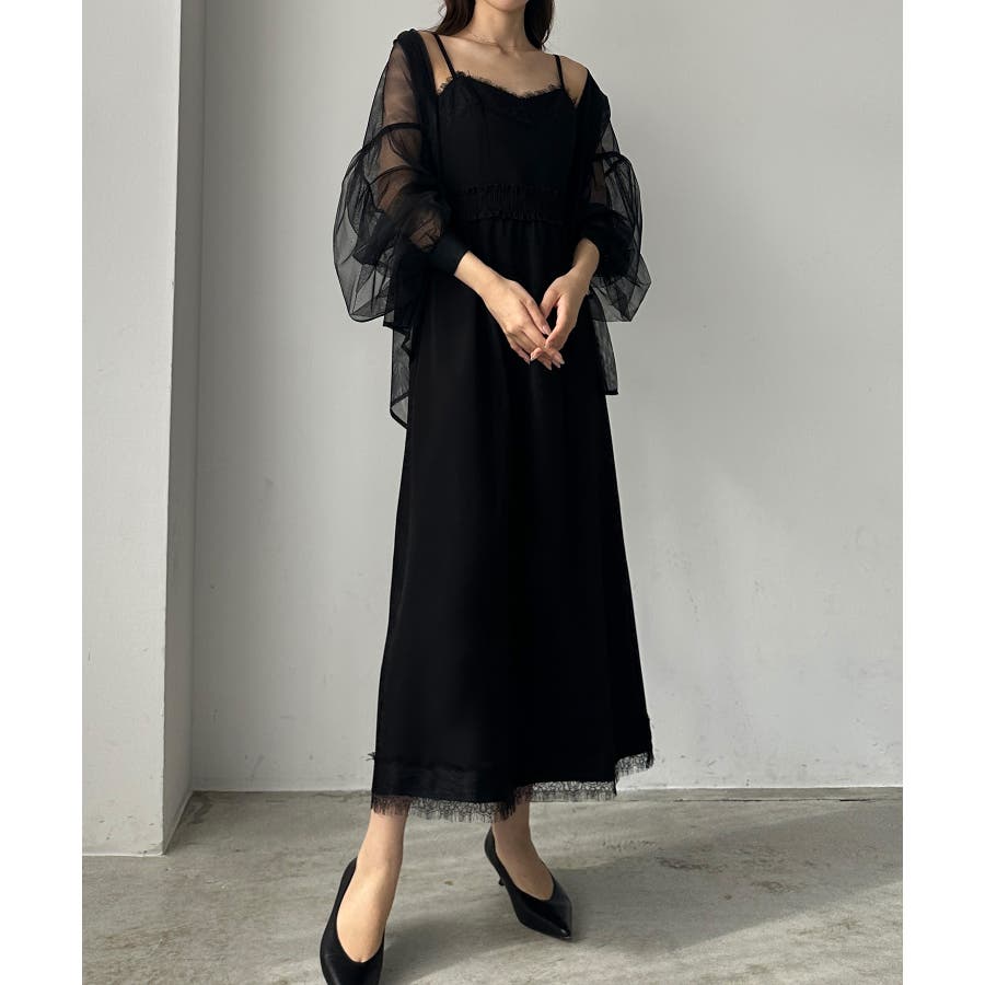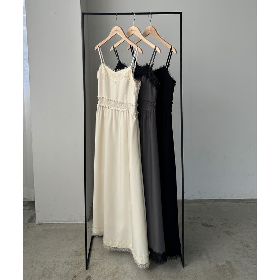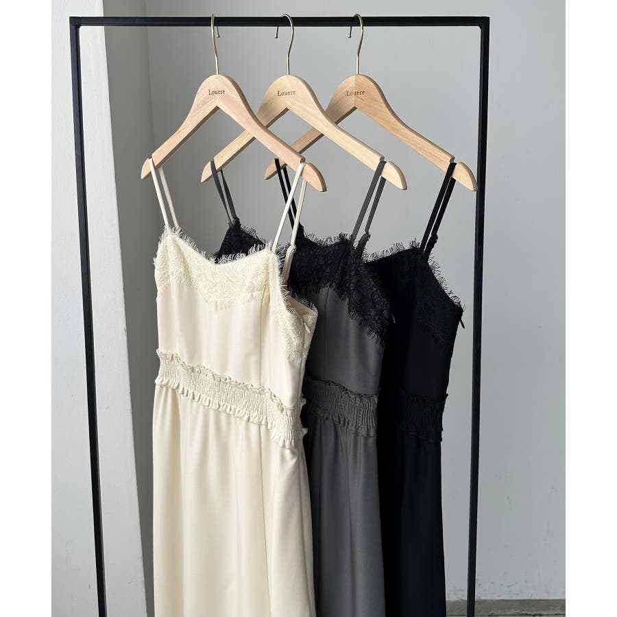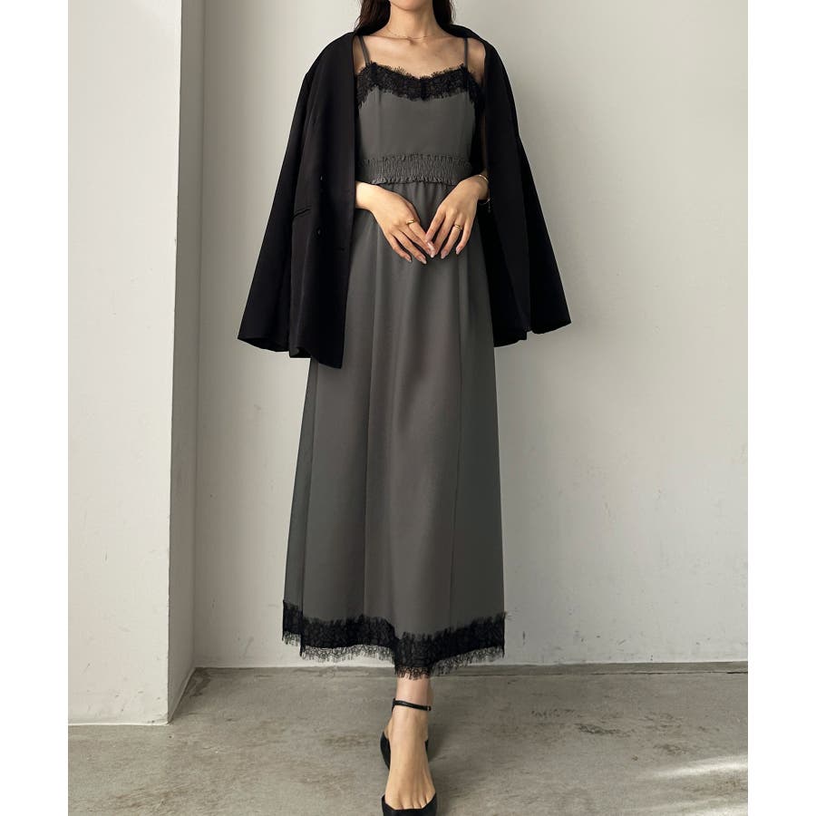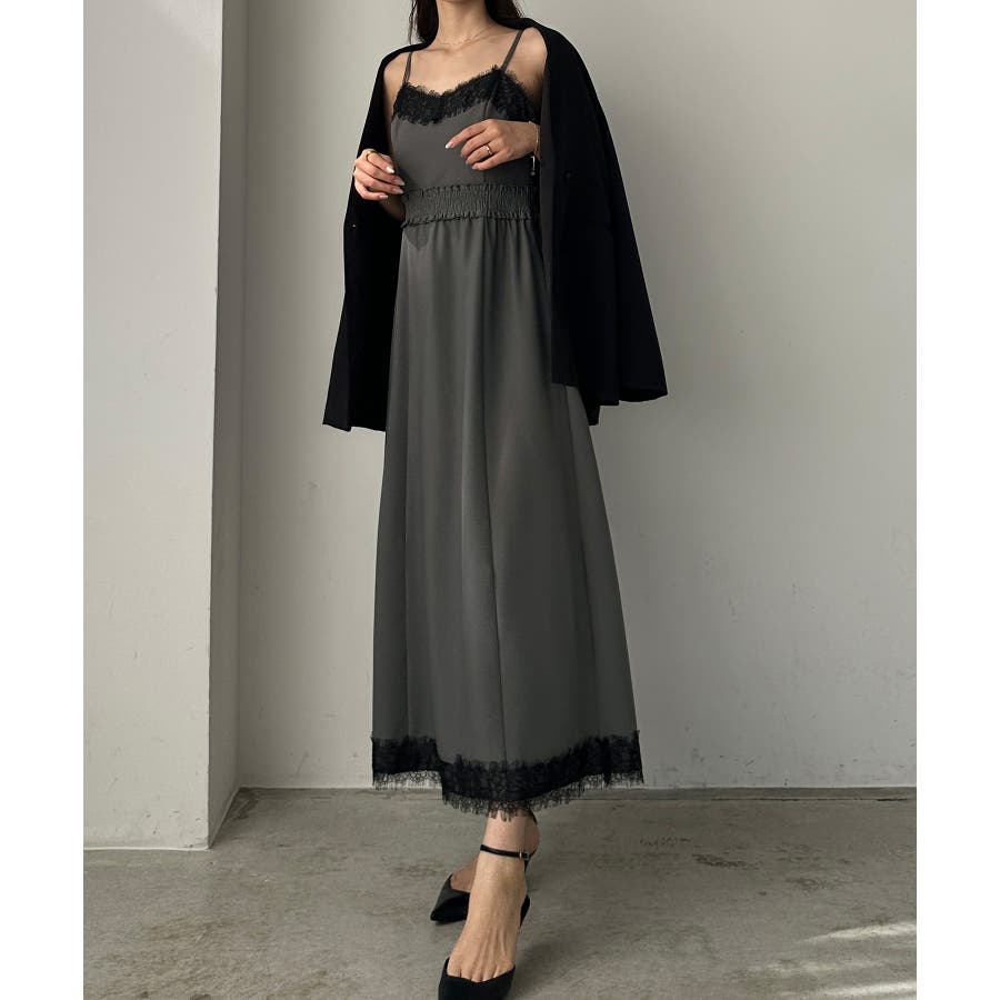 【グレー】Louere レーストリミングセミフレアキャミワンピース