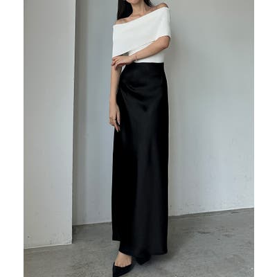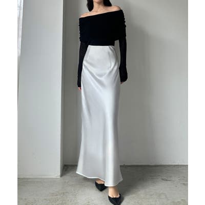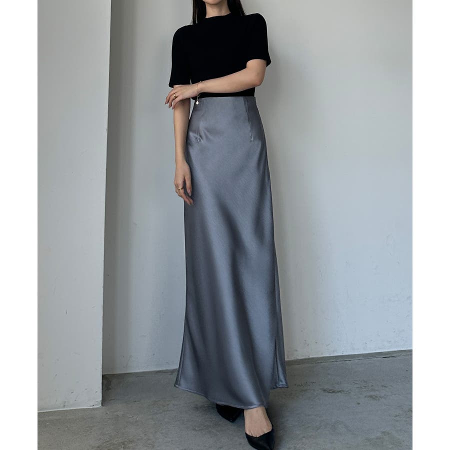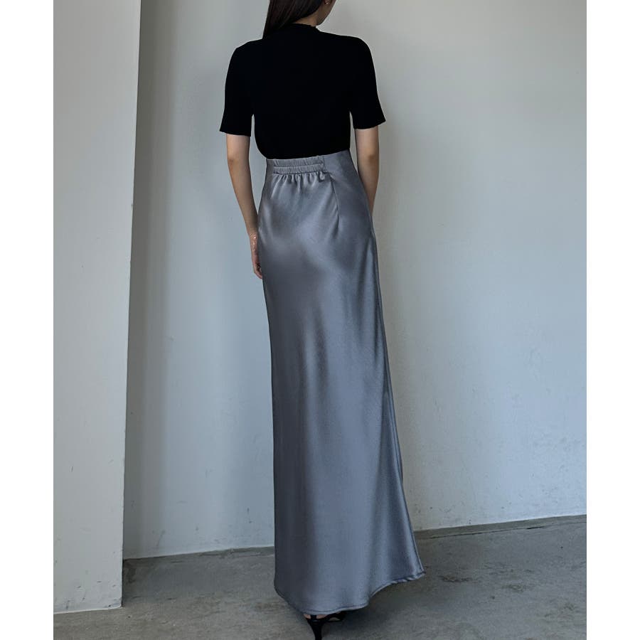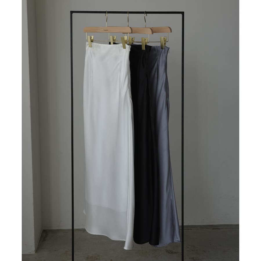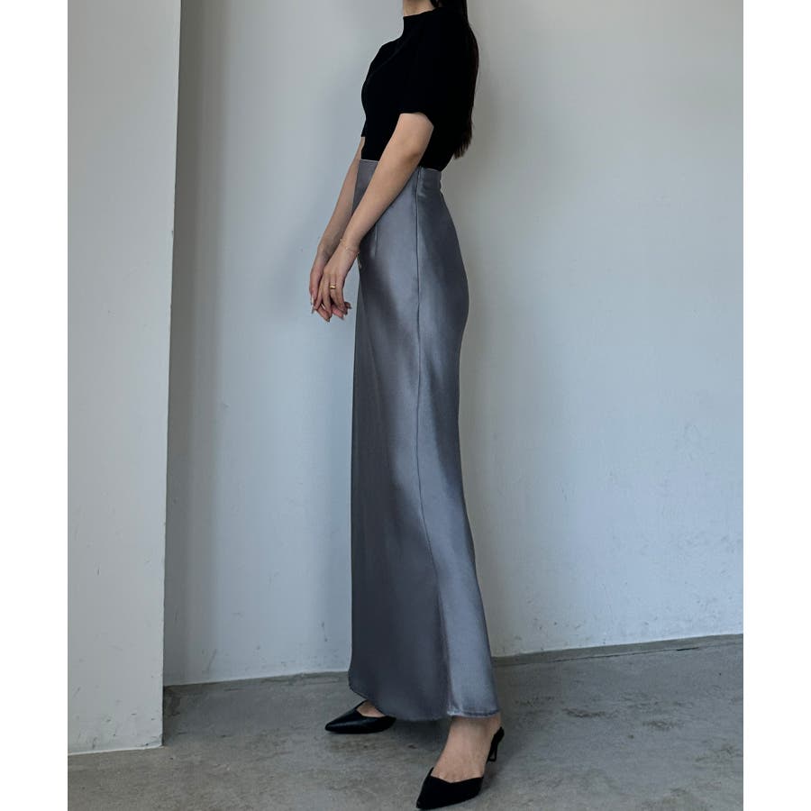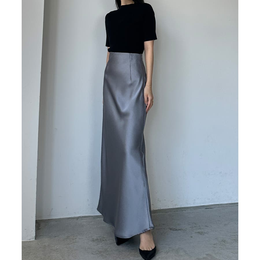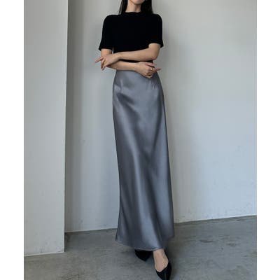 Louere ハイウエストサテンバイヤスナロースカート
