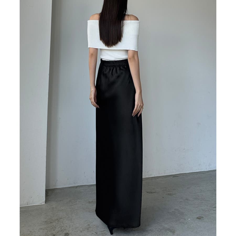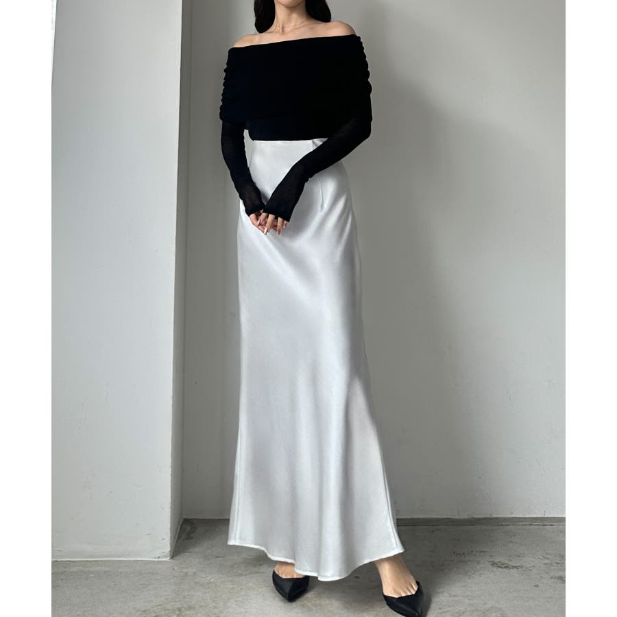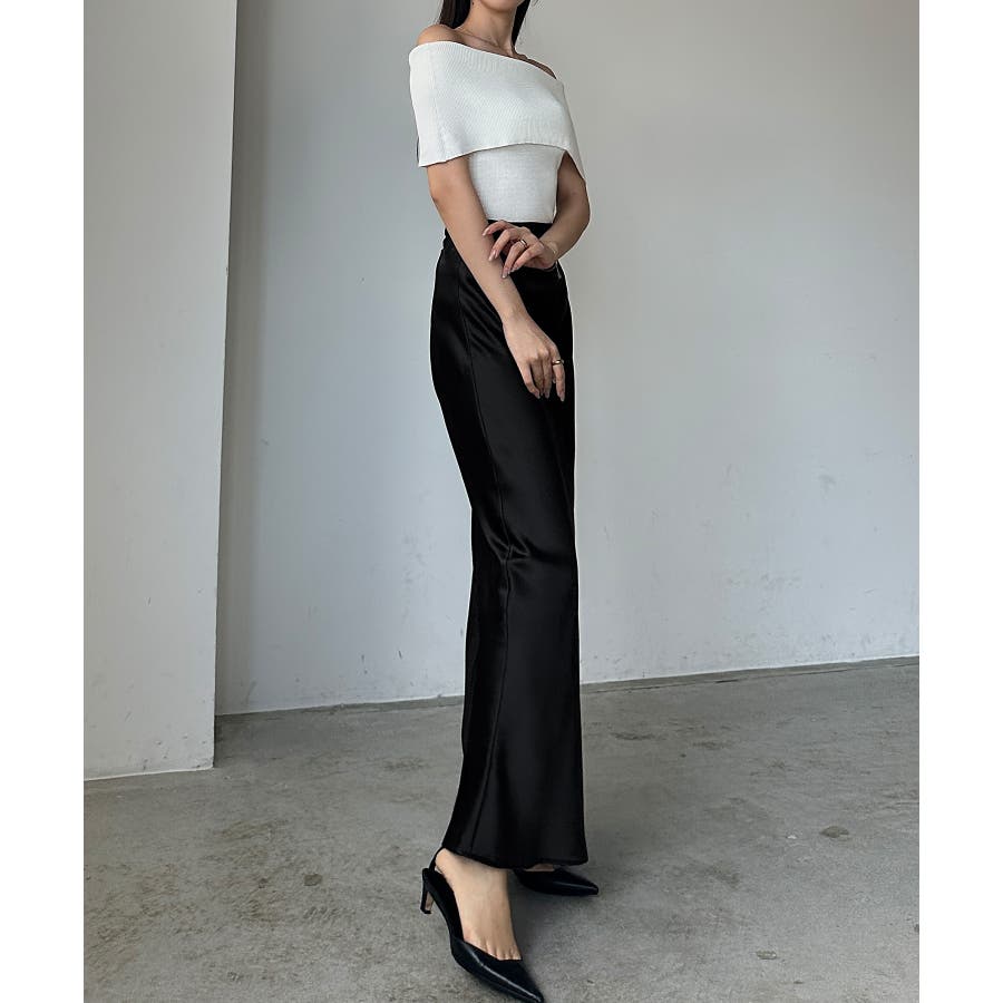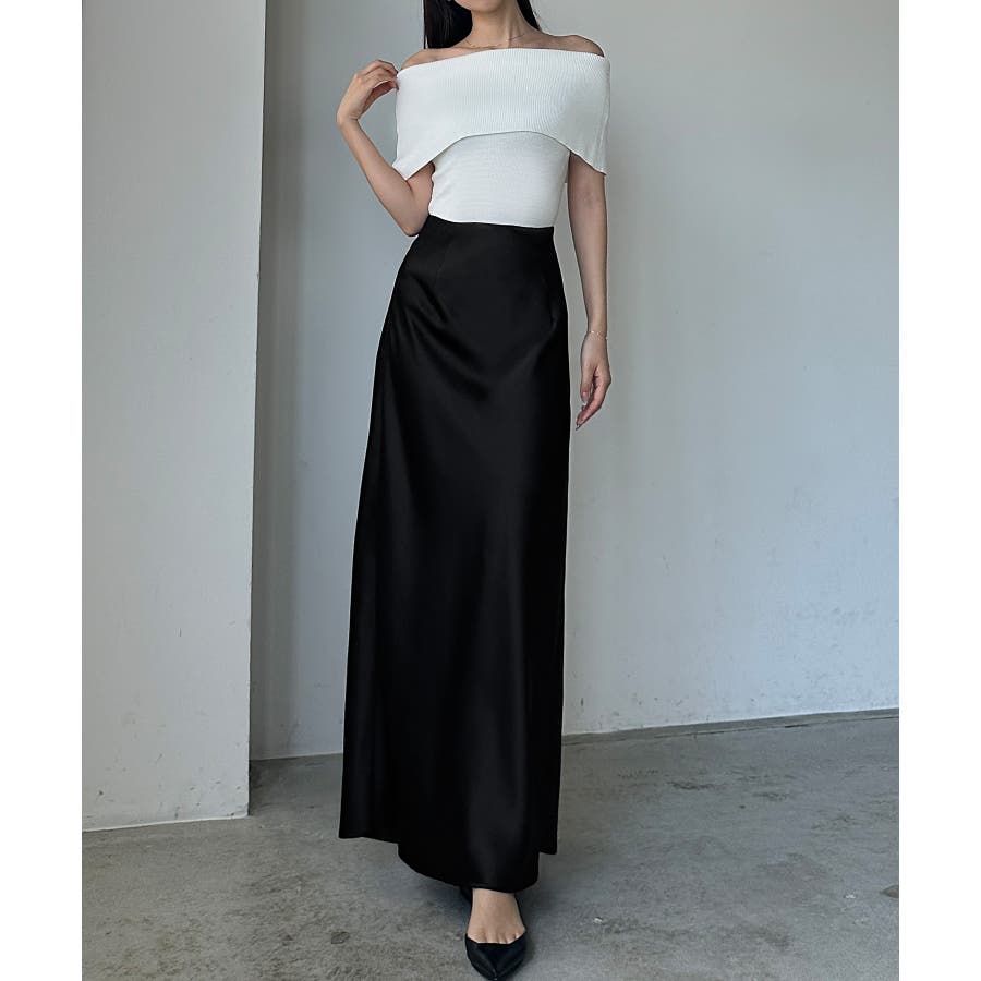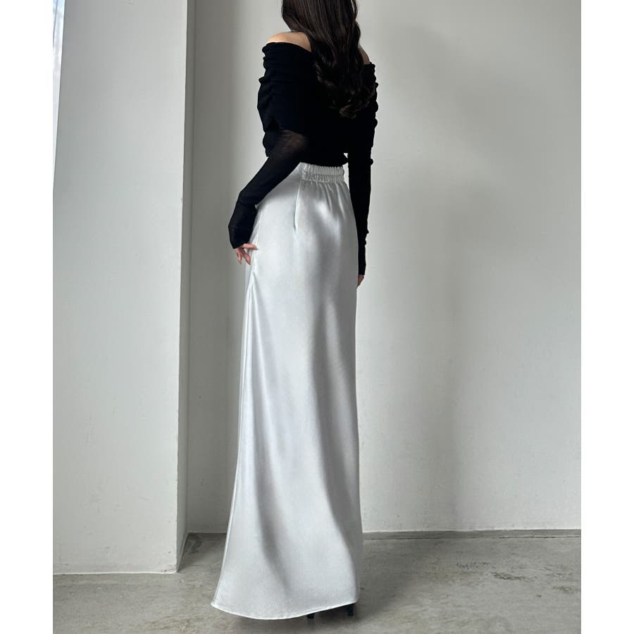 Louere ハイウエストサテンバイヤスナロースカート