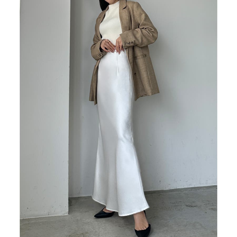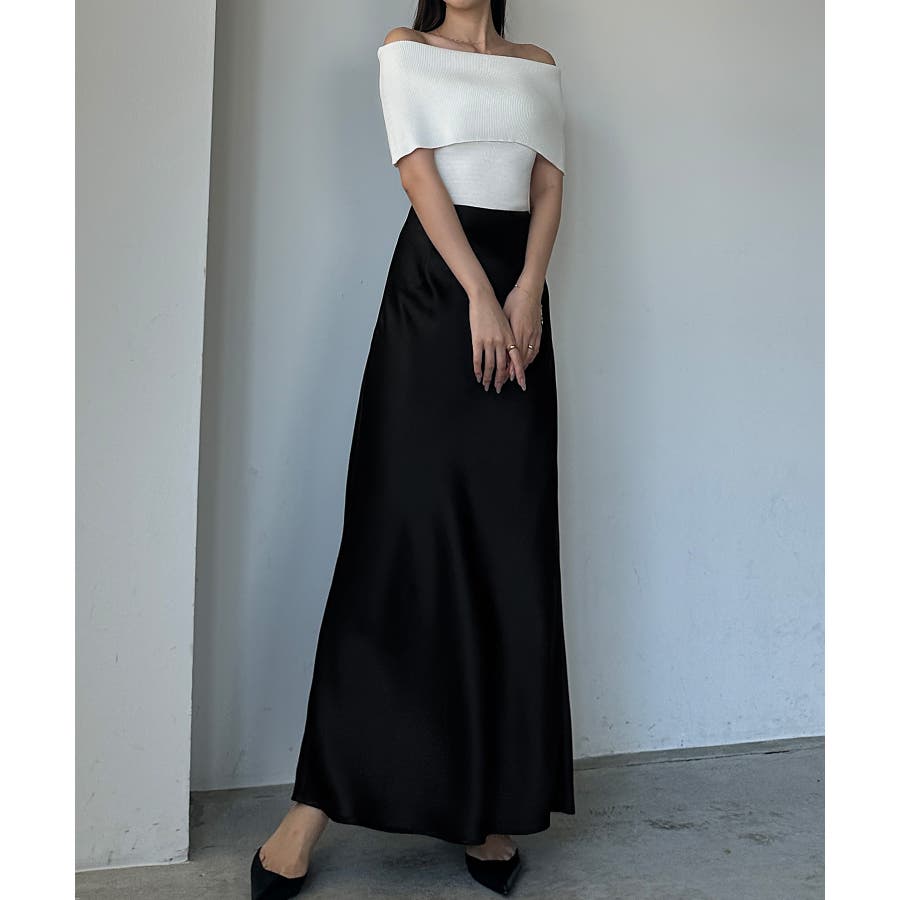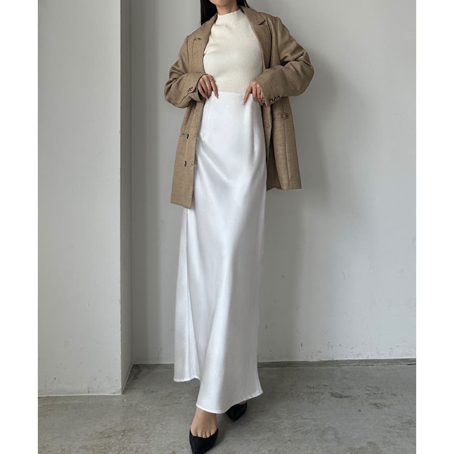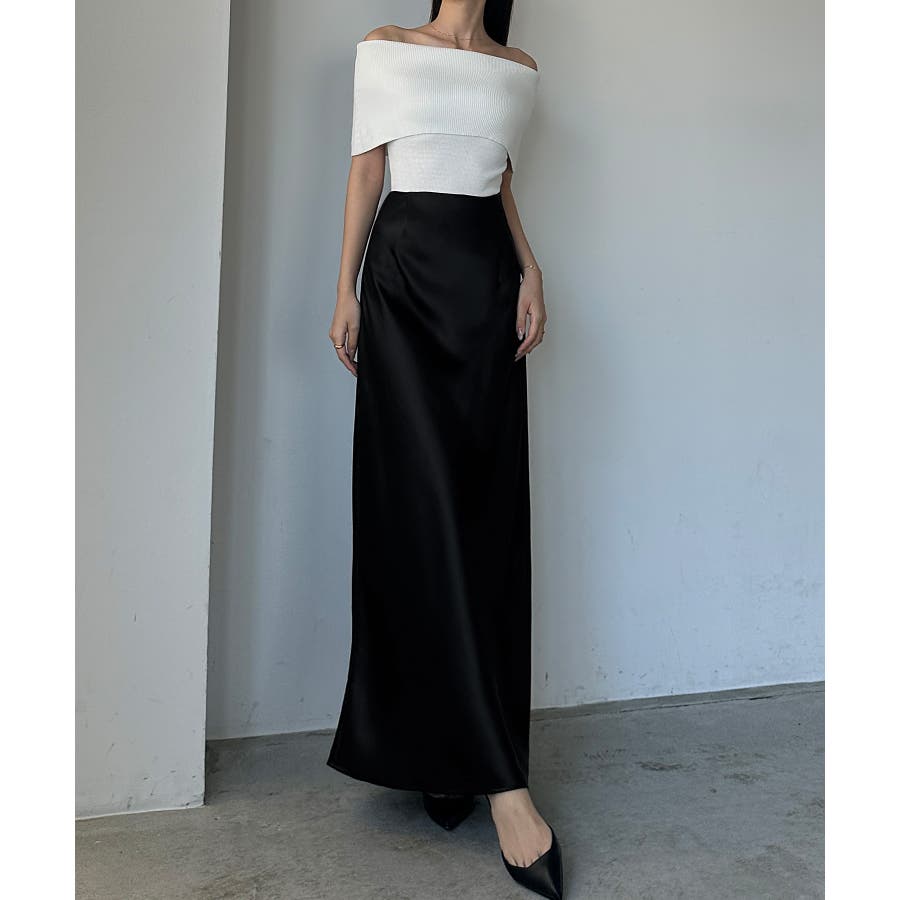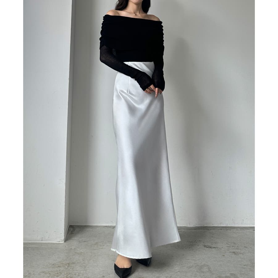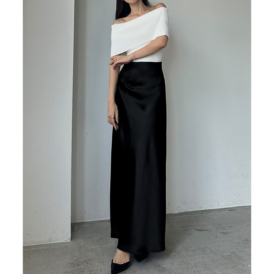Louere ハイウエストサテンバイヤスナロースカート