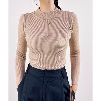 身体のラインに程よくフィットするリブ編みデザインのニットトップス。